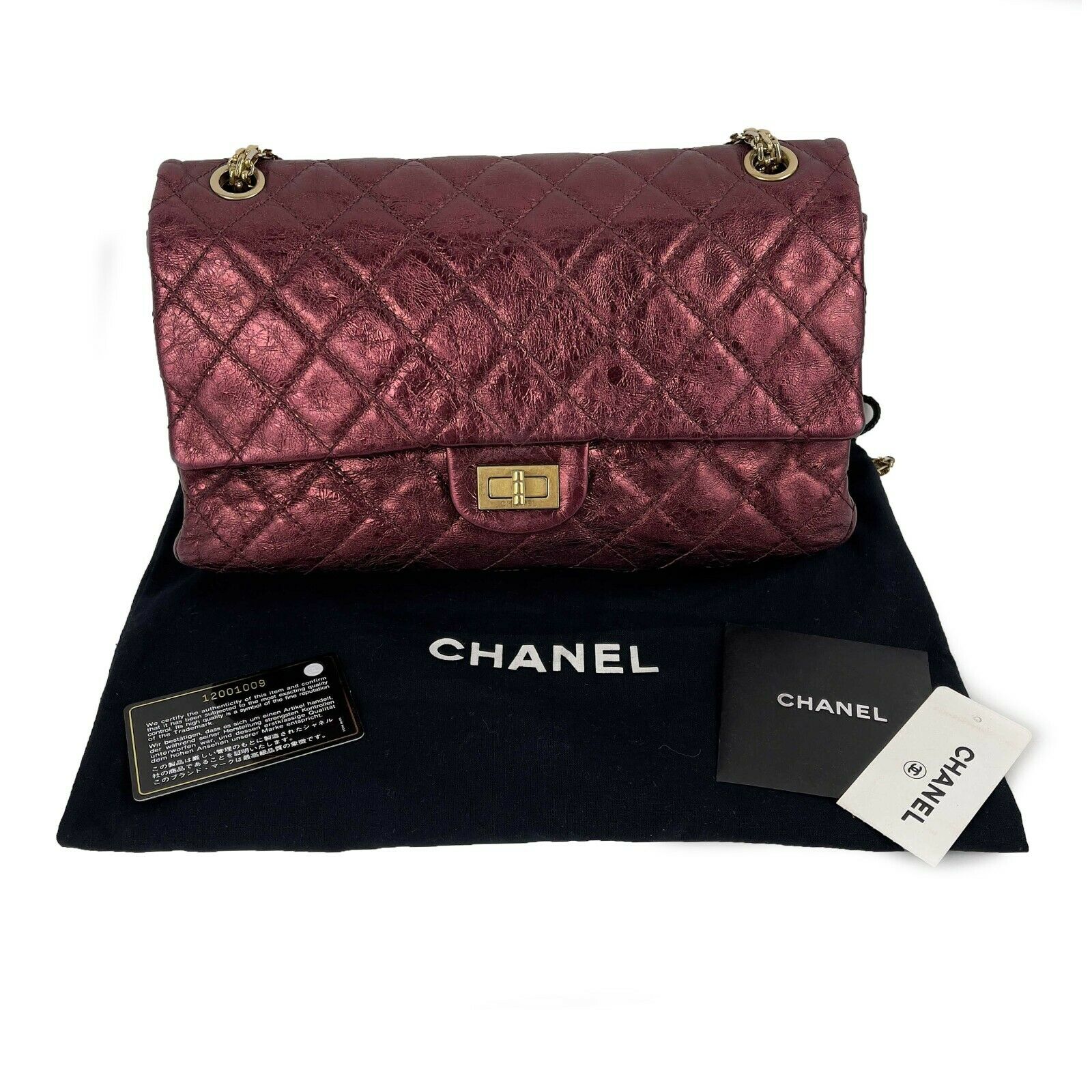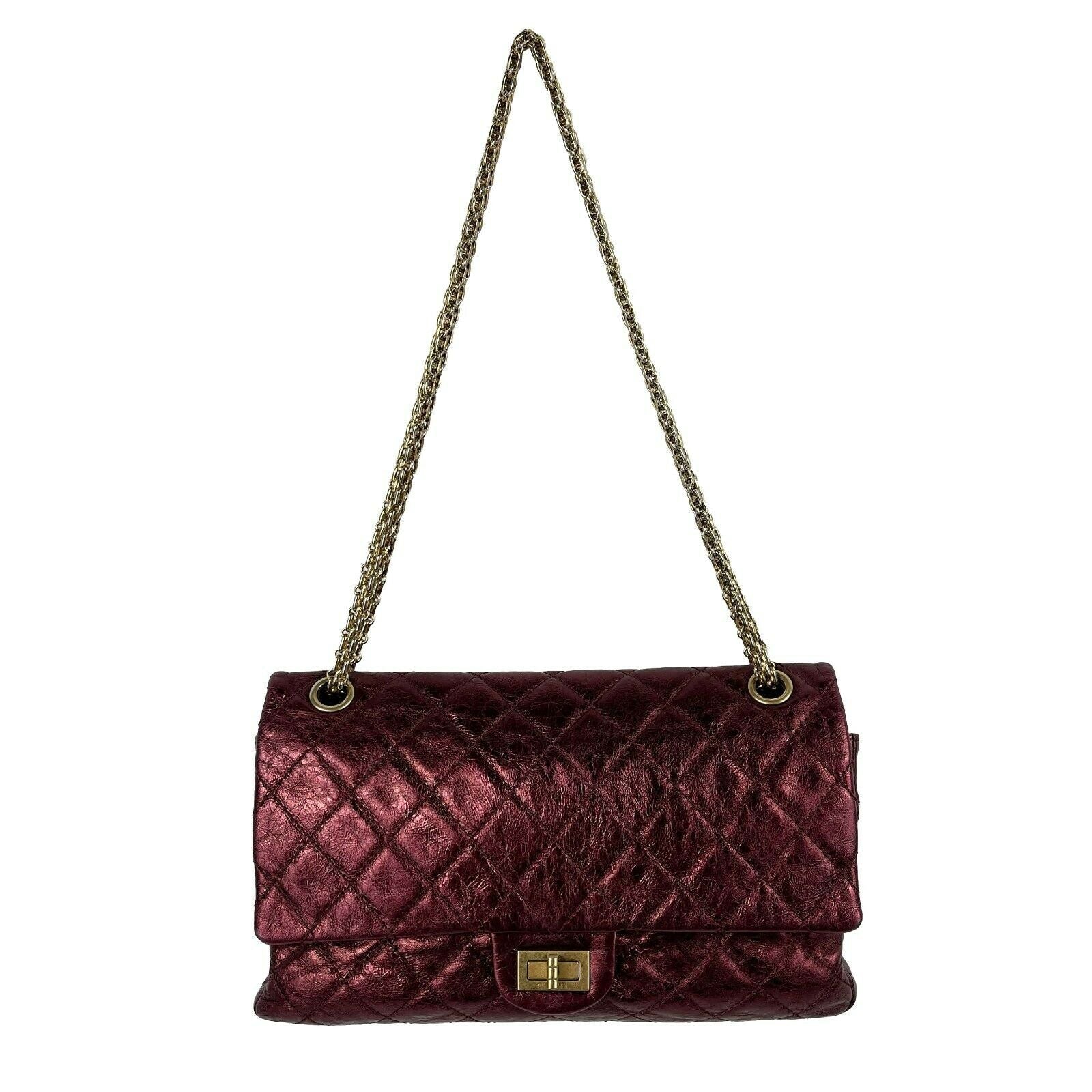 Chanel - Metallic Quilted Calfskin 2.55 Reissue 227 Double New - Metallic Maroon, Champagne Gold - Handbag