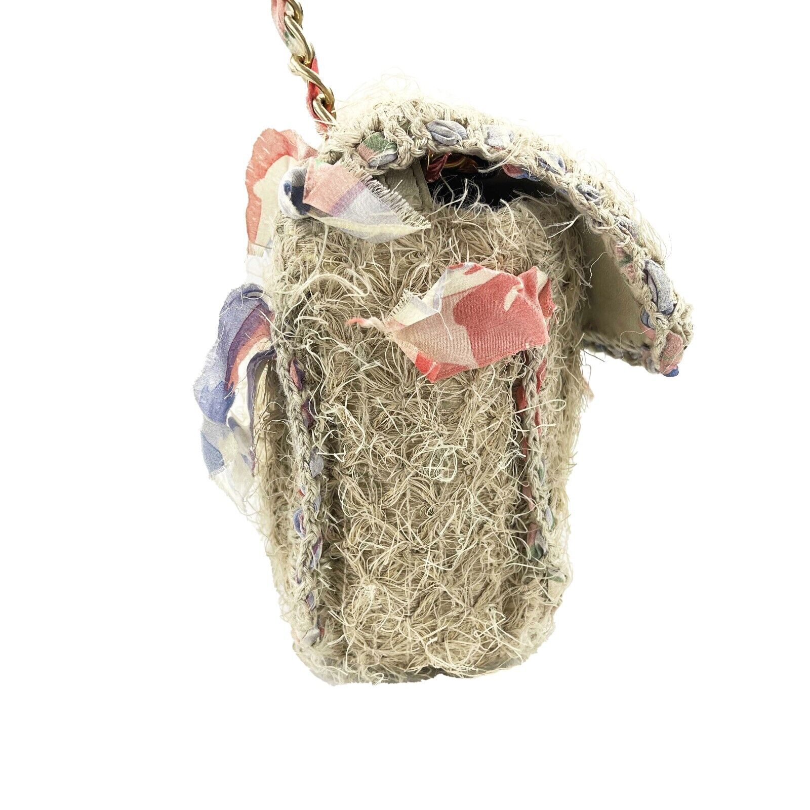 CHANEL - Quilted Stitched Raffia Country New - Tan, Blue, Pink, Green, Ivory, Gold-Toned Hardware - Handbag