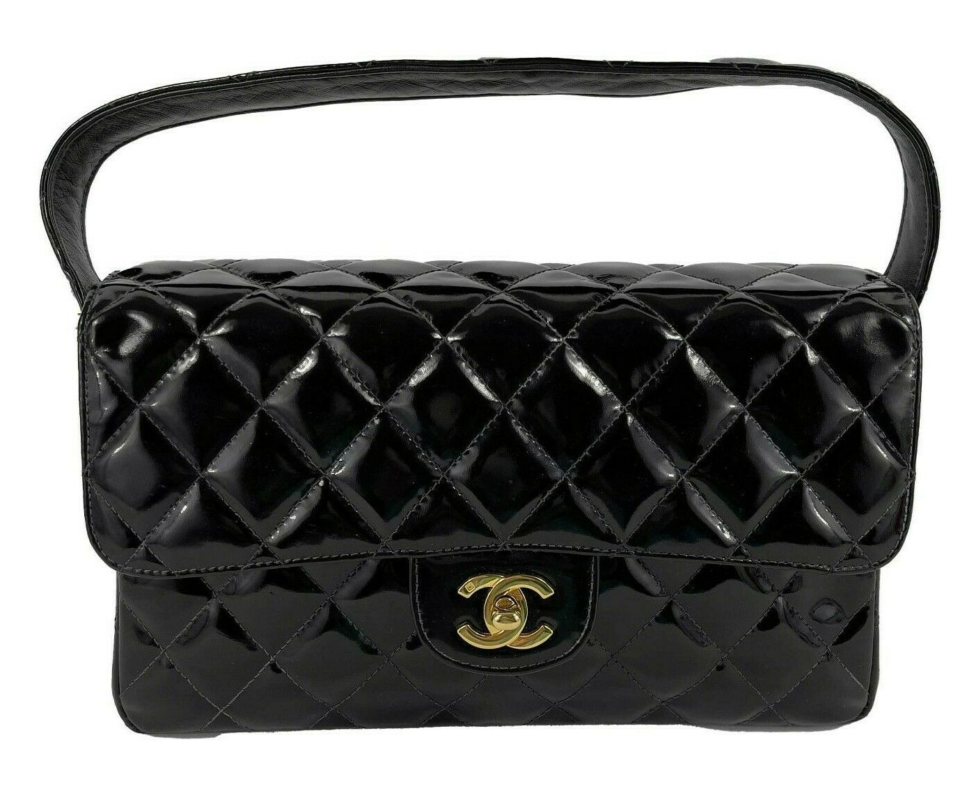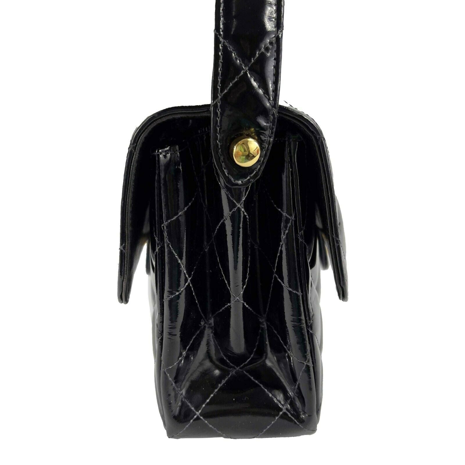 CHANEL - Vintage 1996 Black Top Handle Kelly Medium New Bag - Patent Leather