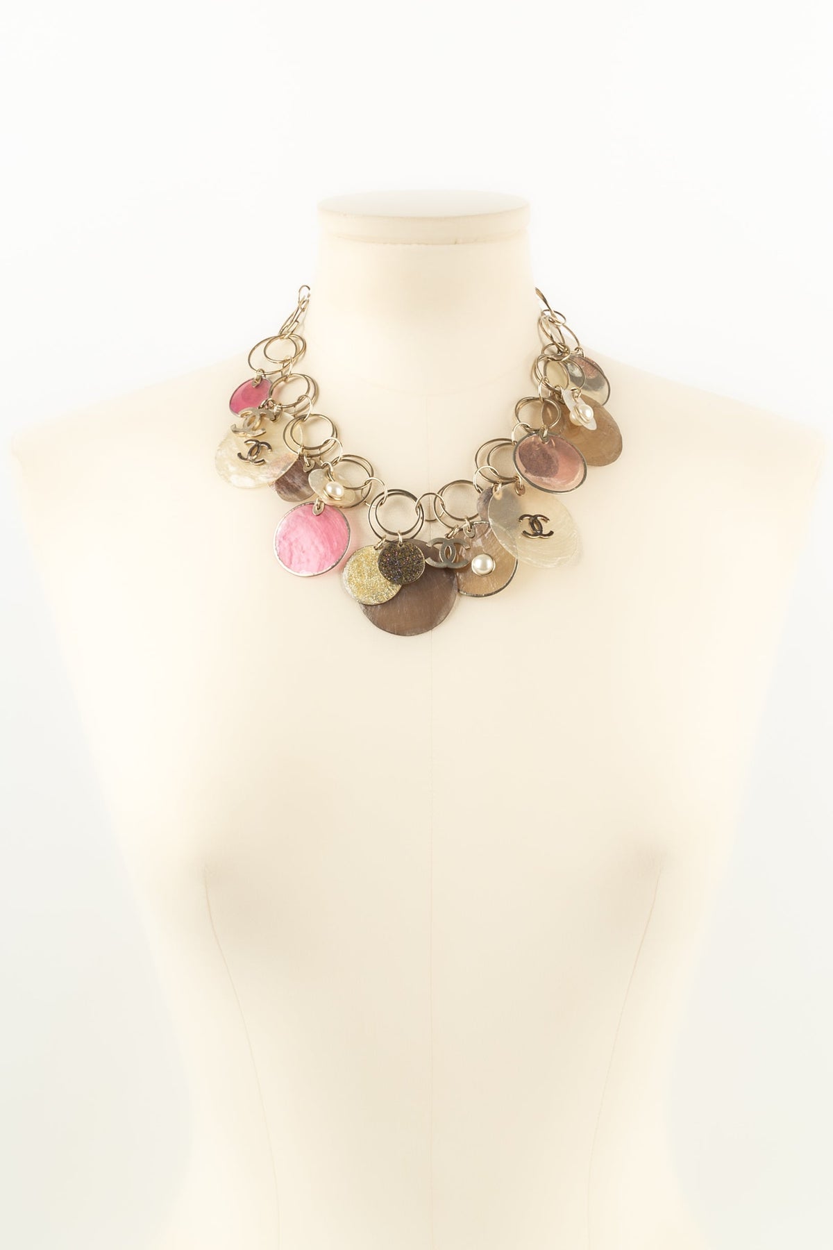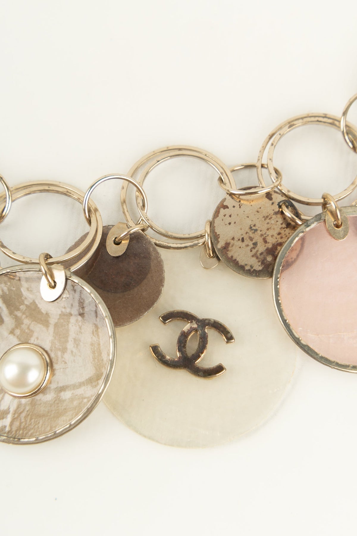 CHANEL - (Made in France) Ceinture / Collier en métal champagne et breloques. Collection Printemps/Eté 2007.