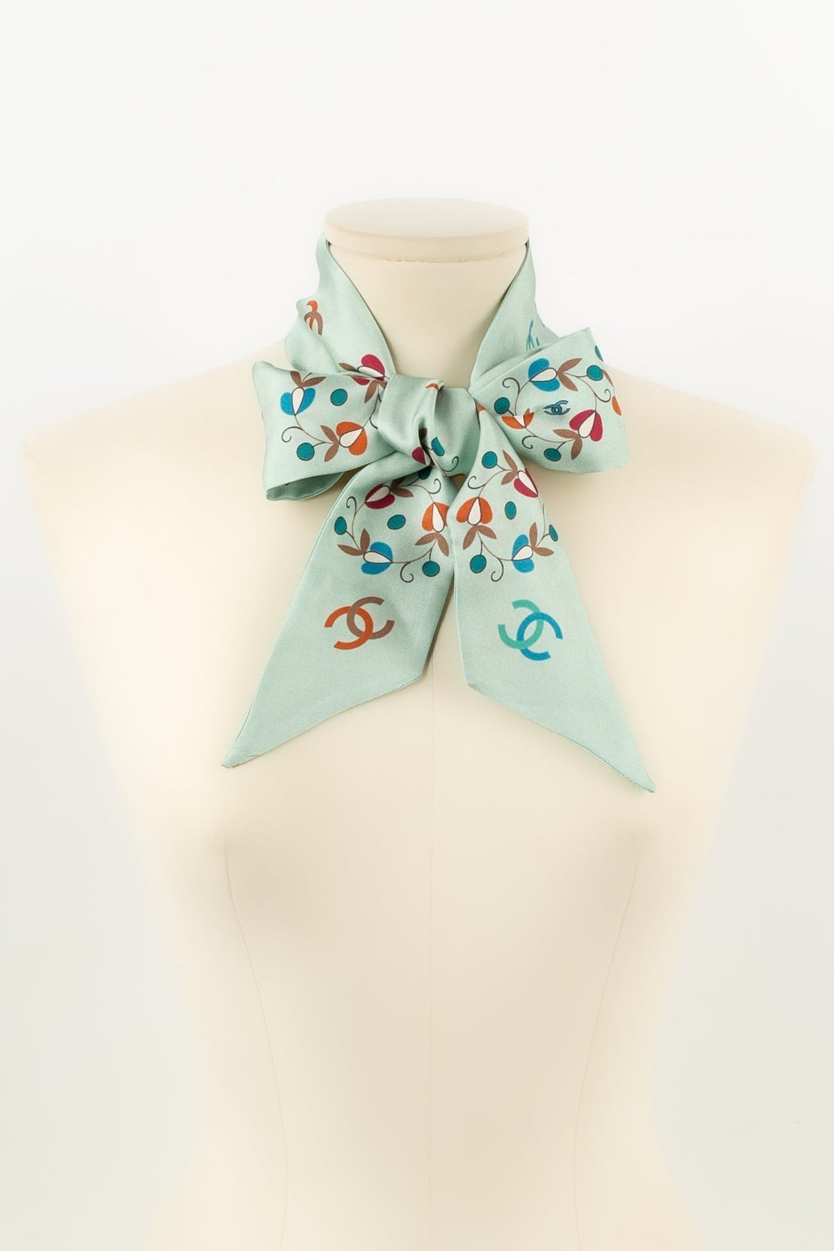 CHANEL - (Made in Italy) Echarpe tour de cou / Slim bandeau en twill de soie.