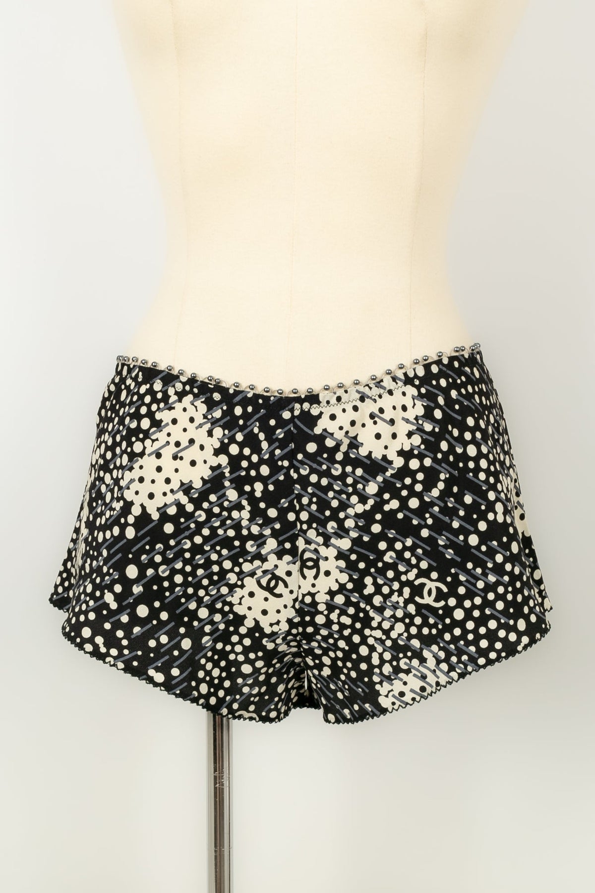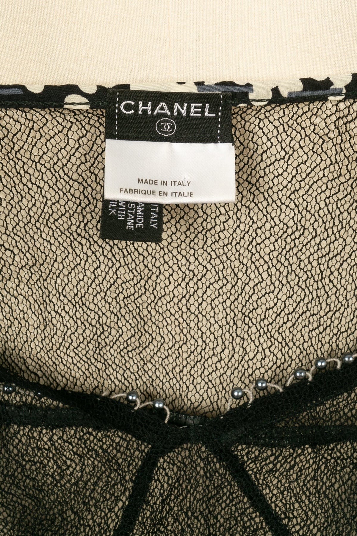 CHANEL - (Made in Italy) Ensemble de dessous en soie, top en maille noire ajourée et incrusté de soie et perles. Taille 40FR/42FR. Collection Automne/Hiver 2002.
