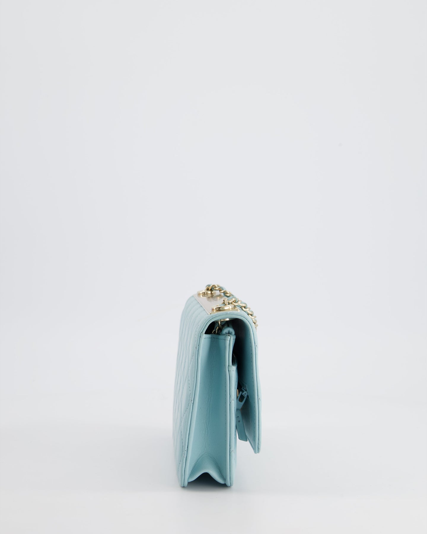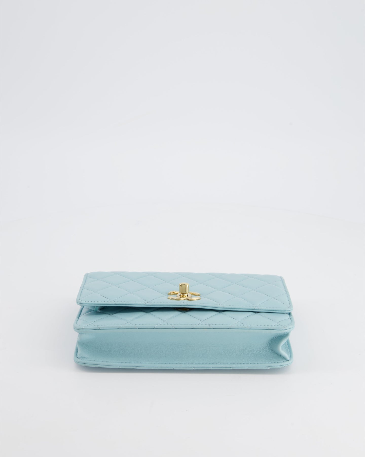 Chanel Baby Blue Quilted Trendy Wallet on Chain Bag in Lambskin Leather with Champagne Gold Hardware