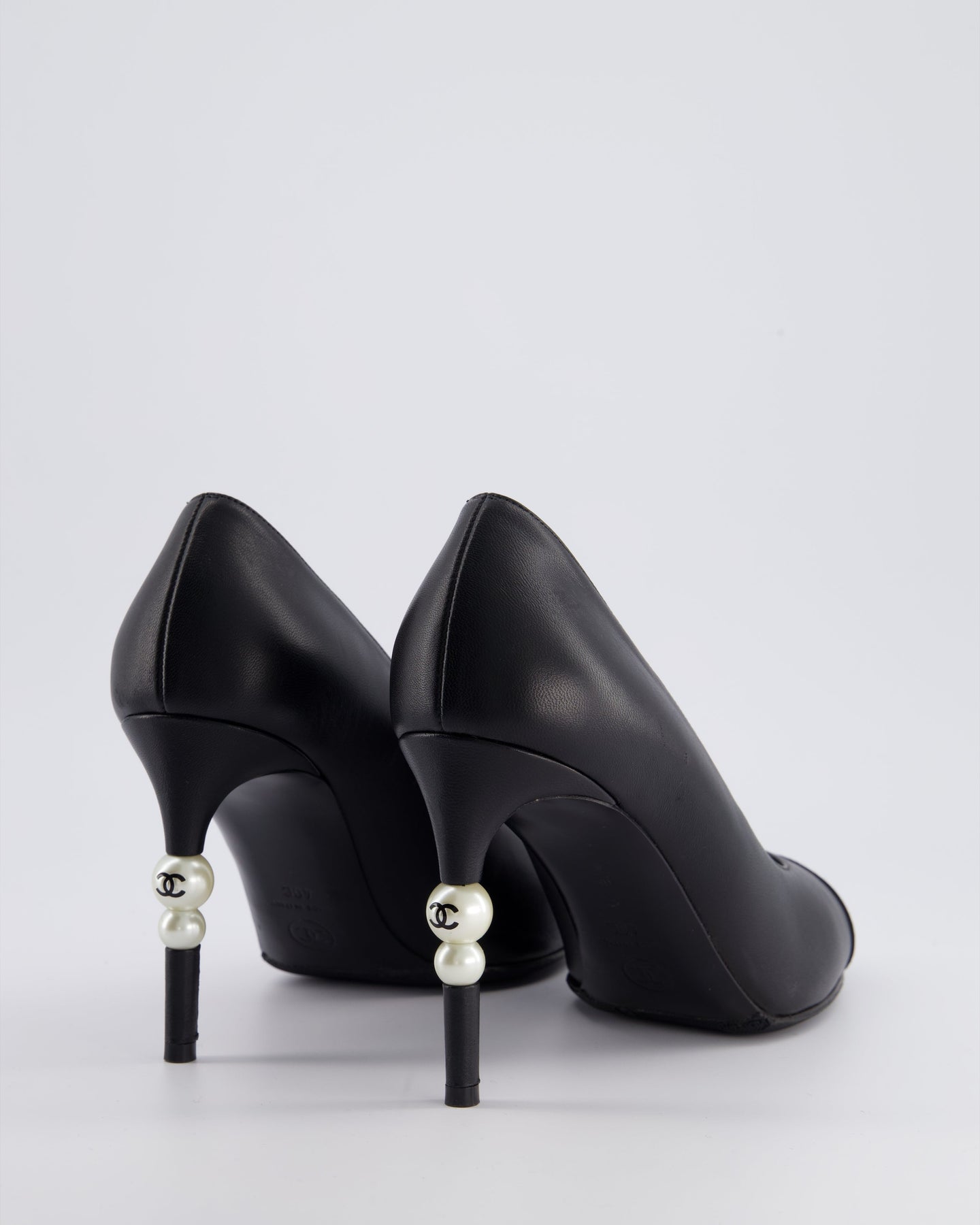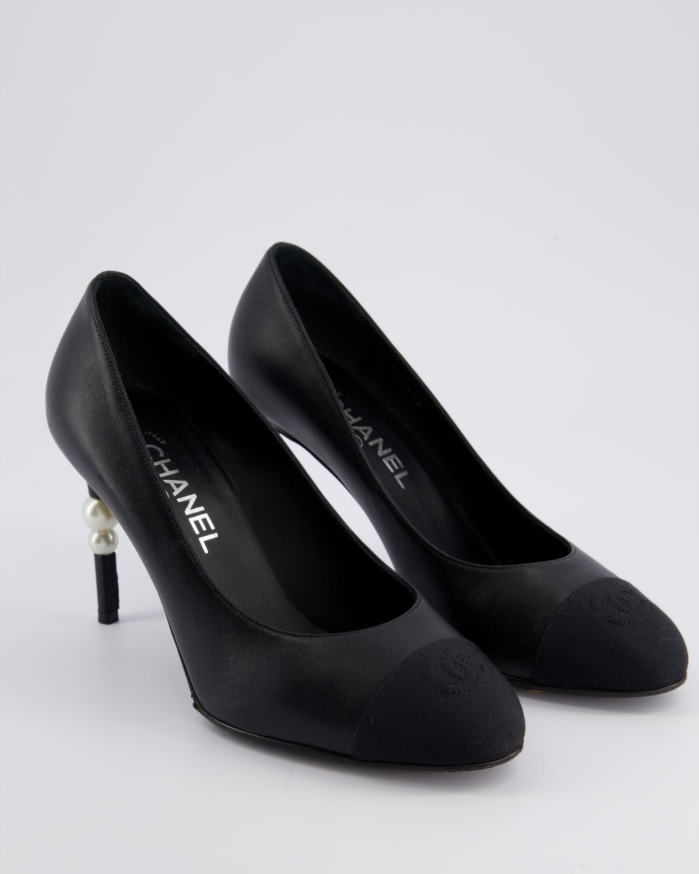 *HOT* Chanel Black Leather Pumps with Pearls & CC Logo Details Size EU 40C