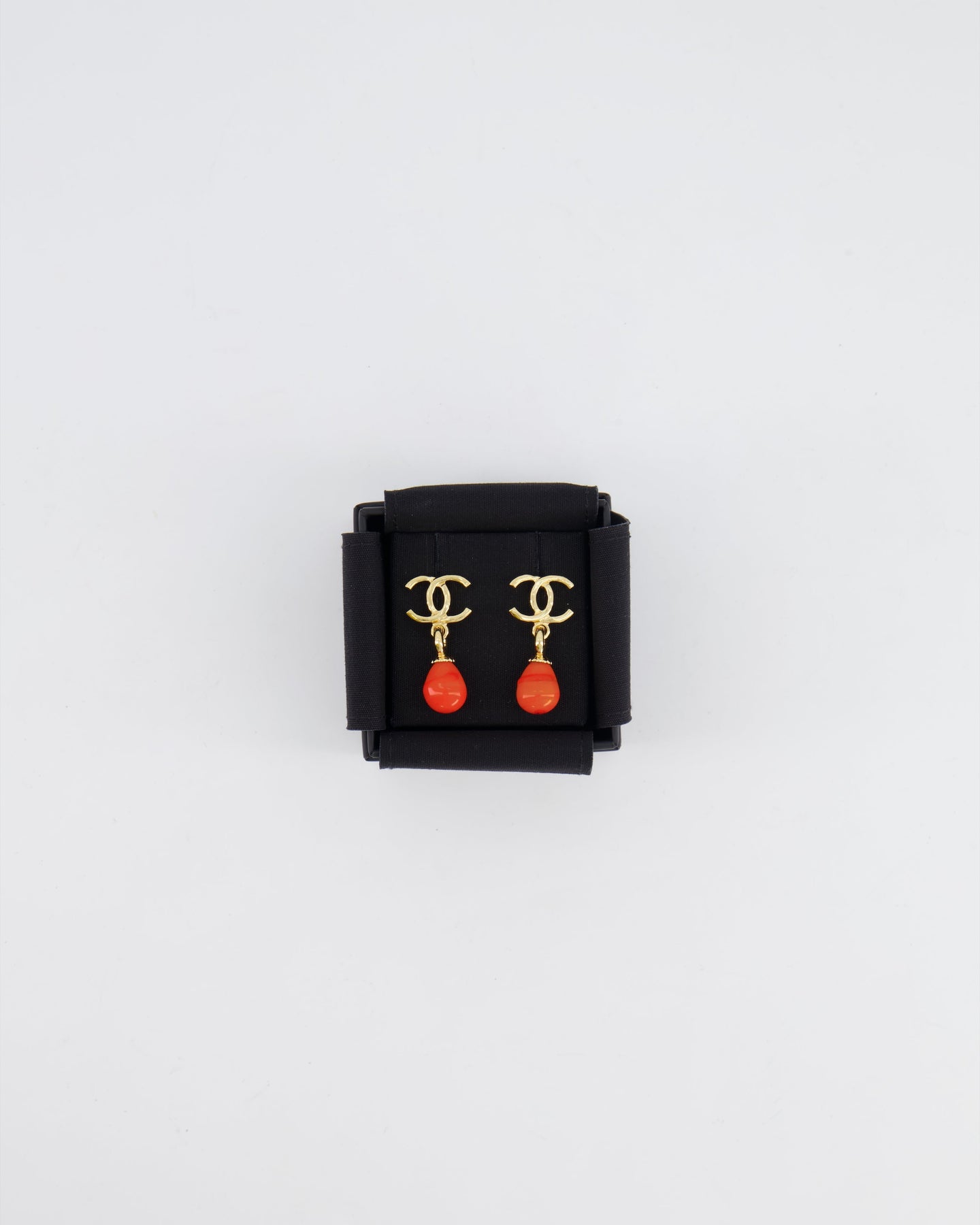 *HOT* Chanel Gold and Orange CC Logo Pendant Earrings
