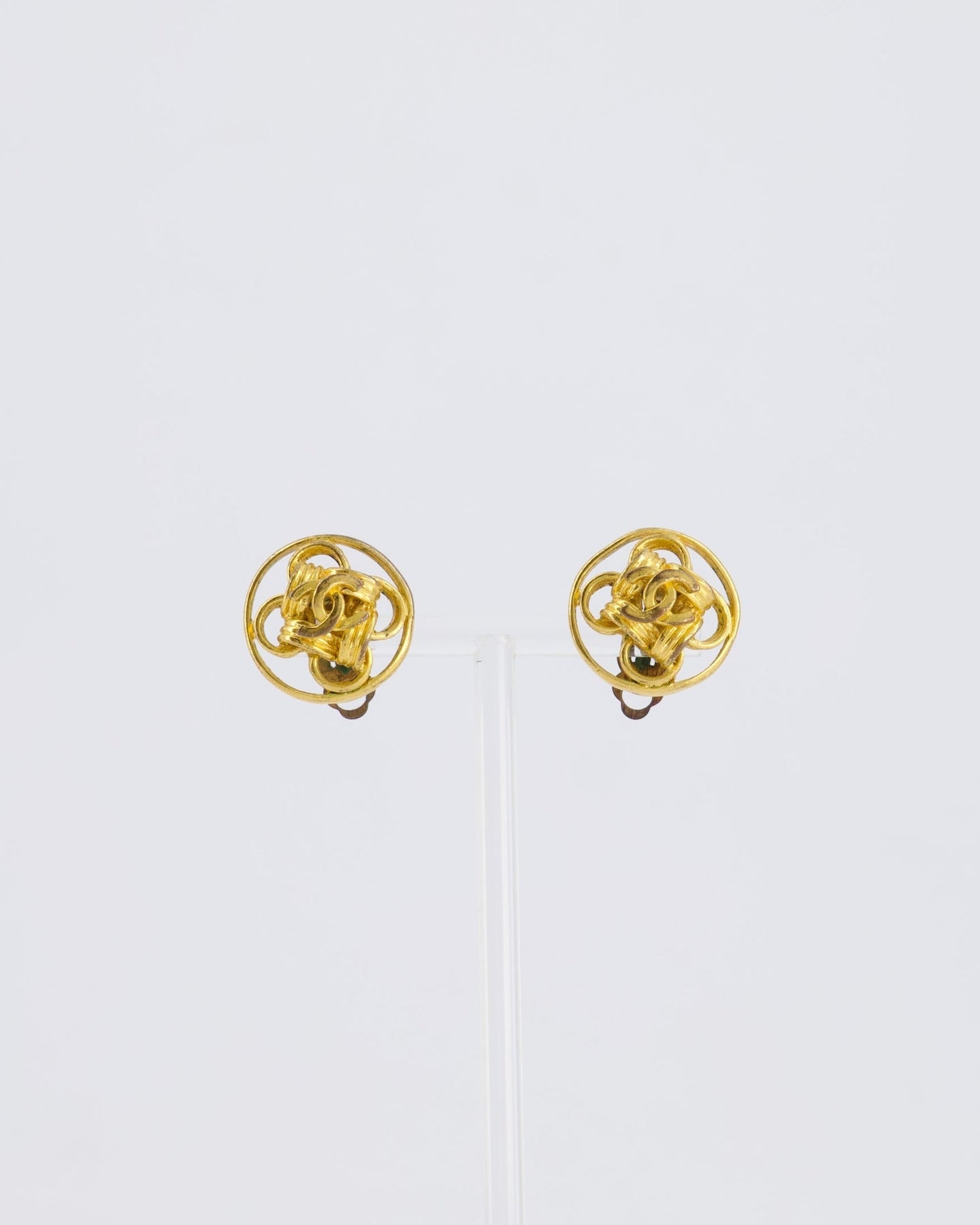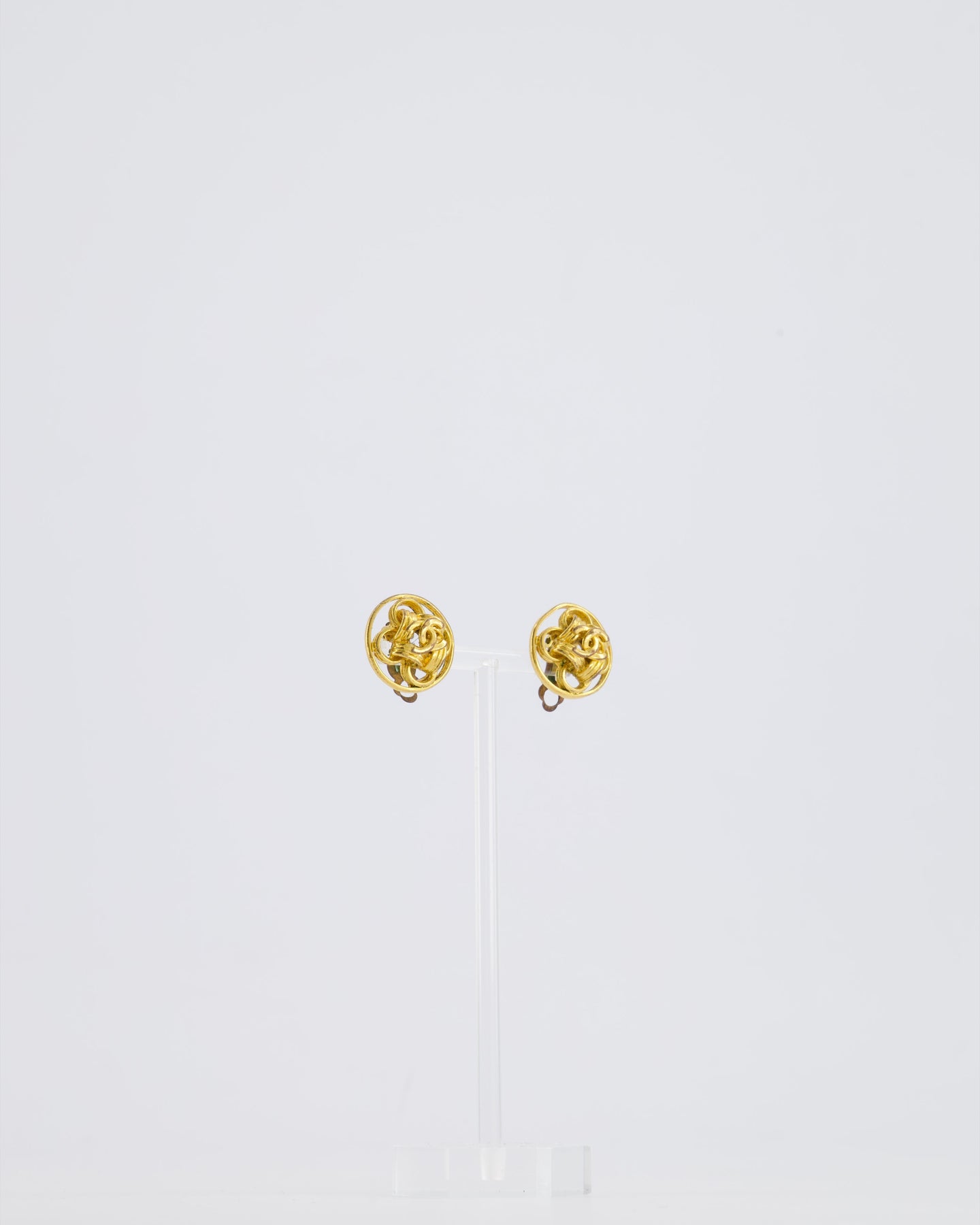 *HOT* Chanel Gold Round Knotted CC Logo Earrings