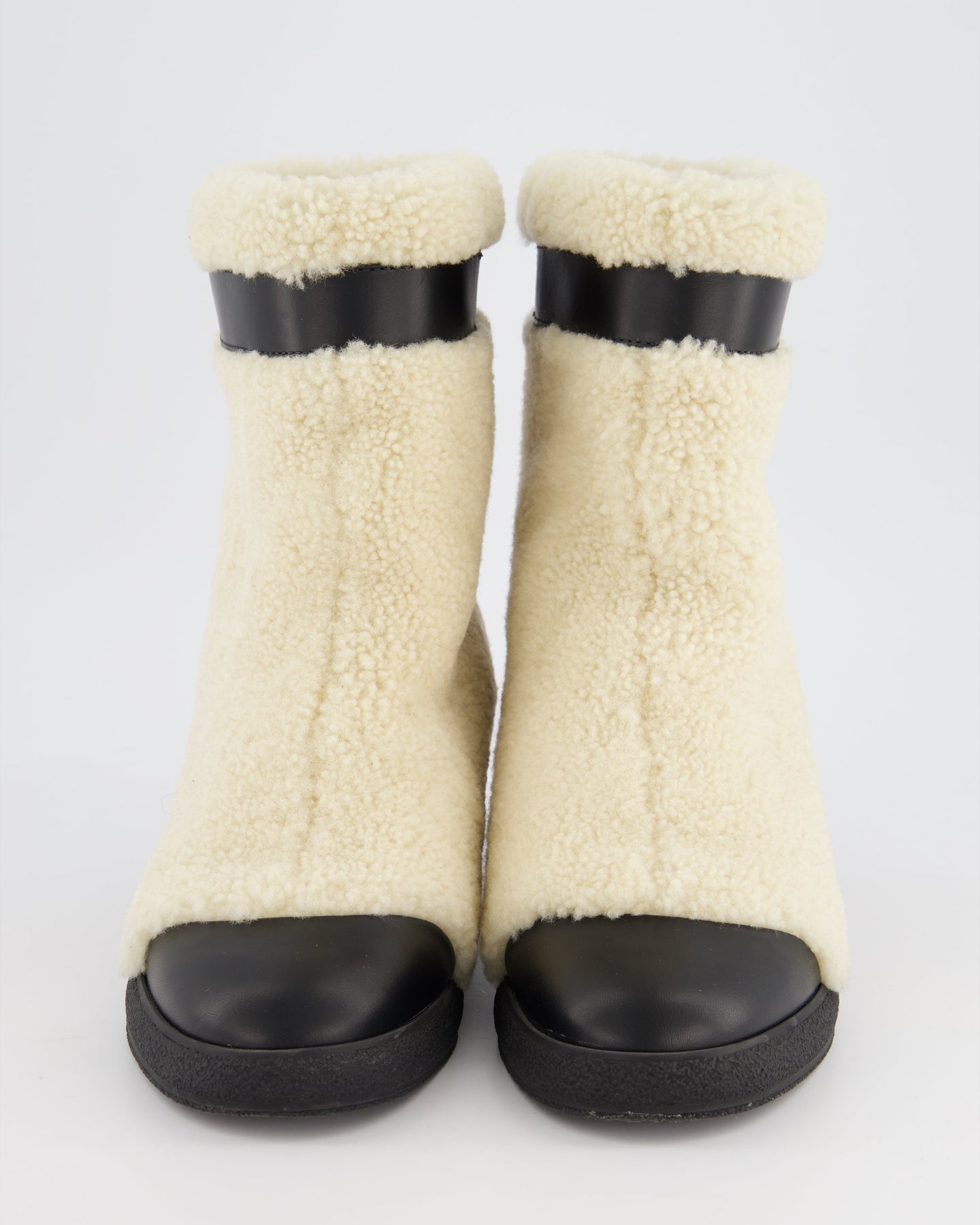 *HOT* Chanel White Shearling and Black Leather Logo Strap and Toe Detail Size EU 38.5