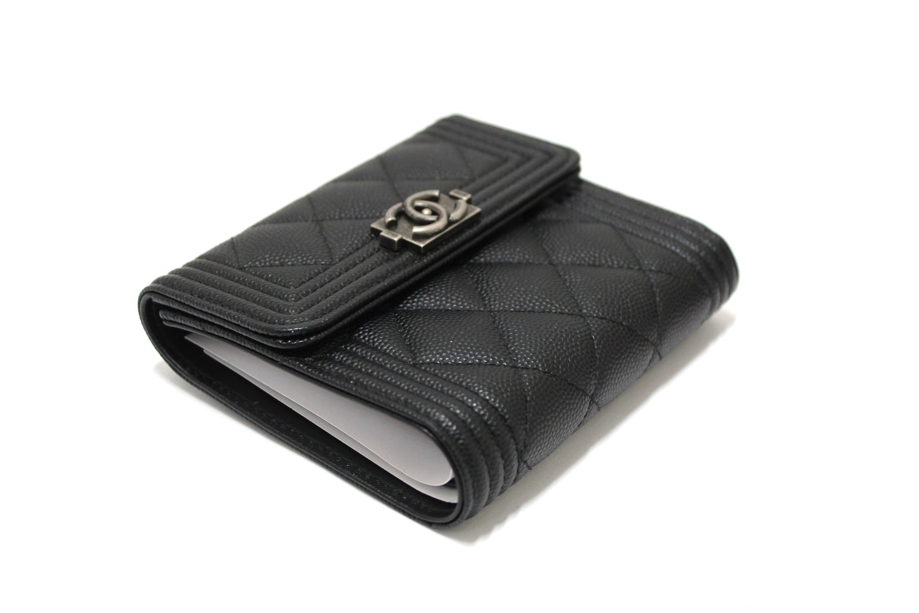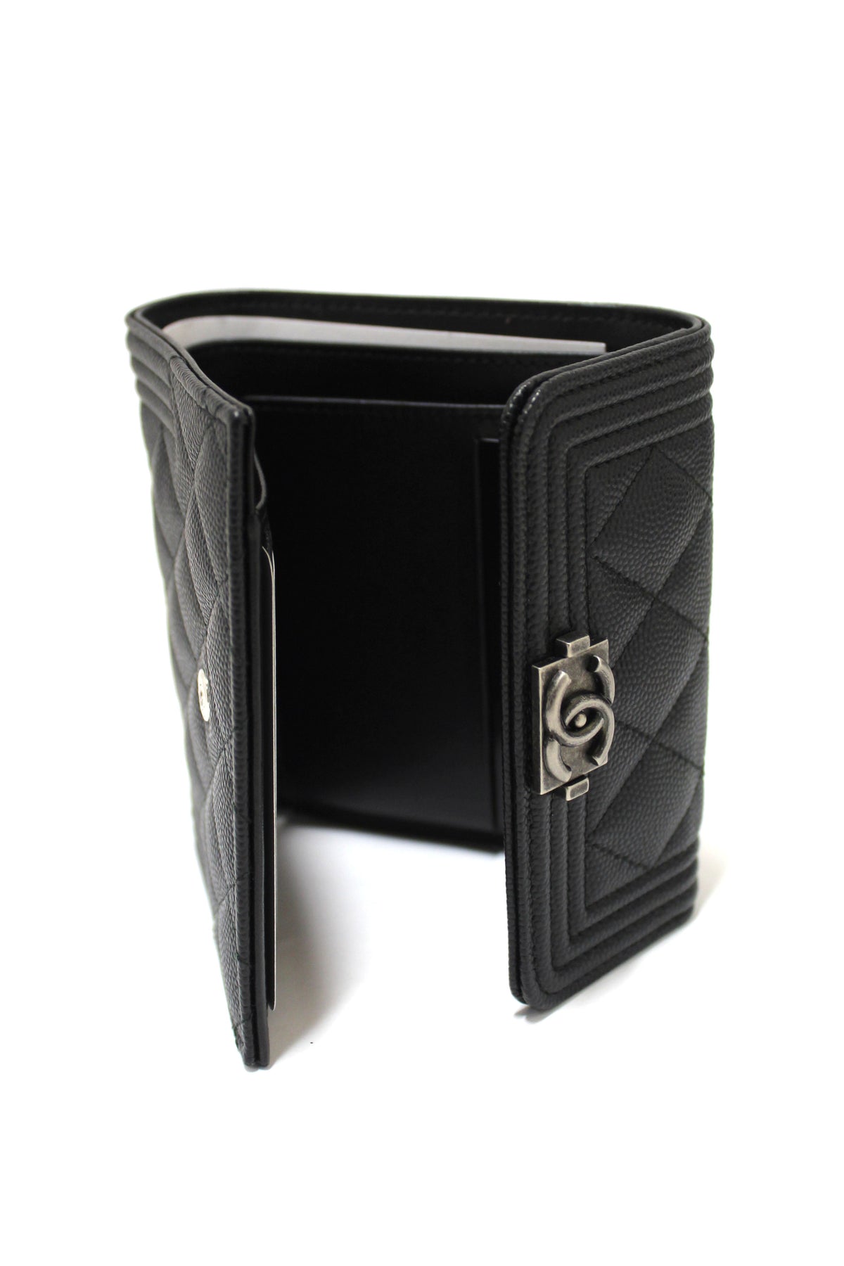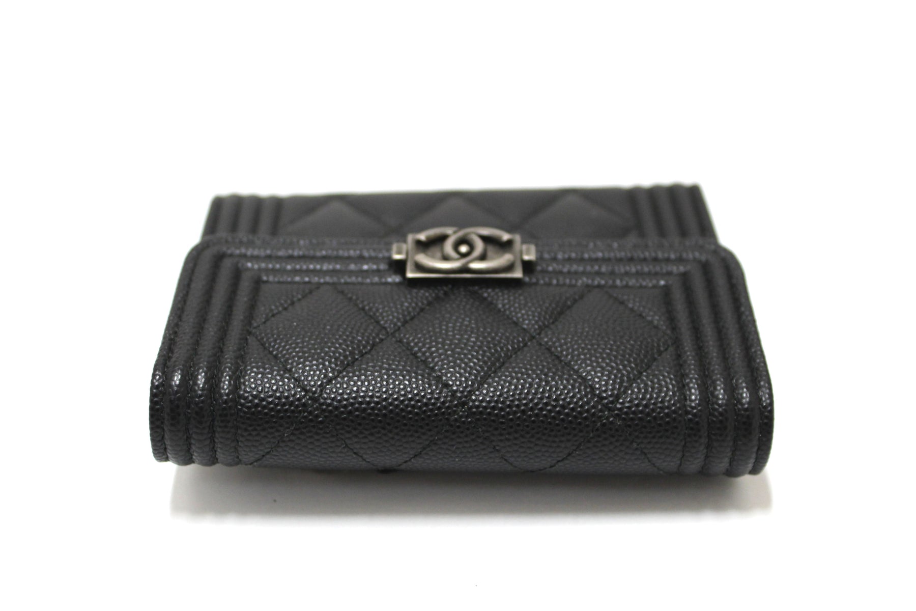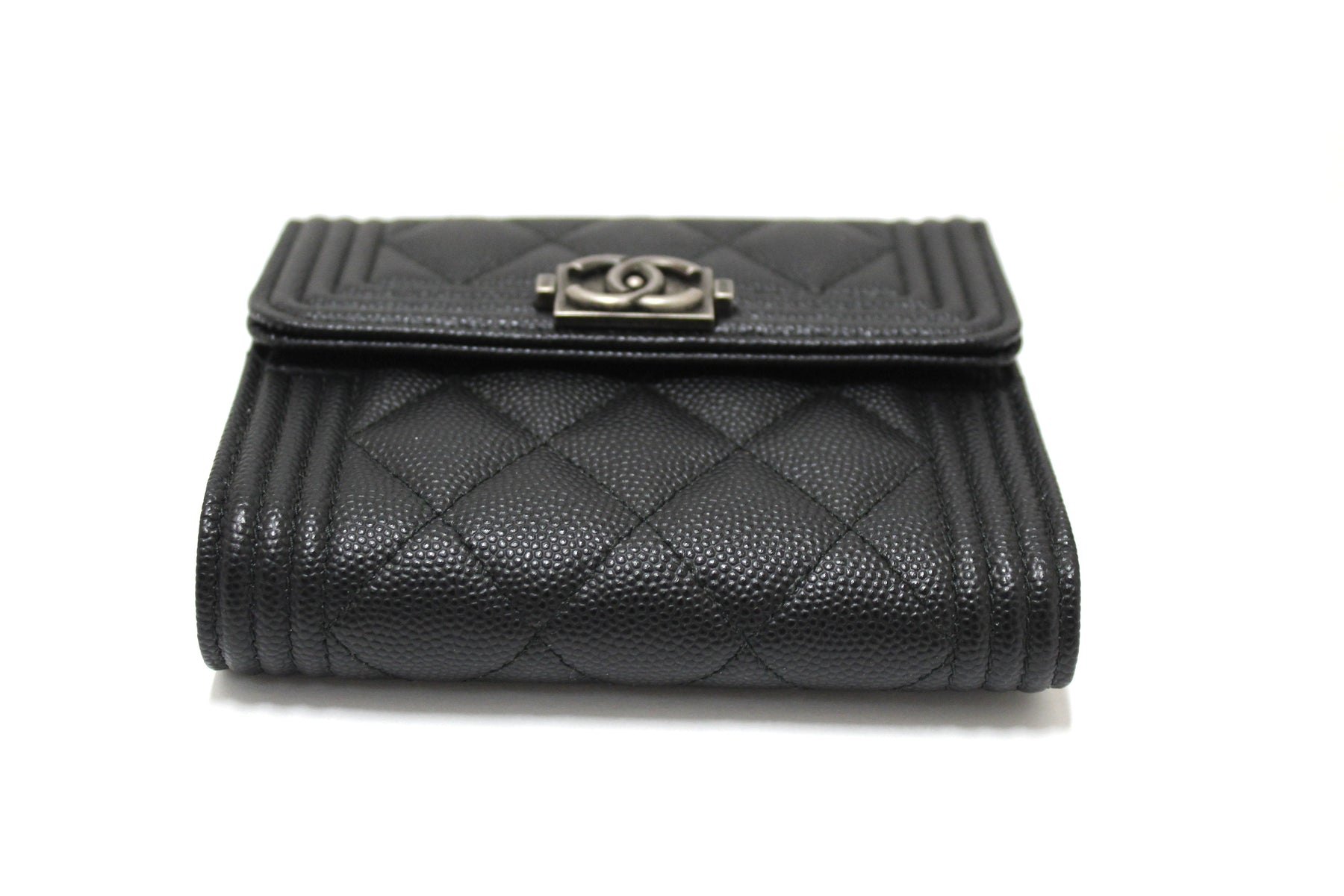 NEW Top Quality Chanel Black Quilted Caviar Leather Boy Small Trifold Wallet