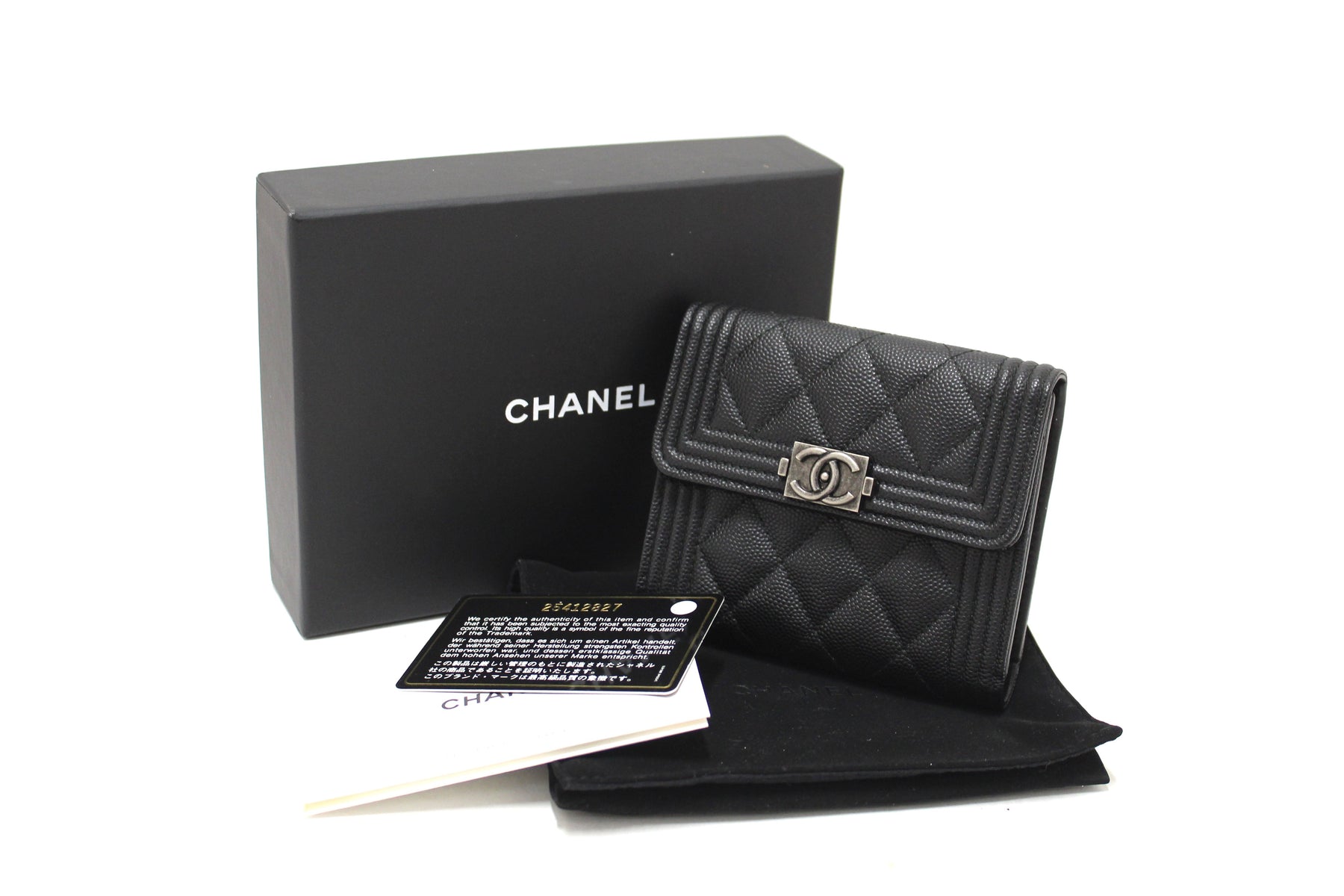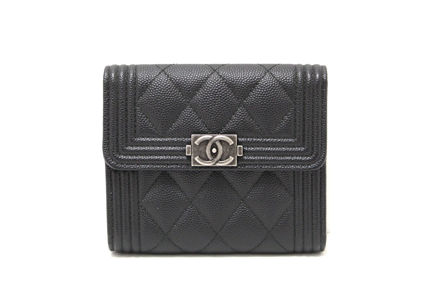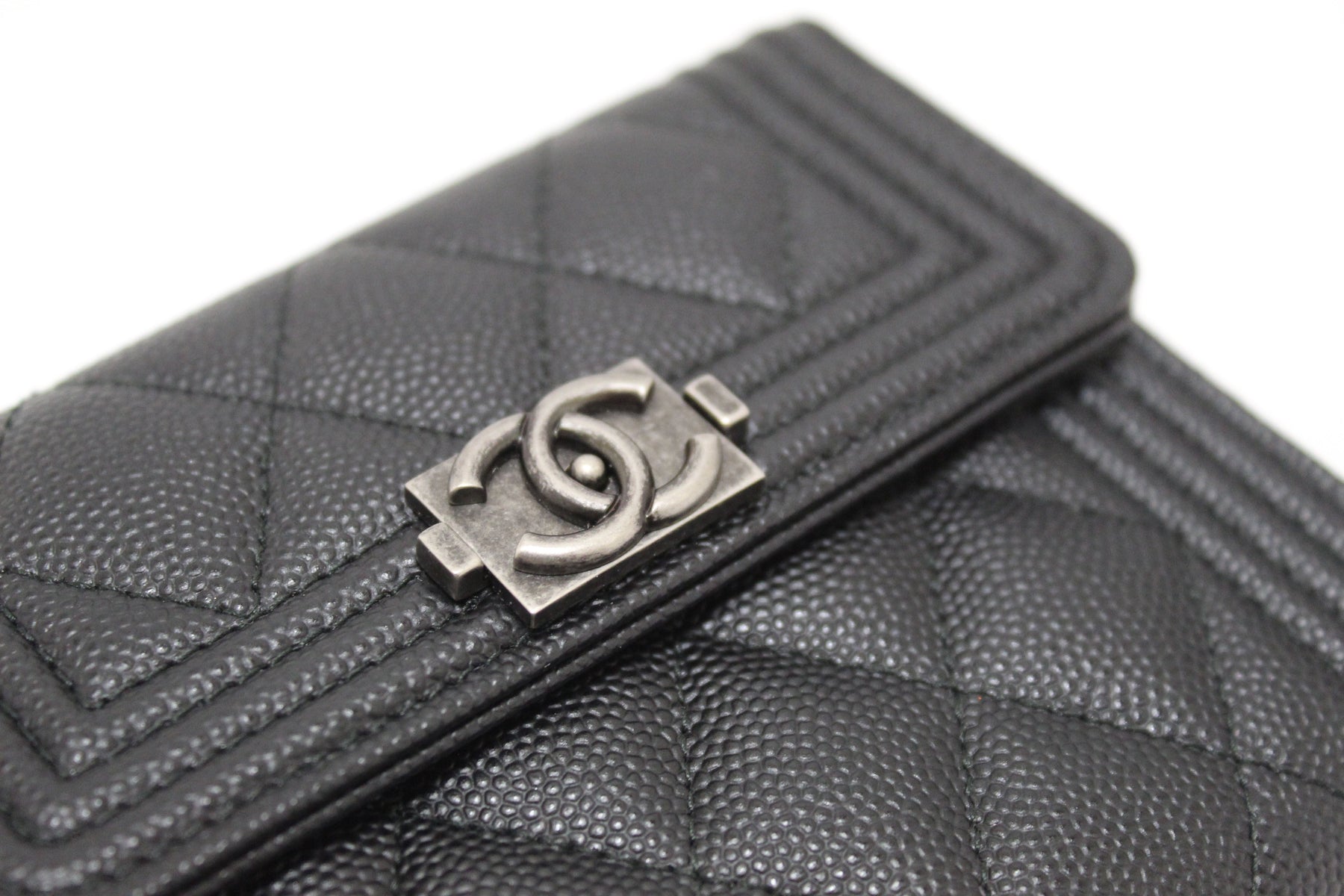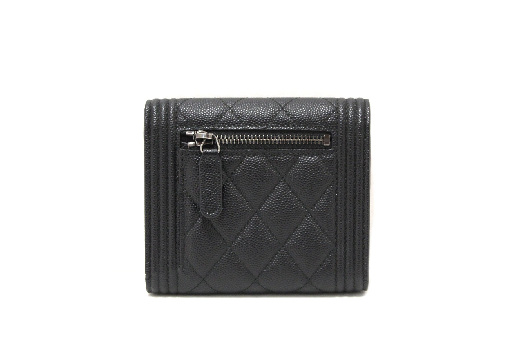 NEW Top Quality Chanel Black Quilted Caviar Leather Boy Small Trifold Wallet