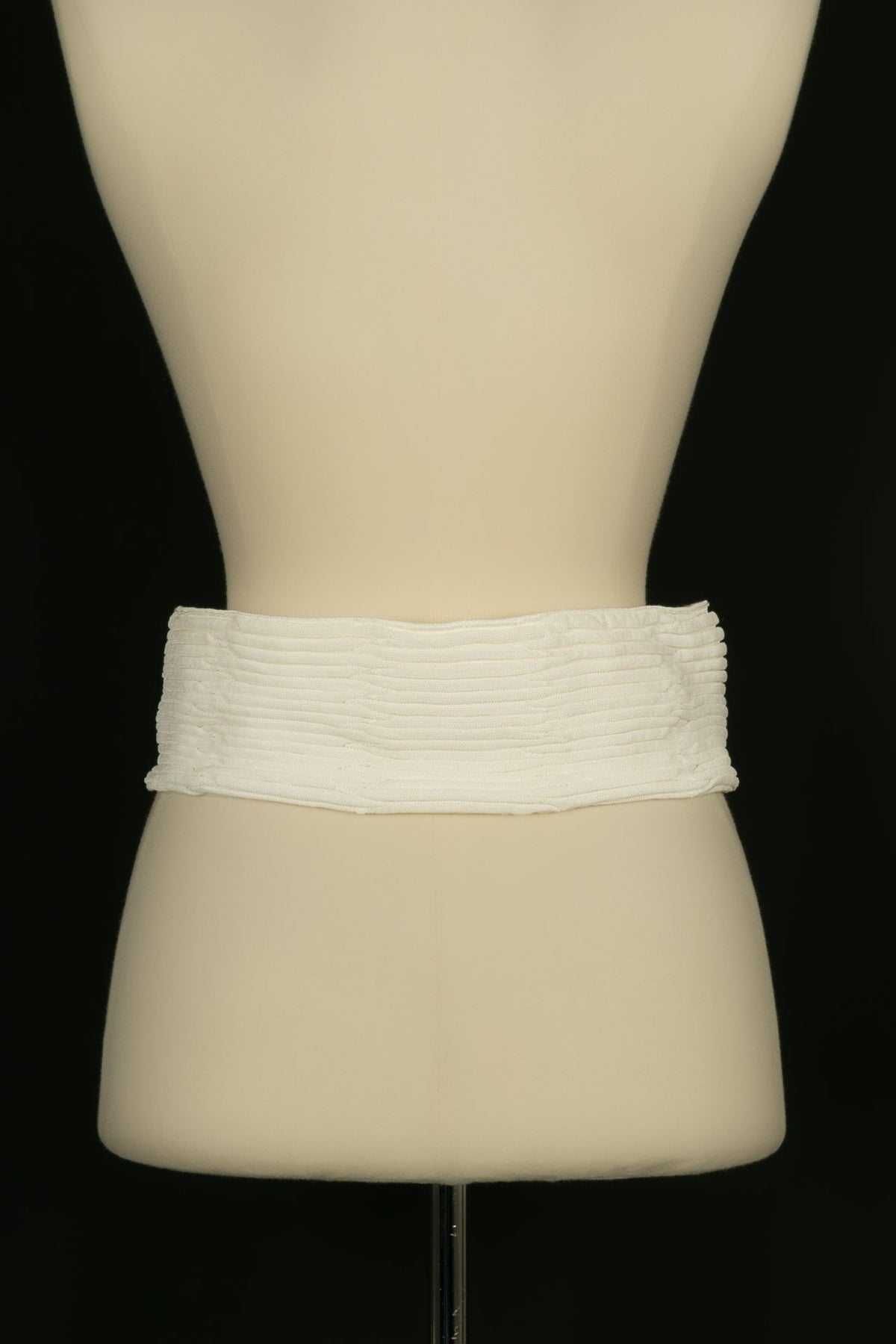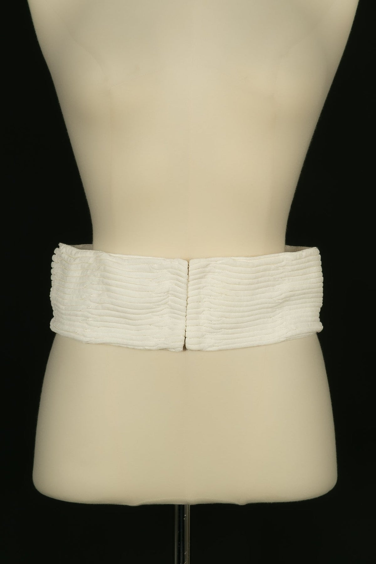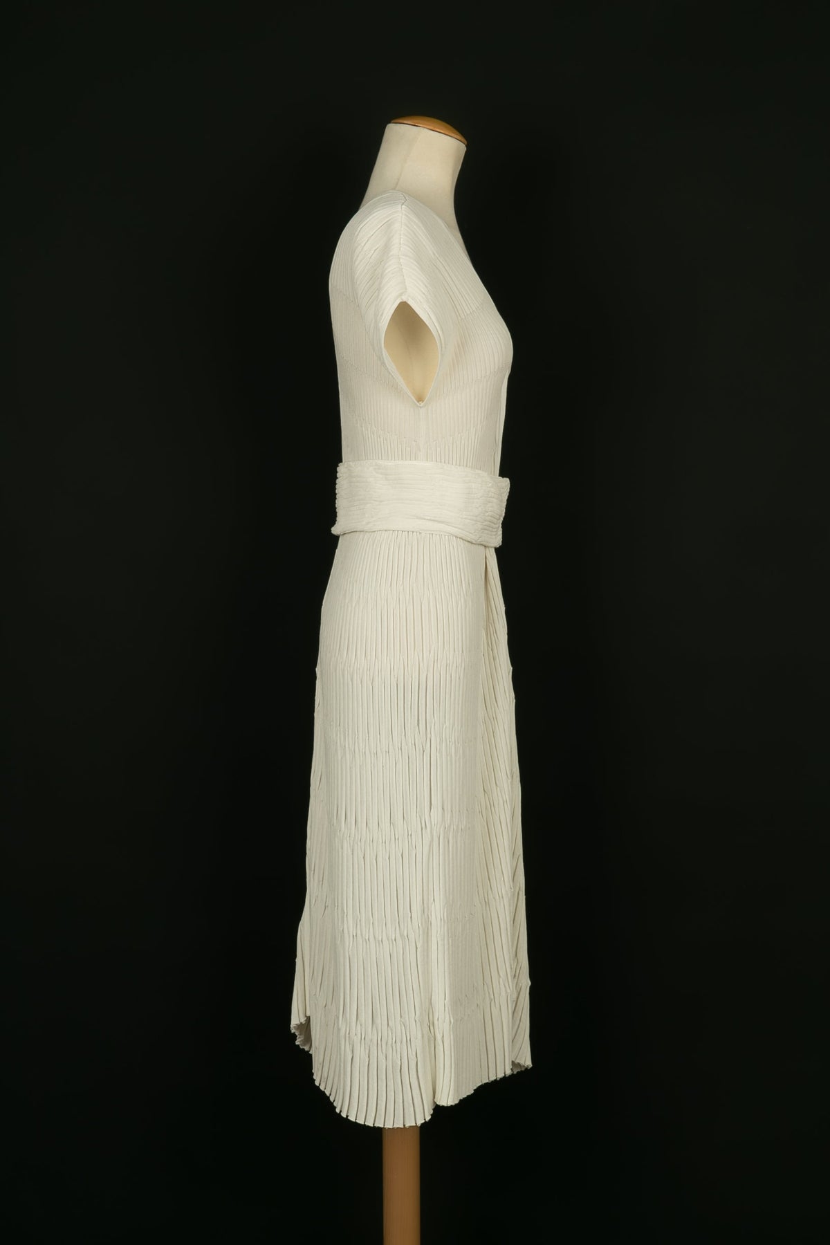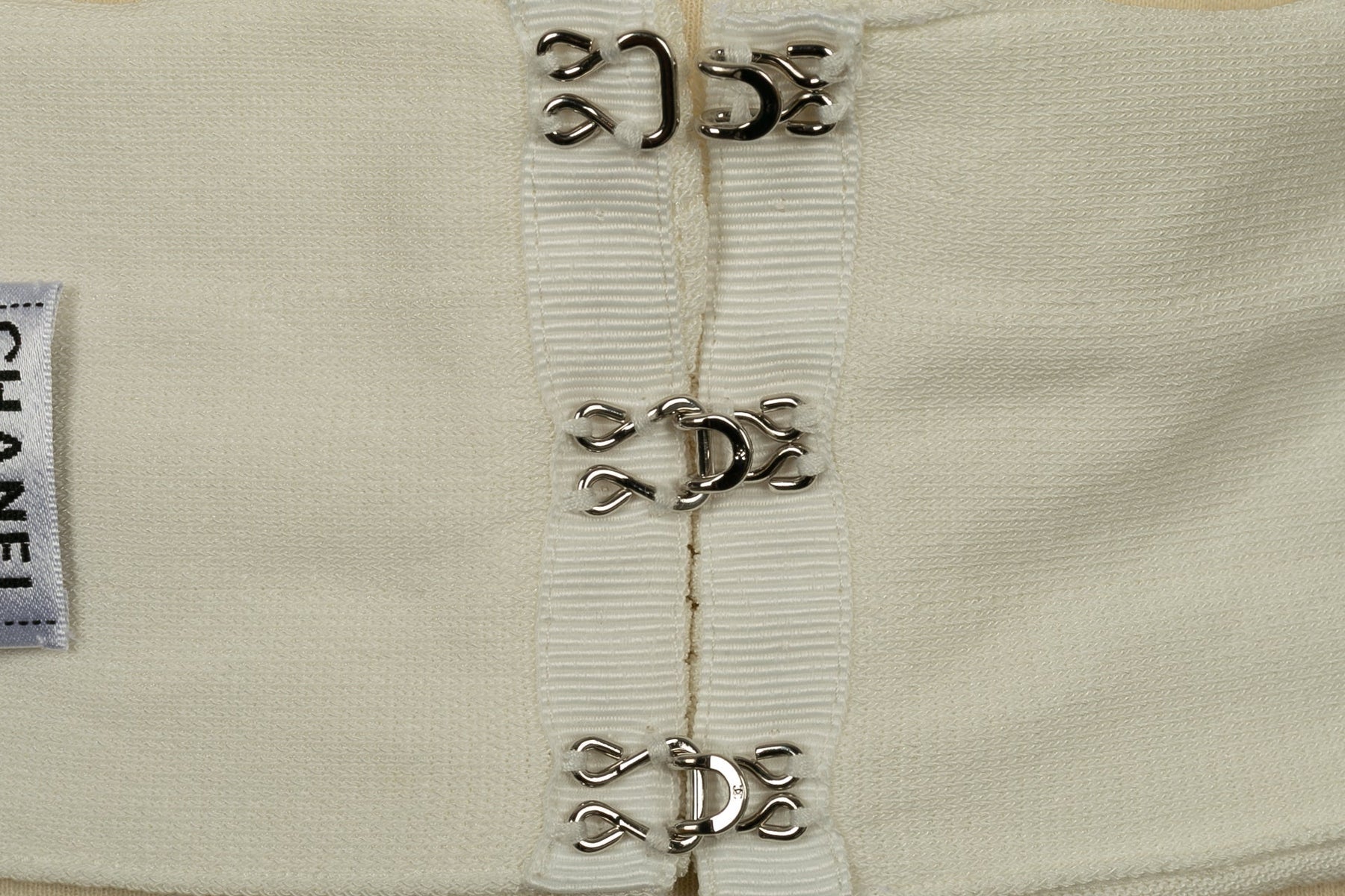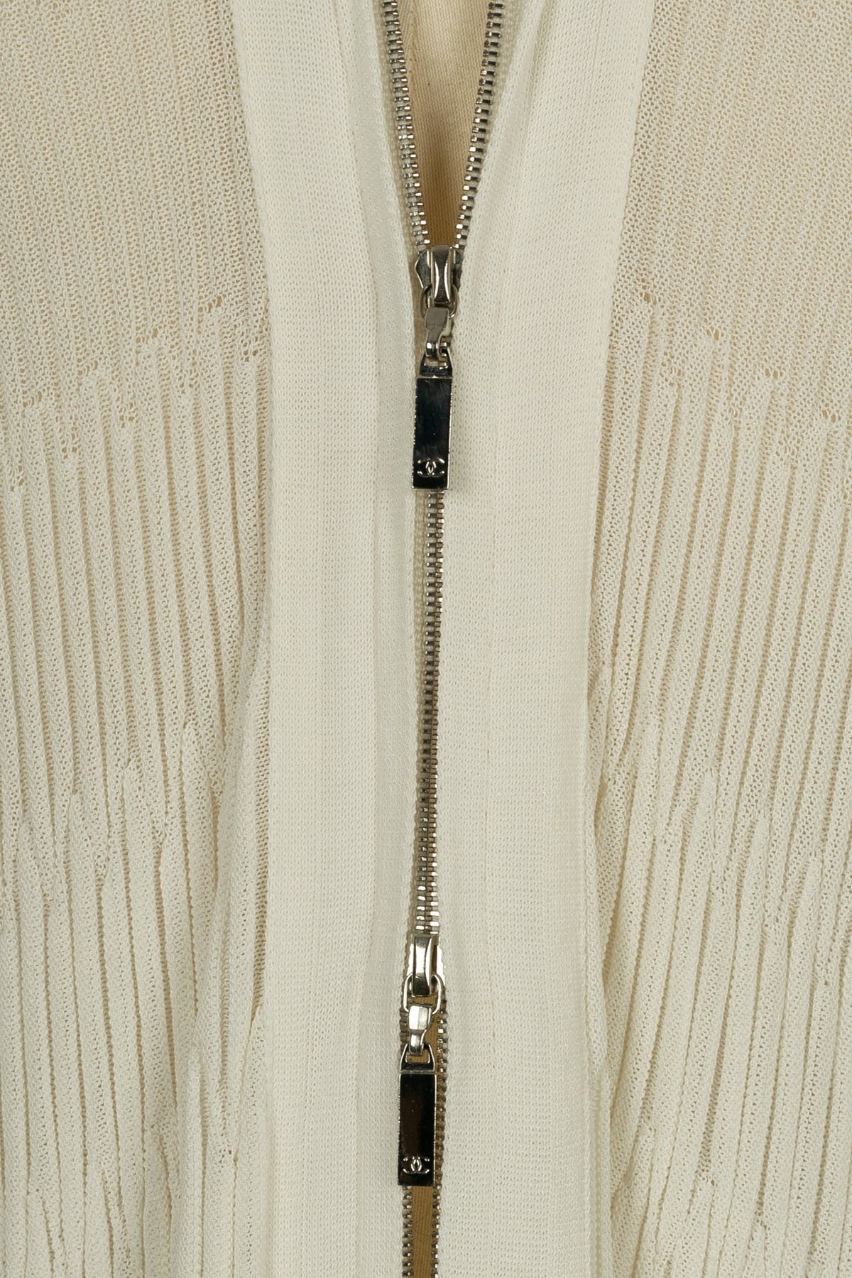 CHANEL - (Made in France) Robe en coton mélangé blanc, zip en métal argenté. Taille indiquée 40FR.