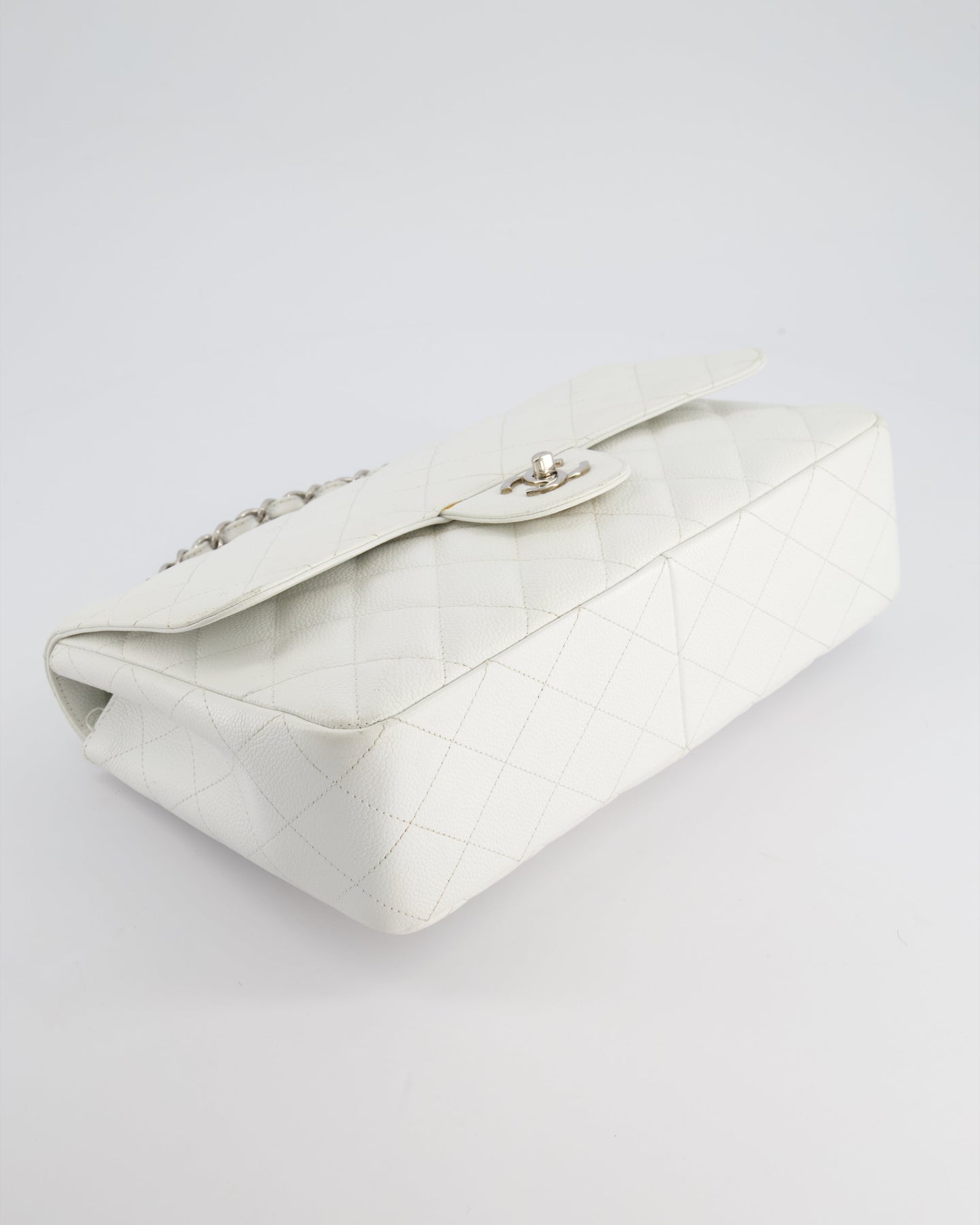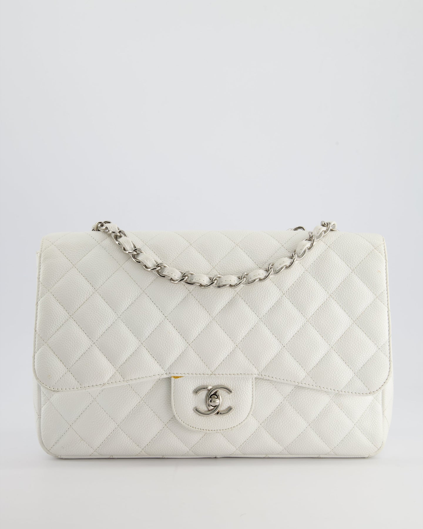 *SUPER FIRE PRICE* Chanel White Jumbo Classic Single Flap Bag in Caviar Leather with Silver Hardware
