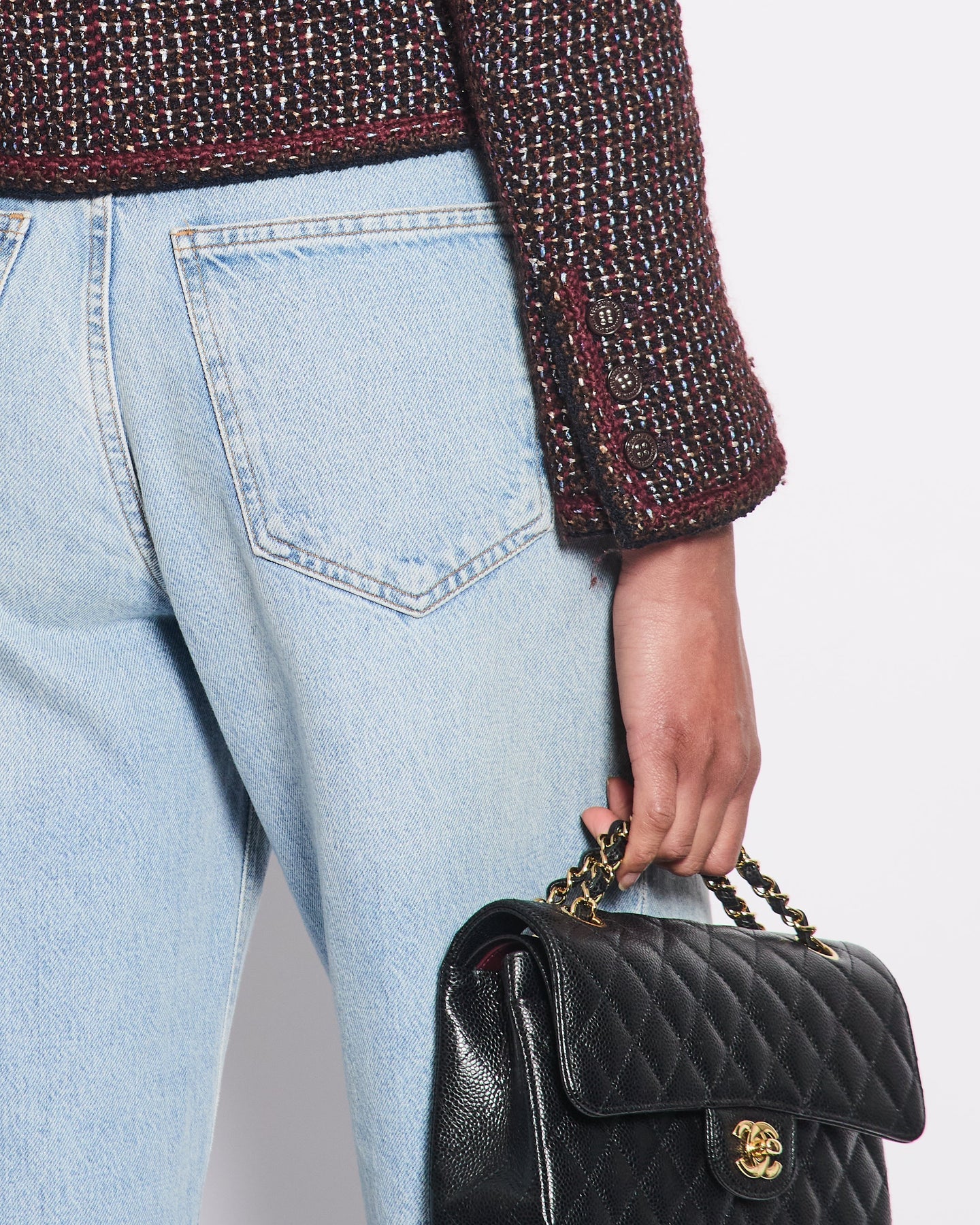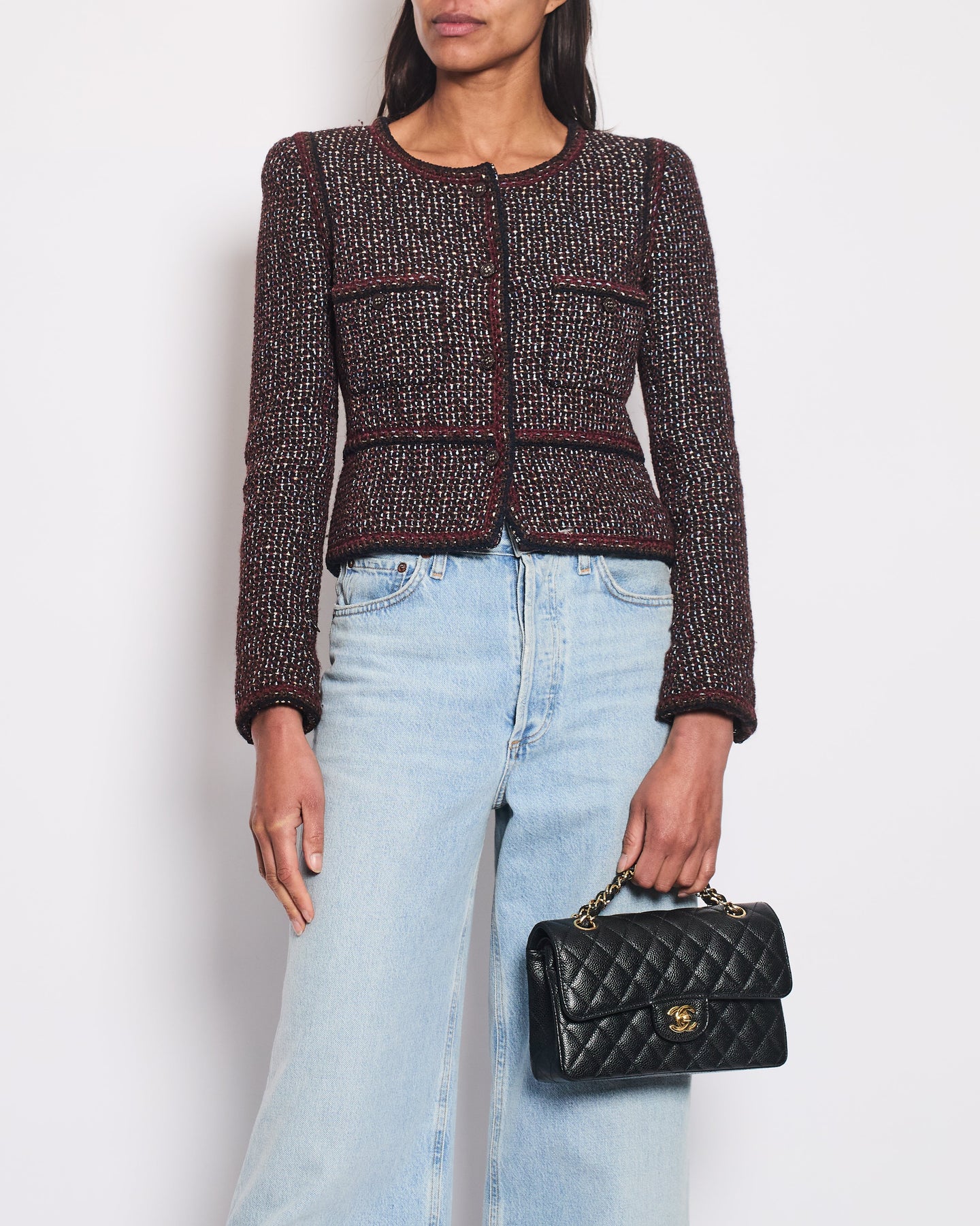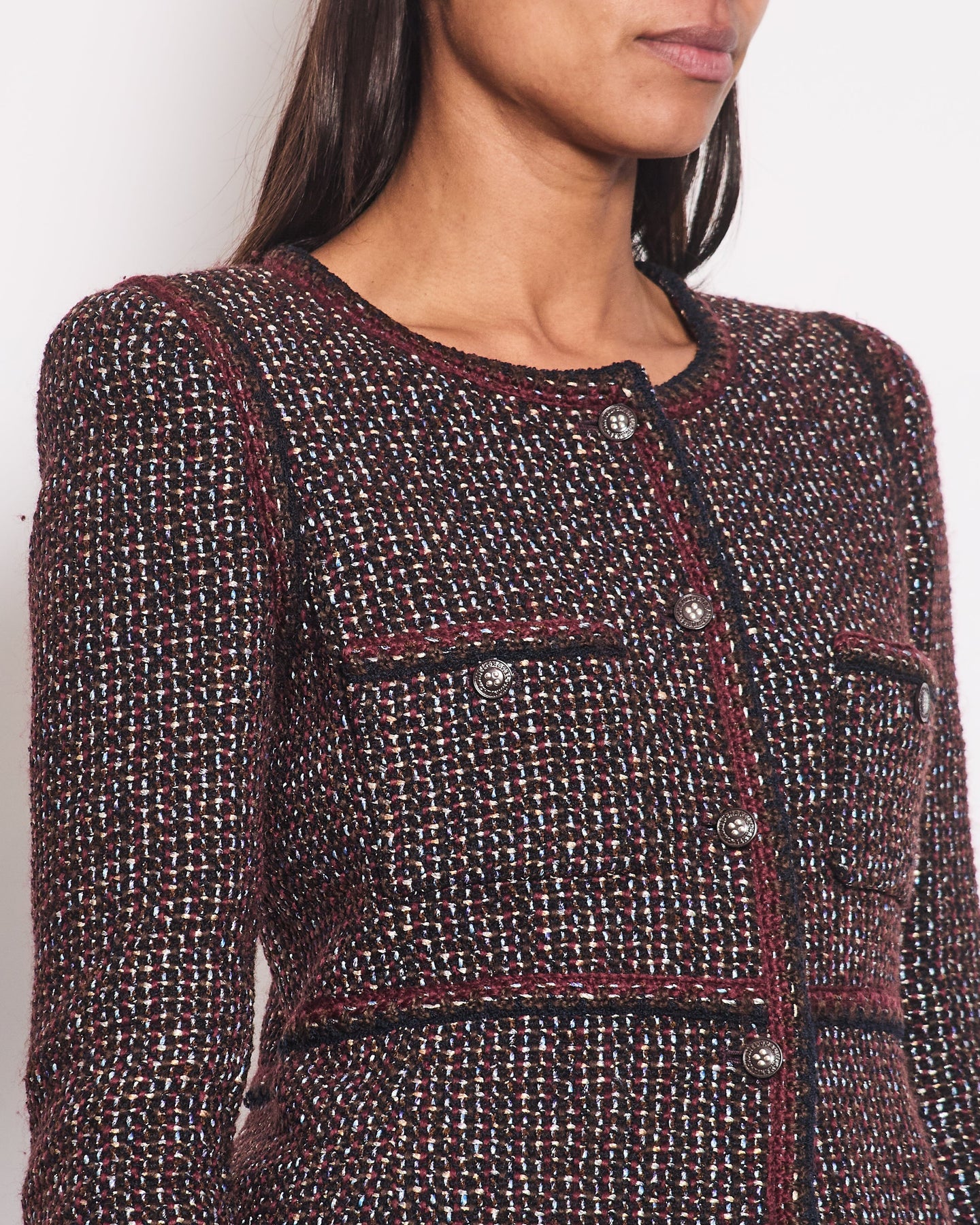 Chanel 02A Navy & Burgundy Multicolour Tweed Long Sleeve Jacket with Brown Buttons Detail Size FR 38 (UK 10)