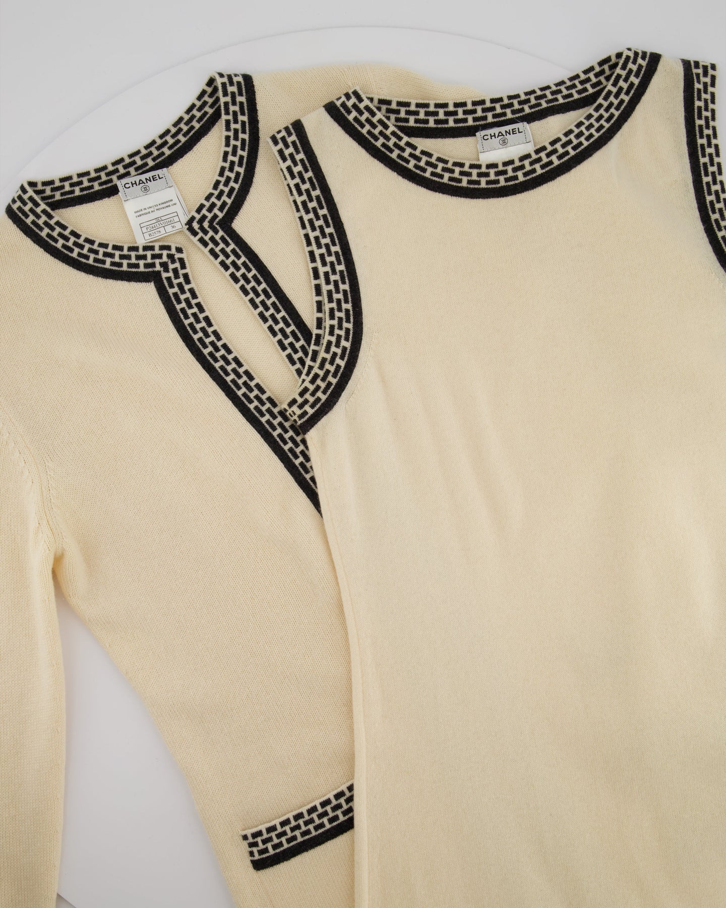 Chanel 04A Cashmere Midi Dress and Longline igan Set With Grey Trim Detail FR 36 (UK 8)
