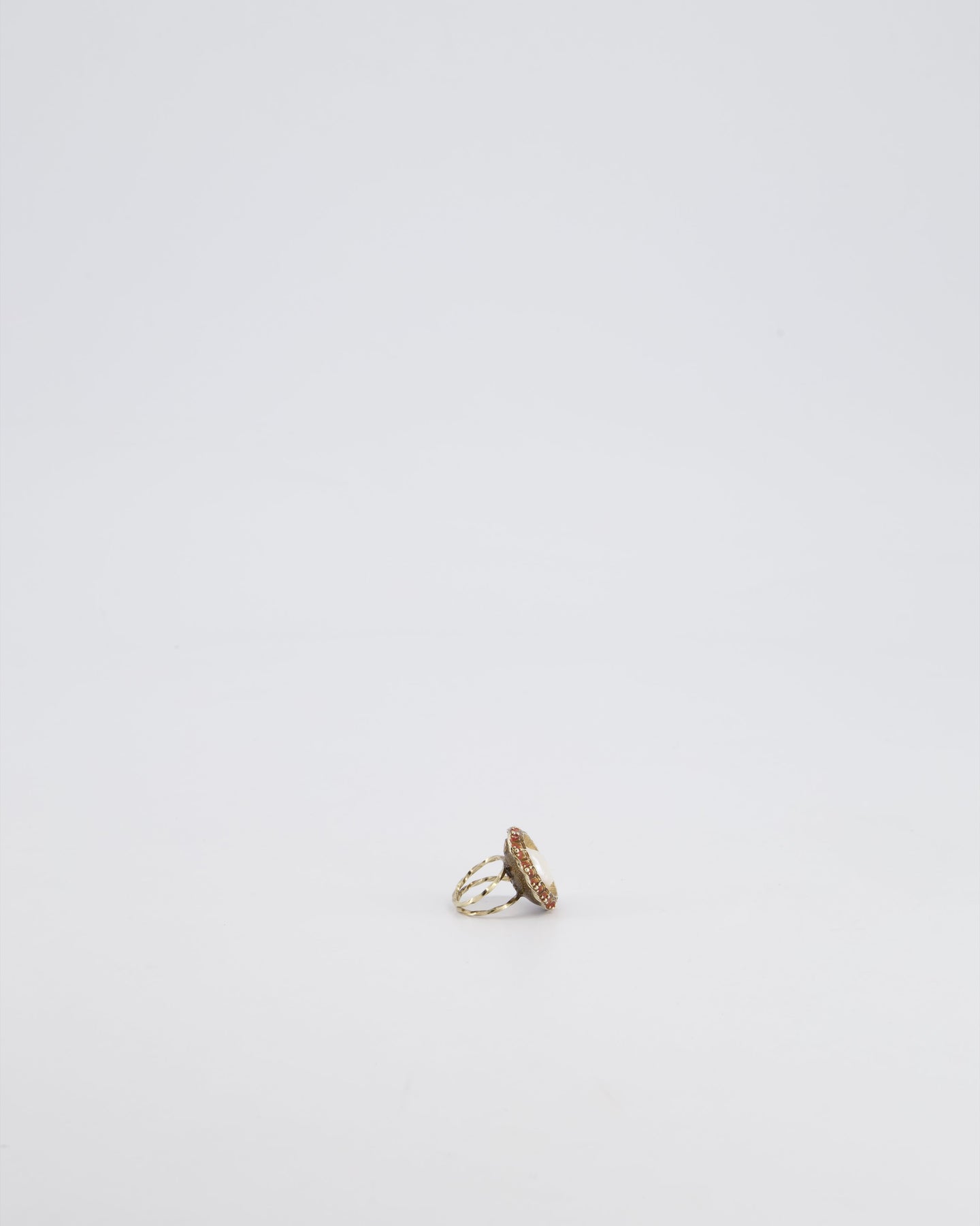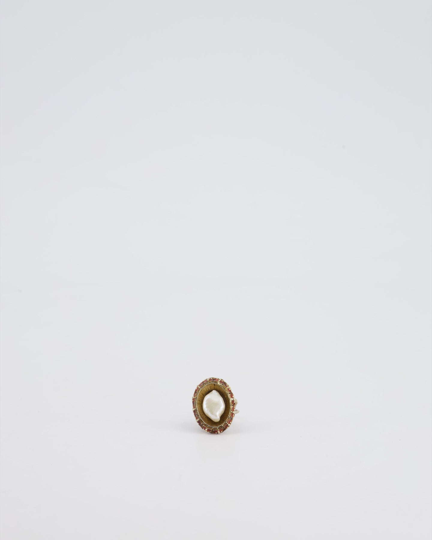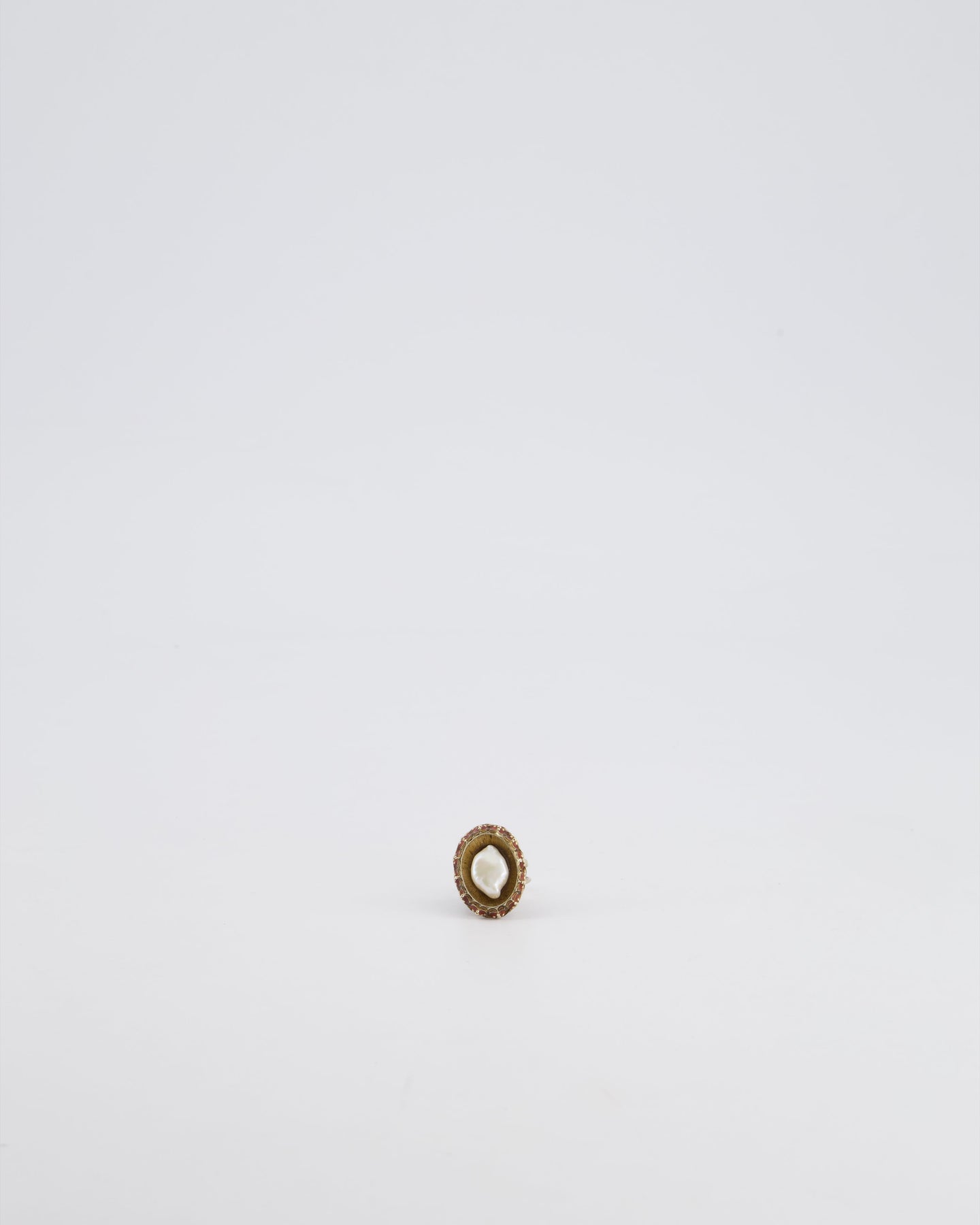 Chanel 10/C Antique Gold and Pearl Ring with Enamel Detail