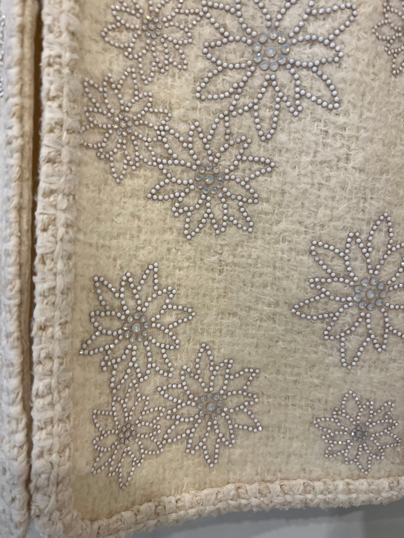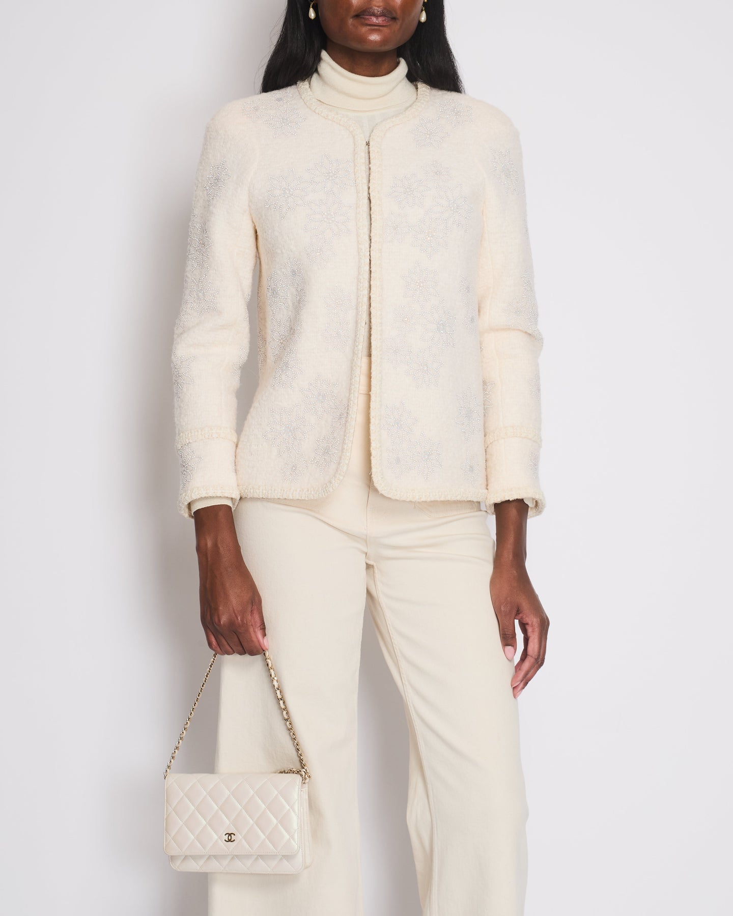 Chanel 15A Paris-Salzburg Cream Tweed Jacket with Sequin Embellished Edelweiss and Pearl Buttons Size FR 36 (UK 8)