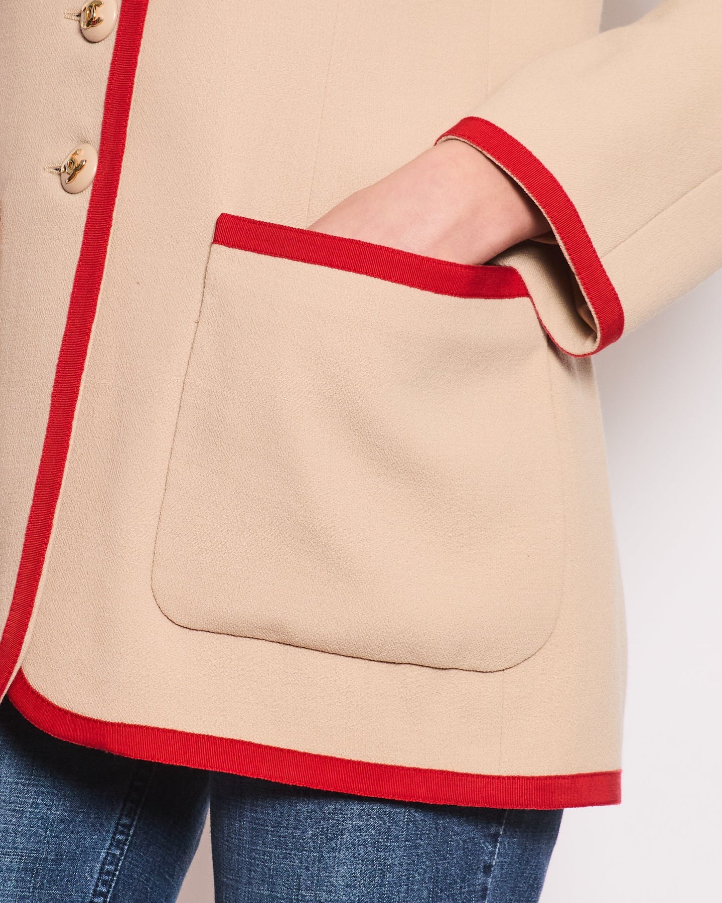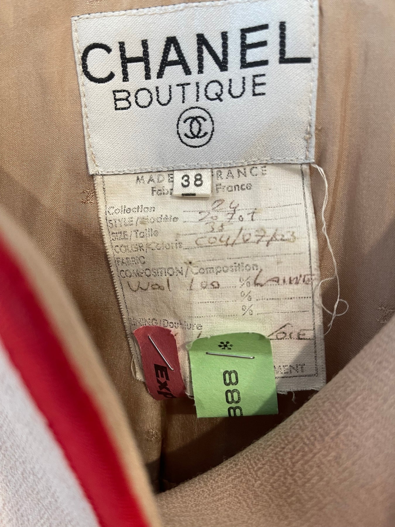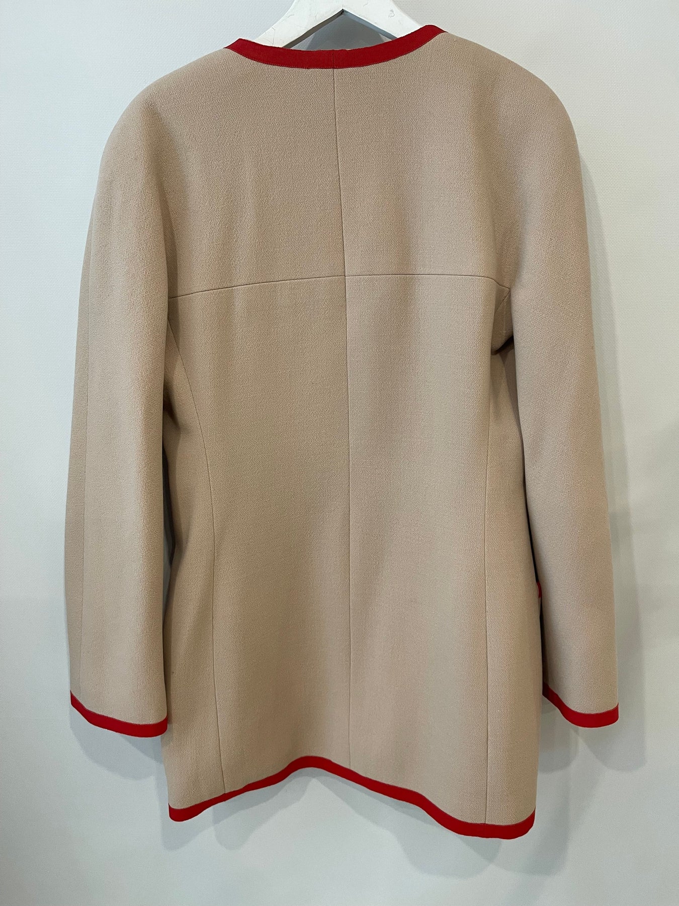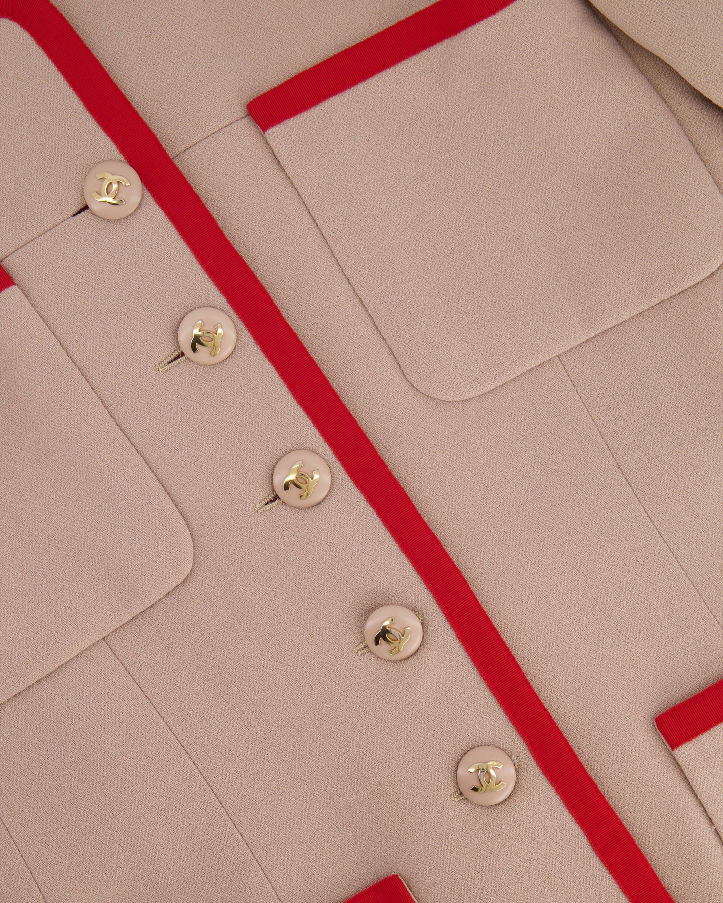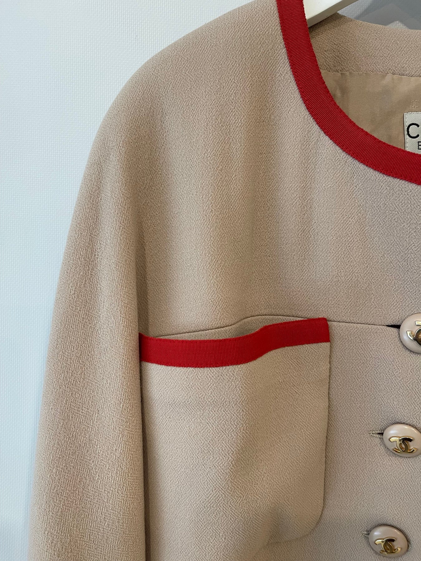 Chanel Vintage Wool Beige and Red Jacket with Gold CC Button Details Size FR 38 (UK 10)