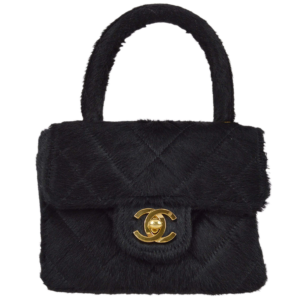 Top Quality Chanel 1991-1994 * Black Pony Hair Classic Flap Micro Handbag