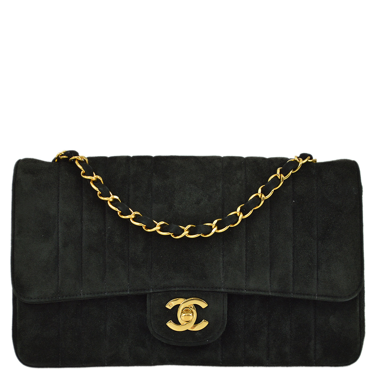 Top Quality Chanel 1991-1994 Black Suede Medium Vertical Stitch Single Flap Bag