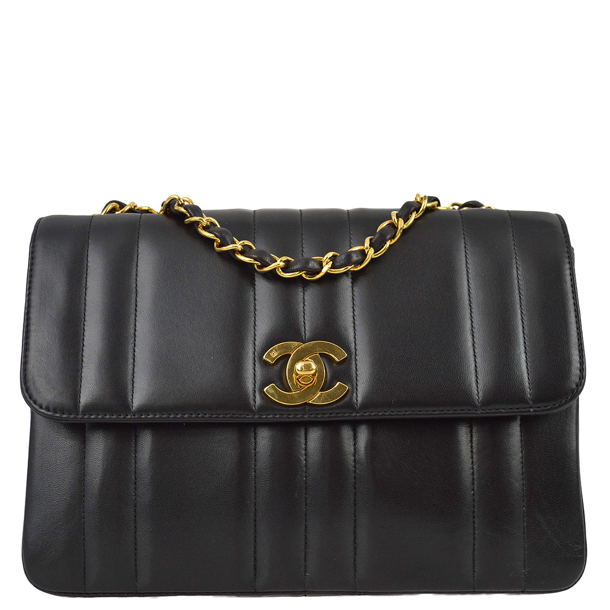 Top Quality Chanel 1994-1996 Black Lambskin Small Vertical Stitch Straight Flap Bag