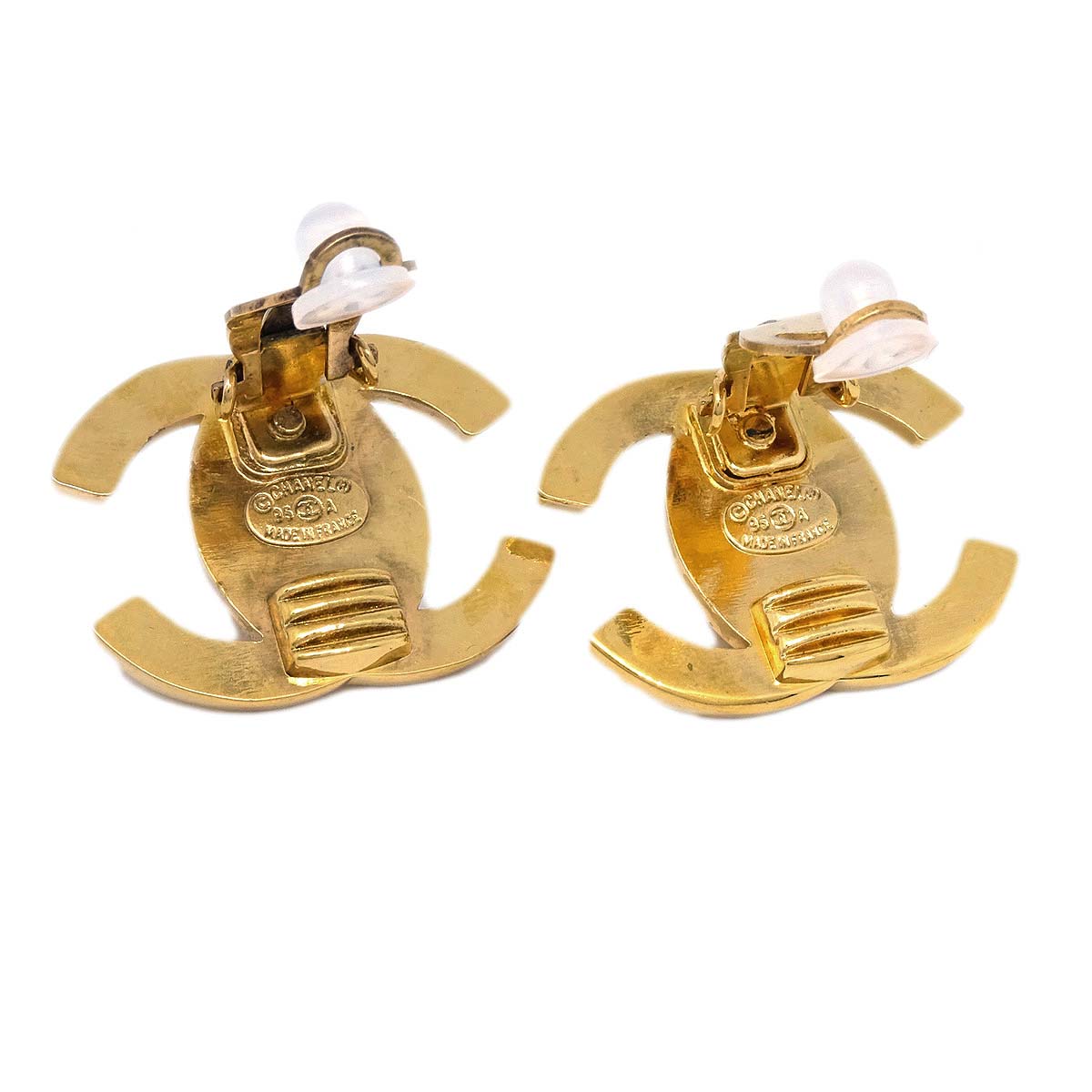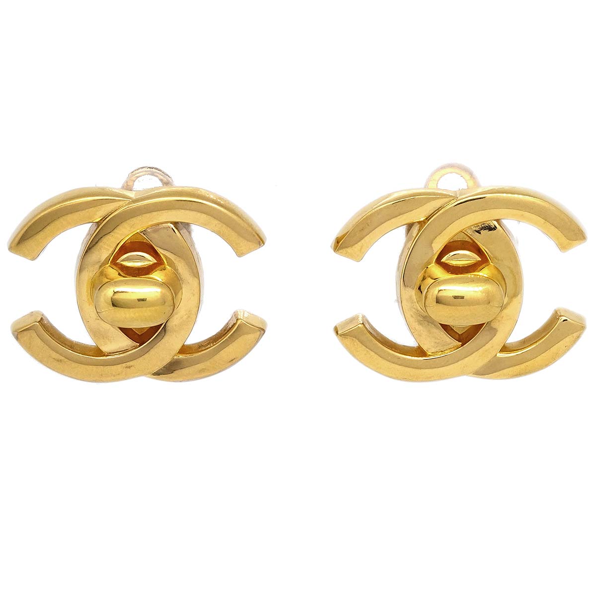 Chanel CC Turnlock Earrings Clip-On Gold Large 95A Engraved / Number 95A Size(Inch) W 1.1 x H 0.8 " Size(cm) W 2.7 x H 2.1 cm Color / Material Gold / Gold-plated Accessory - SKU Number 141010 Damage Exterior New condition Other -