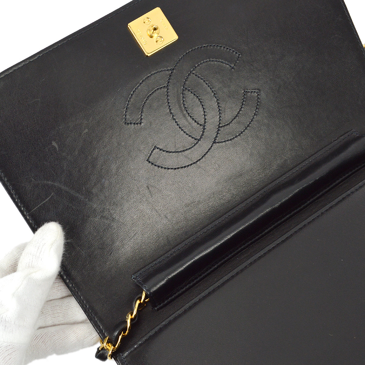 Chanel Black Lambskin Pushlock Small Full Flap Shoulder Bag Engraved / Number 53***** Pocket Outside: -