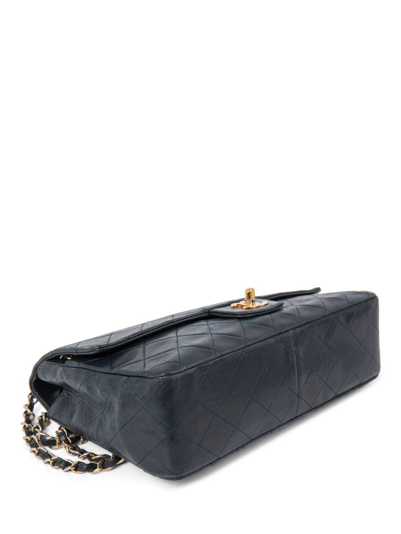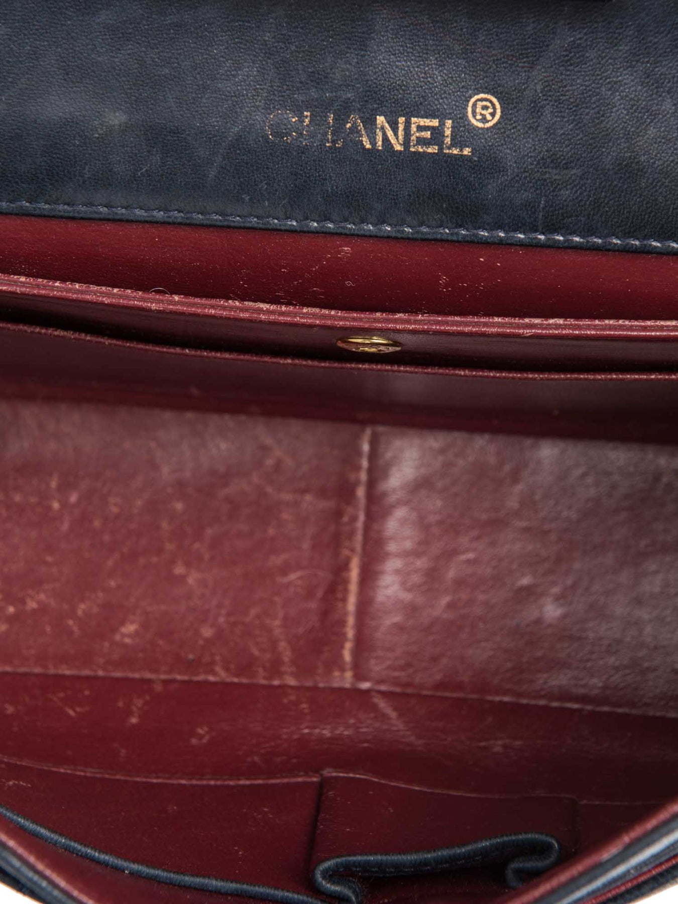 Chanel 2.55 Quilted Medium Flap Bag or or your . This bag is crafted with the finest navy lambskin leather, featuring 24K Gold Plated hardware with the signature CC logo on the front, and double gold chain. The bag opens to a burgundy leather lined interior featuring quilted leather pen holder on the flap, five slip pockets on the interior, zippered pocket and slip pocket on the front panel