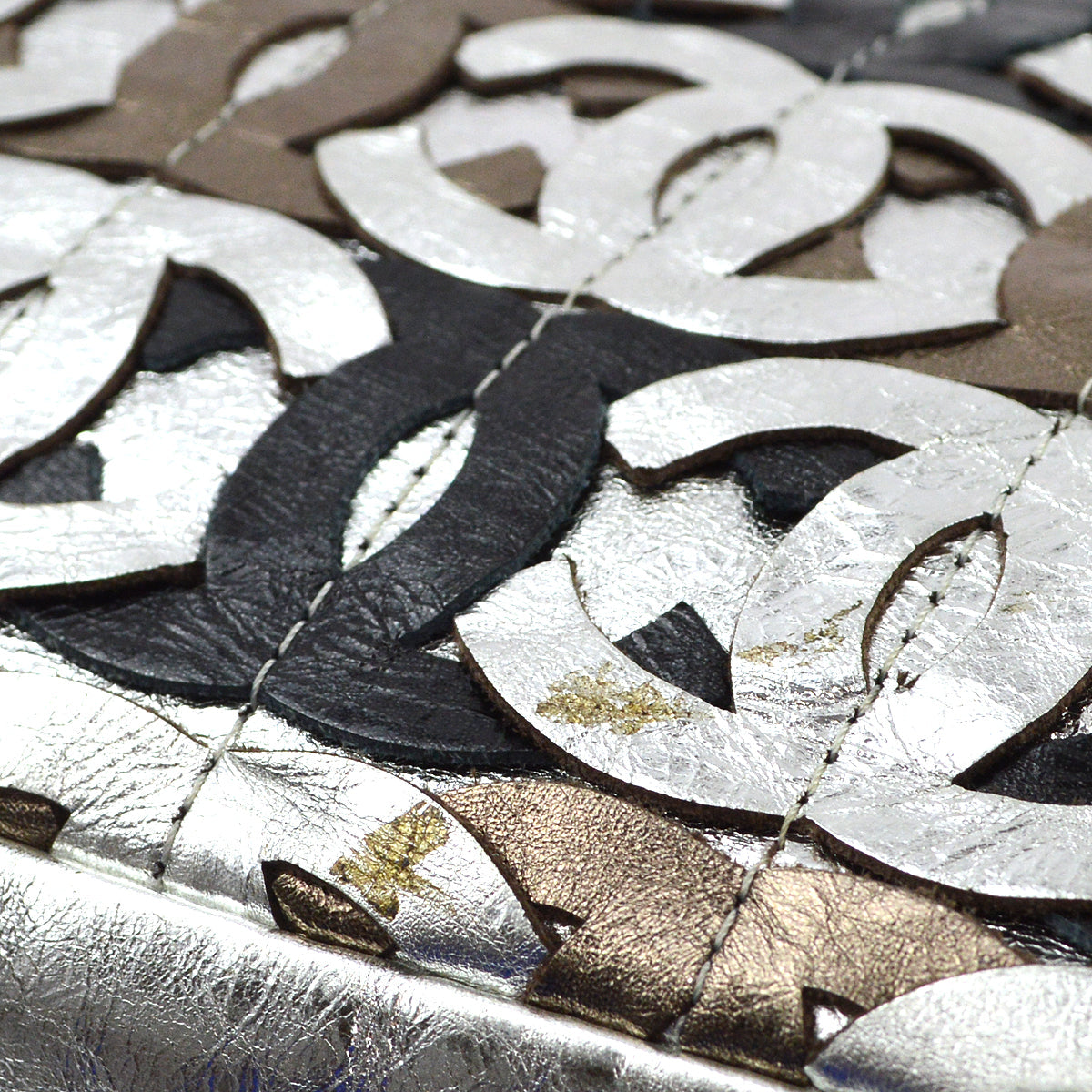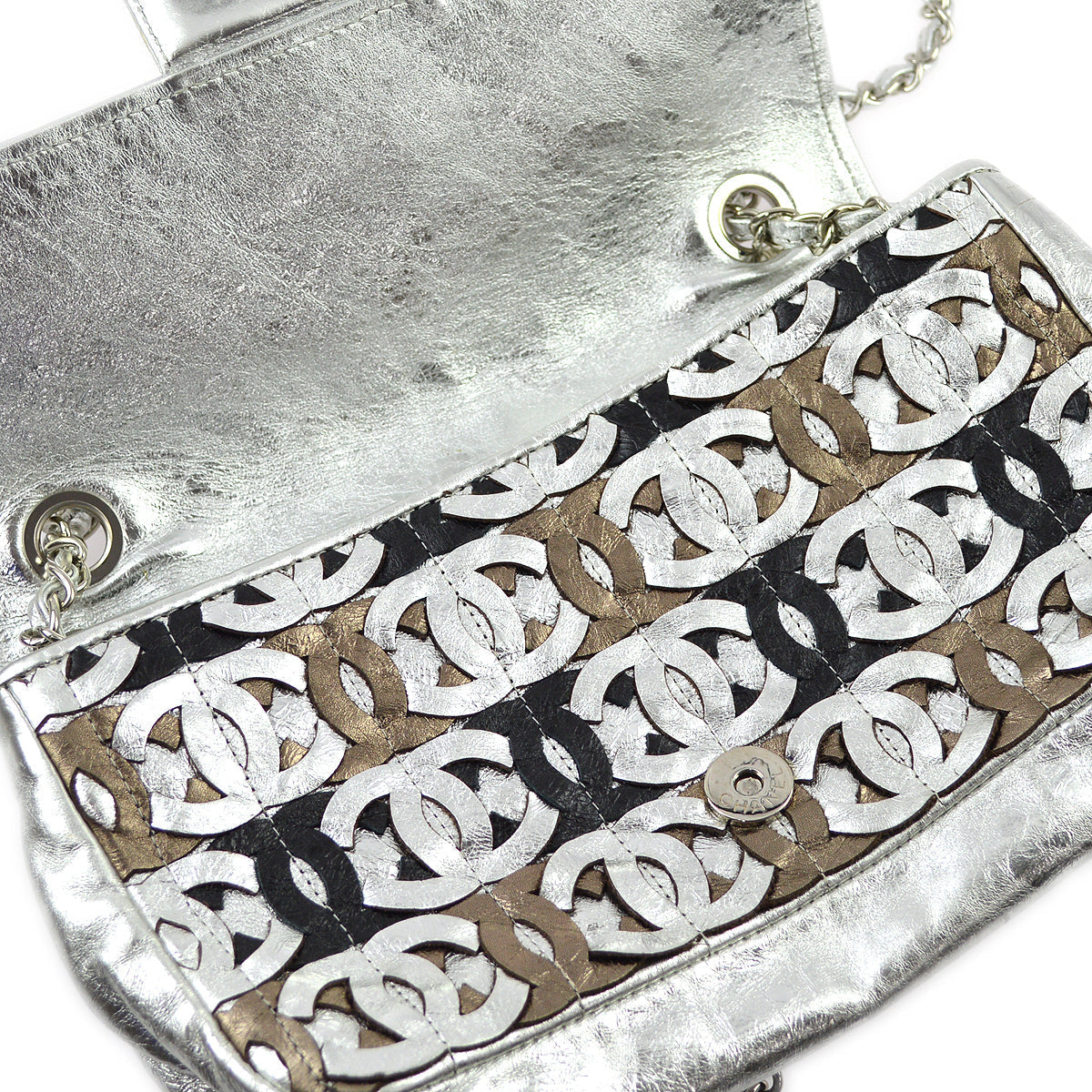 Chanel 2006-2008 Silver leather Shoulder Bag Engraved / Number 117***** Pocket Outside: -