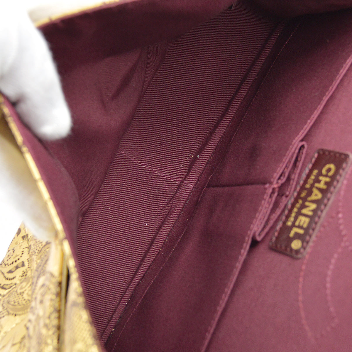 Chanel Gold Lambskin Paris-Moscow 2.55 Double Flap Shoulder Bag Engraved / Number 129***** Pocket Outside: Pocket x1