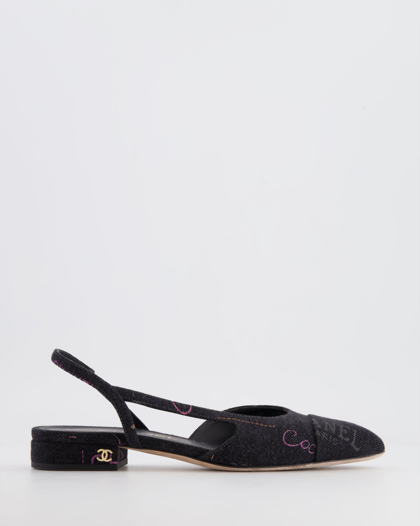 Chanel 22P Grey Denim Flat Slingback Sandals with Logo Details and Brand Stamps Details Size EU 36C