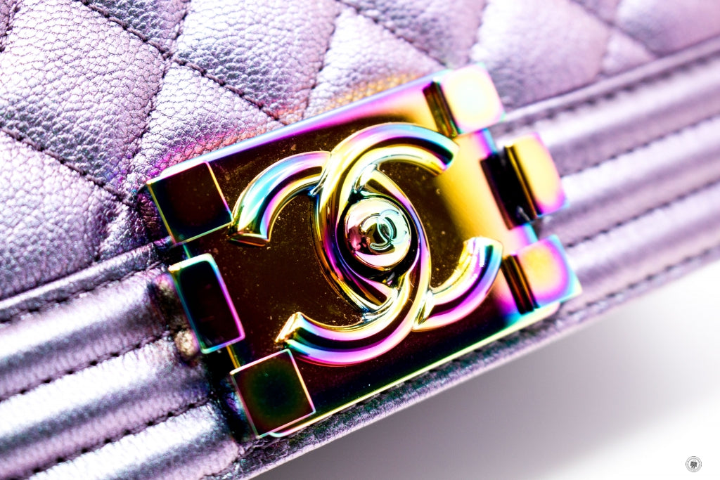 Chanel A67086 Boy Rainbow Iridescent Purple Calfskin Medium Shoulder Bags