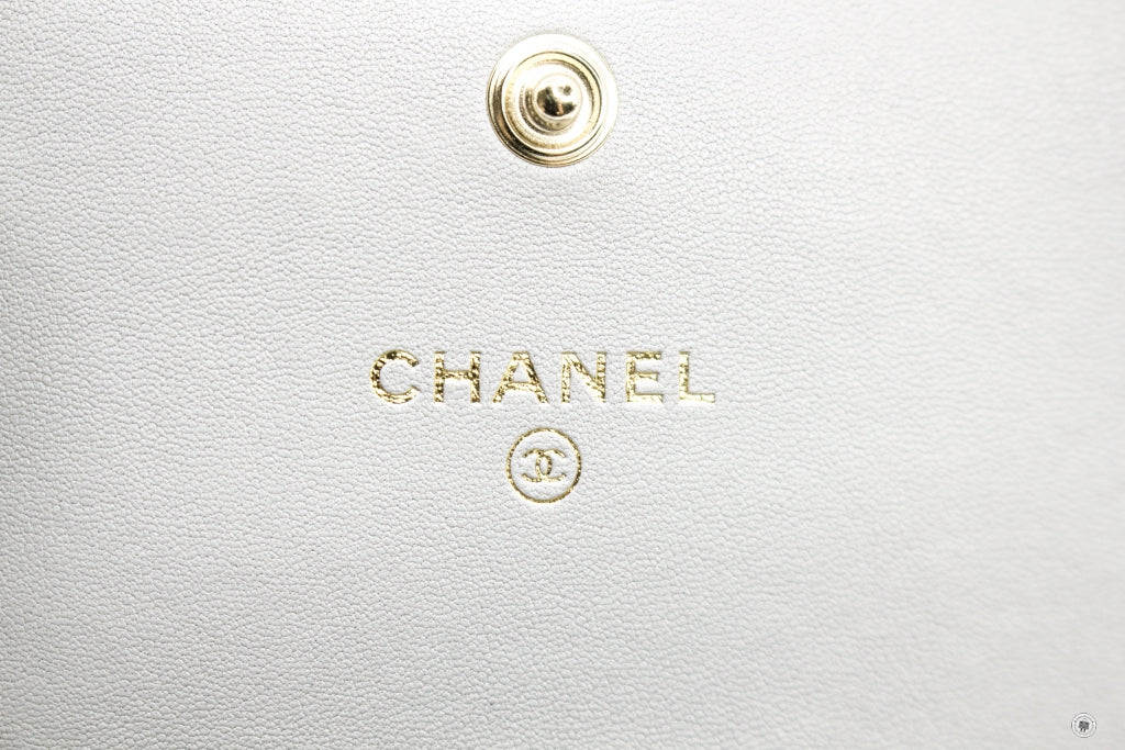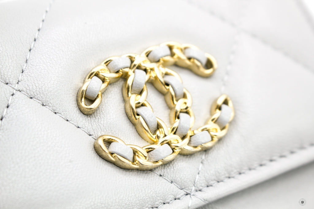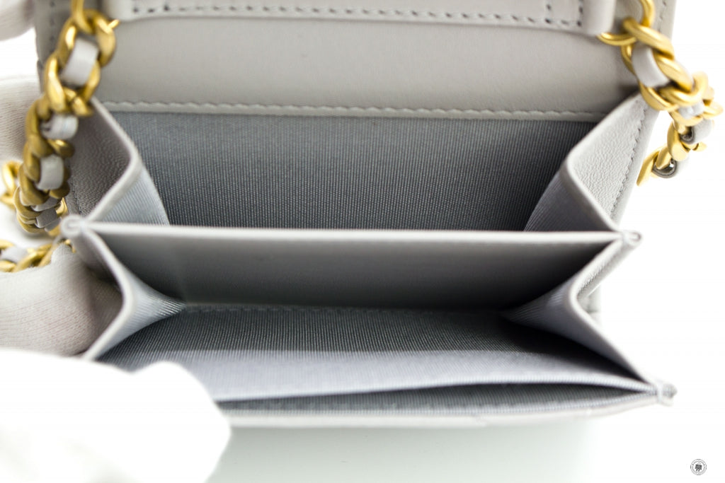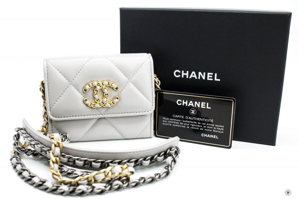 Chanel AP1787B04852 19 Flap Coin Purse With Two Tones Gold And Gunmeta Light Grey / NC634 Lambskin Short Wallet Gbhw