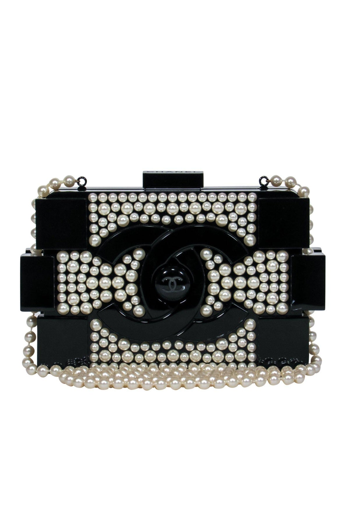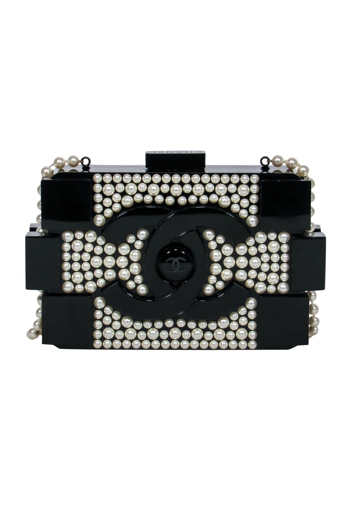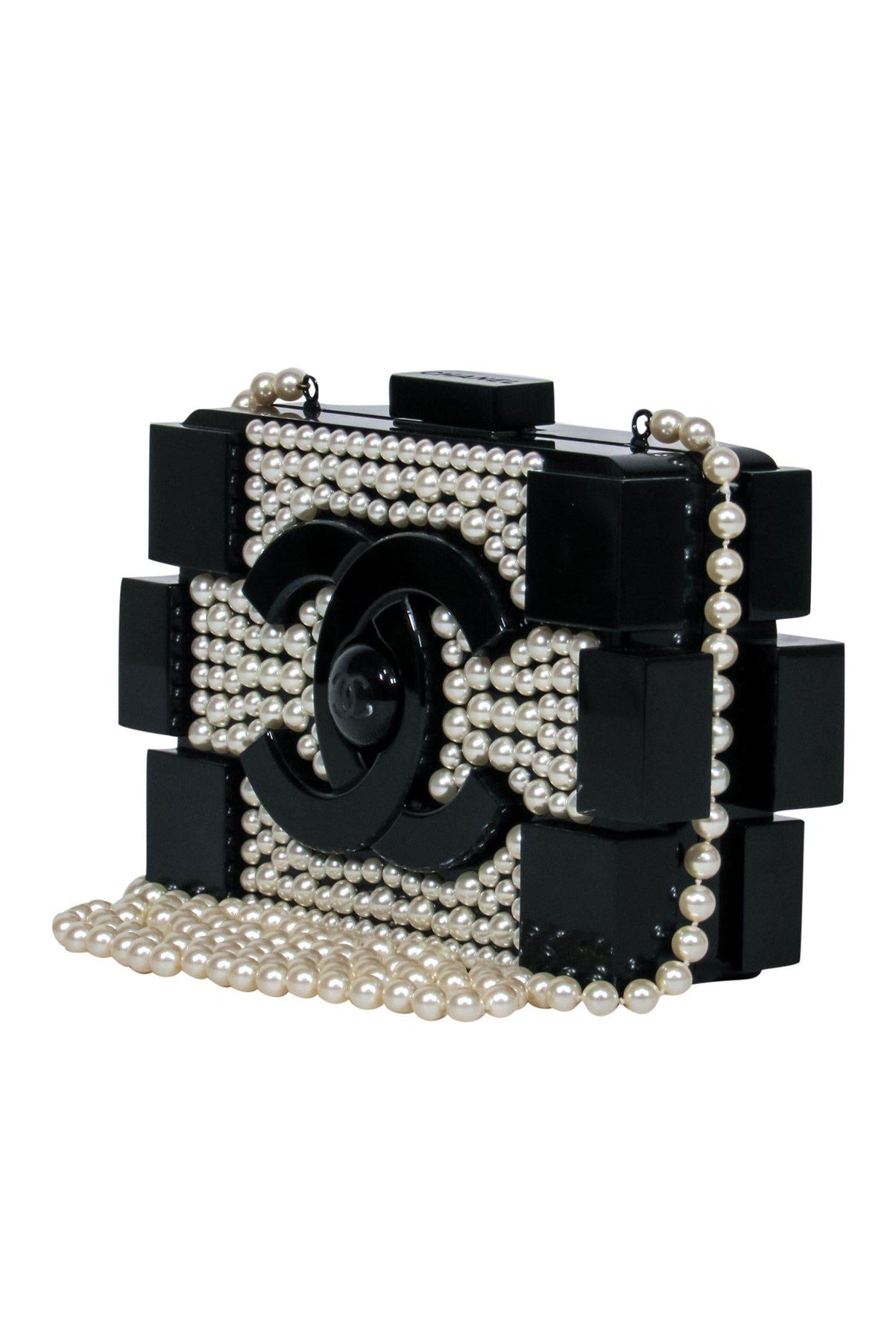 Top Quality Chanel - Black Lucite Structured Lego "Minaudiere" Crossbody w/ Pearl Embellishments