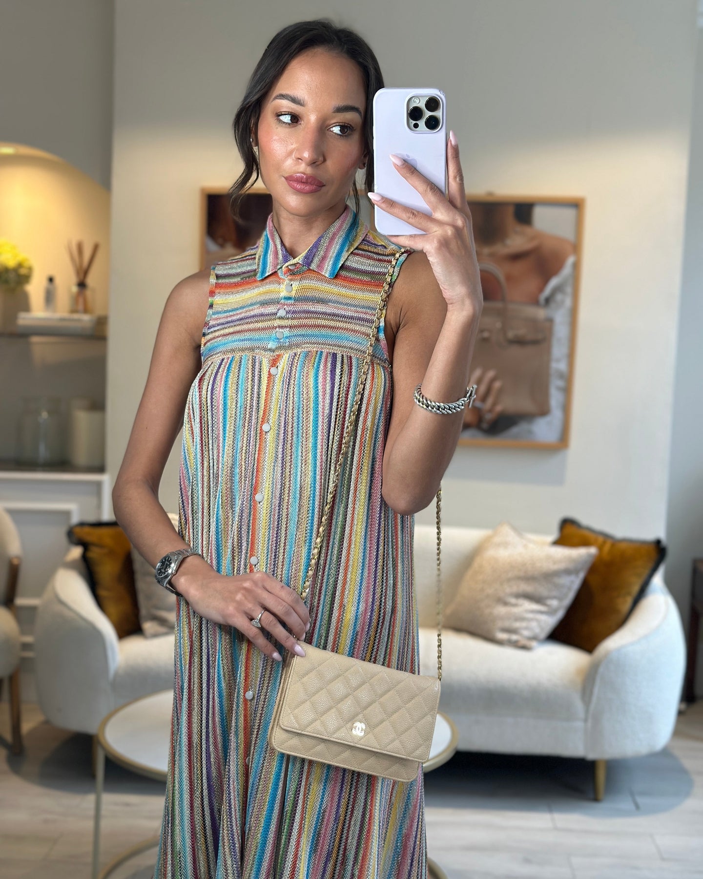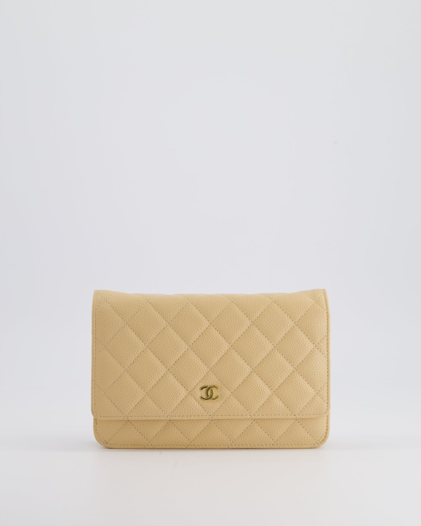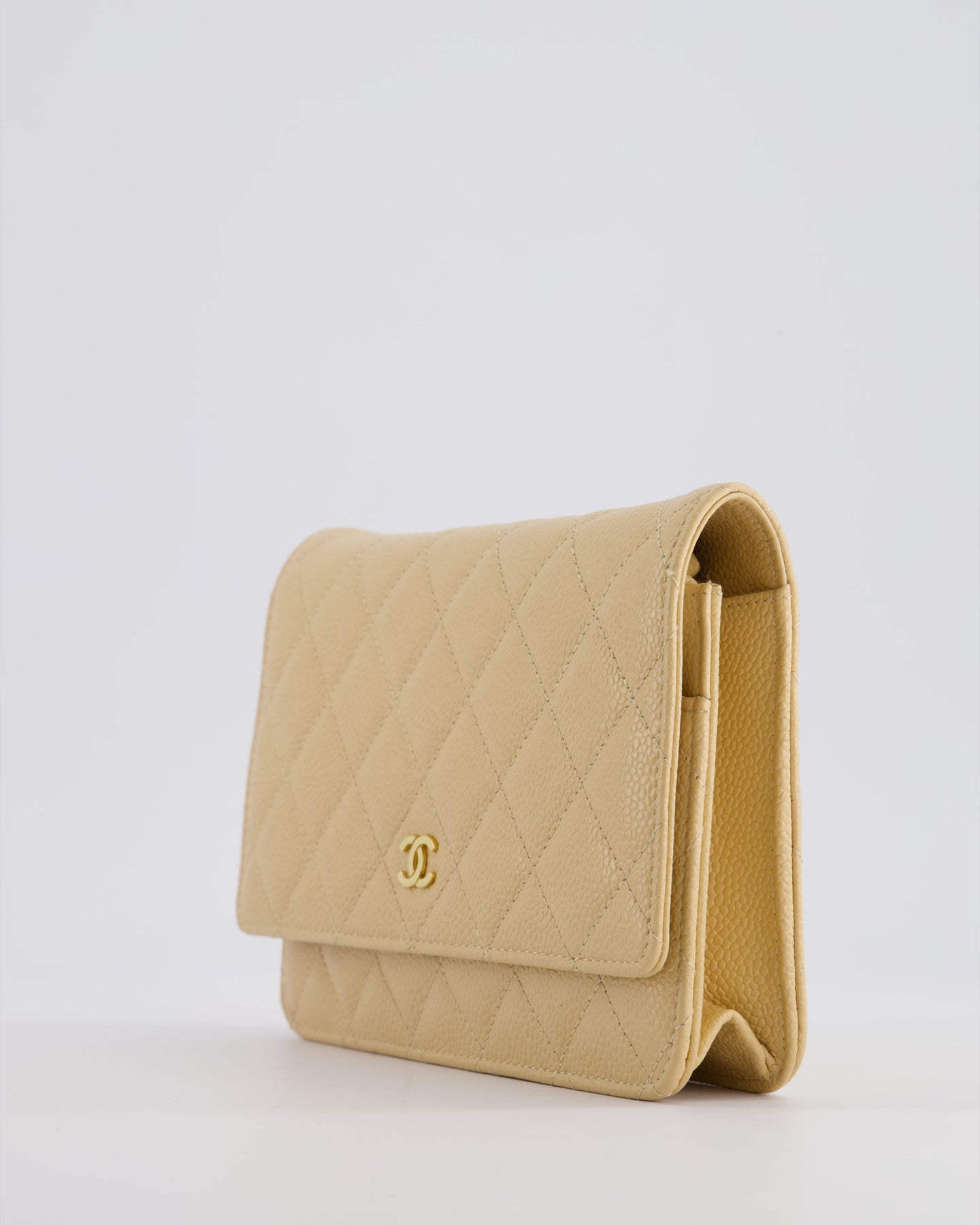 Chanel Beige Wallet on Chain Bag in Caviar Leather with Gold Hardware