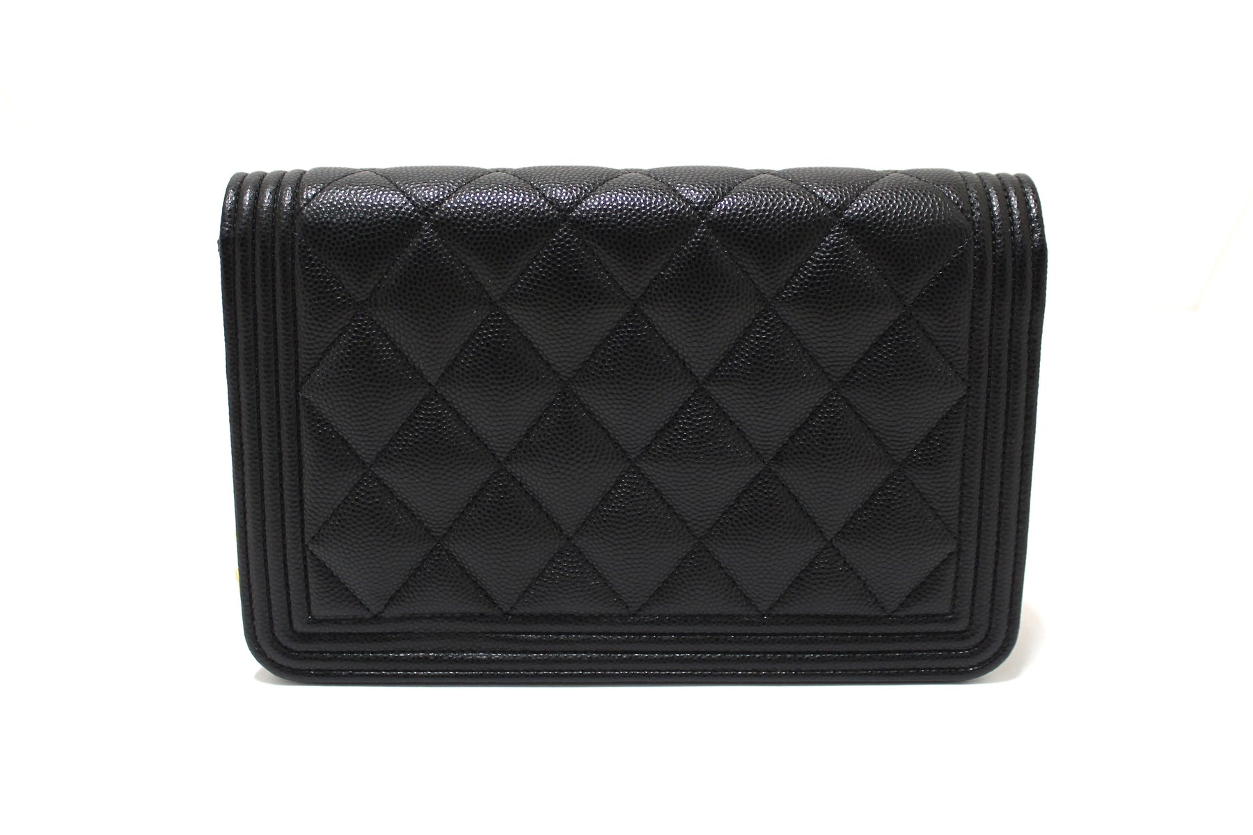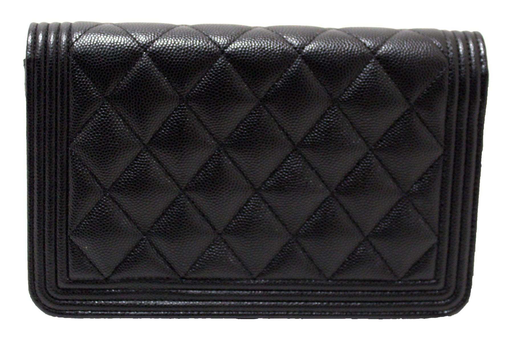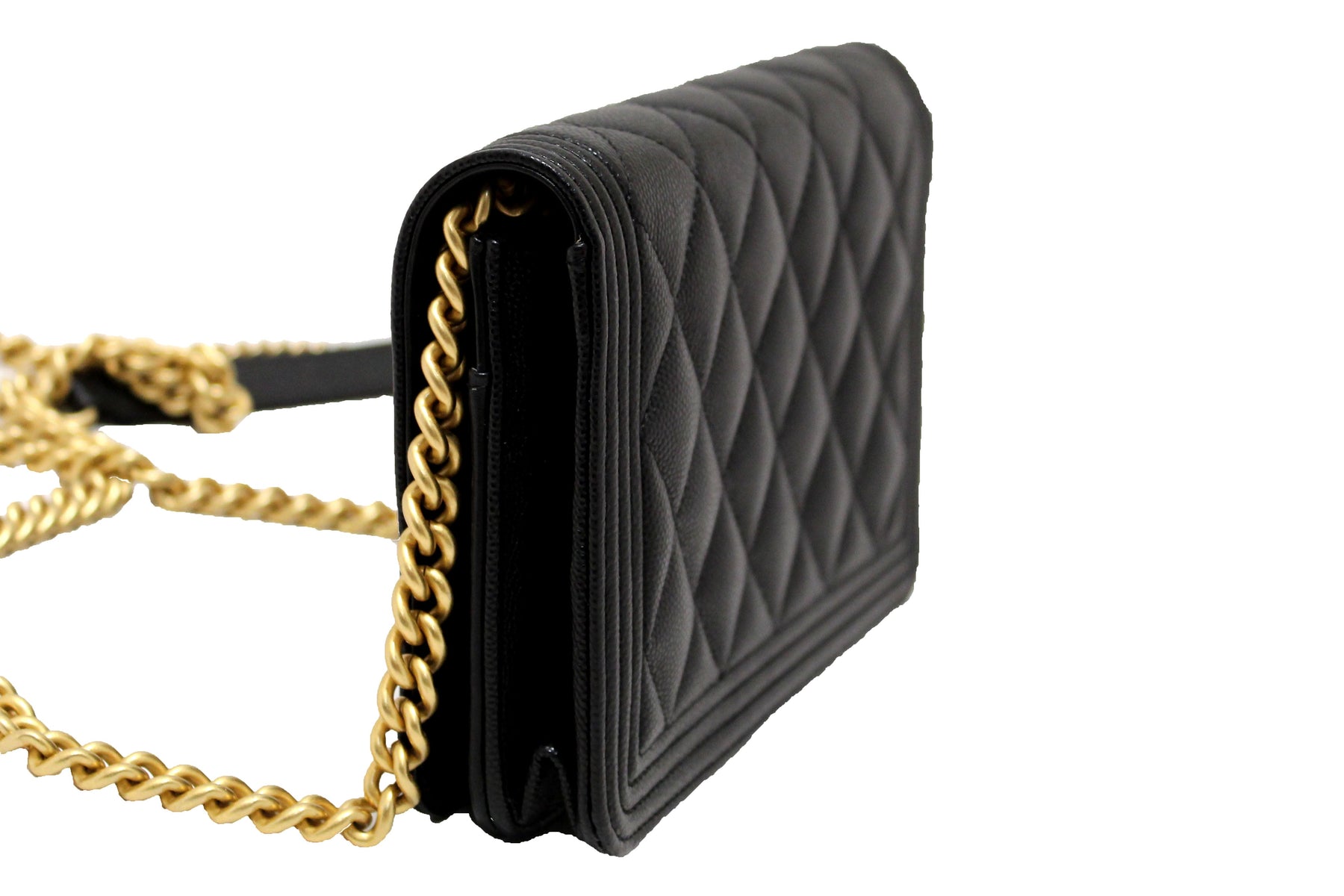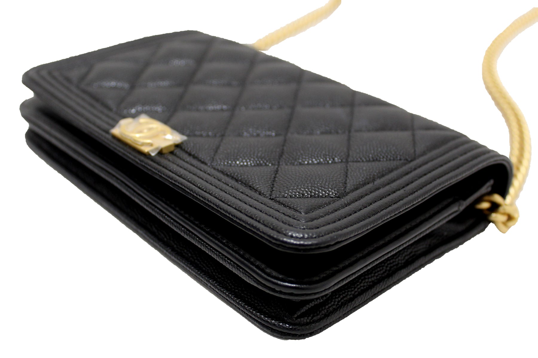 Chanel Black Caviar Quilted Leather Quilted Boy Wallet On Chain WOC