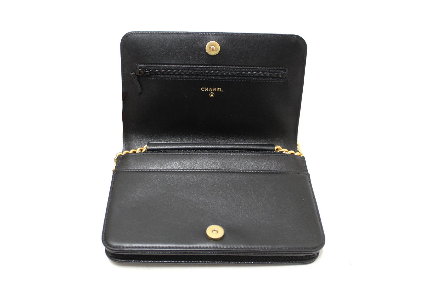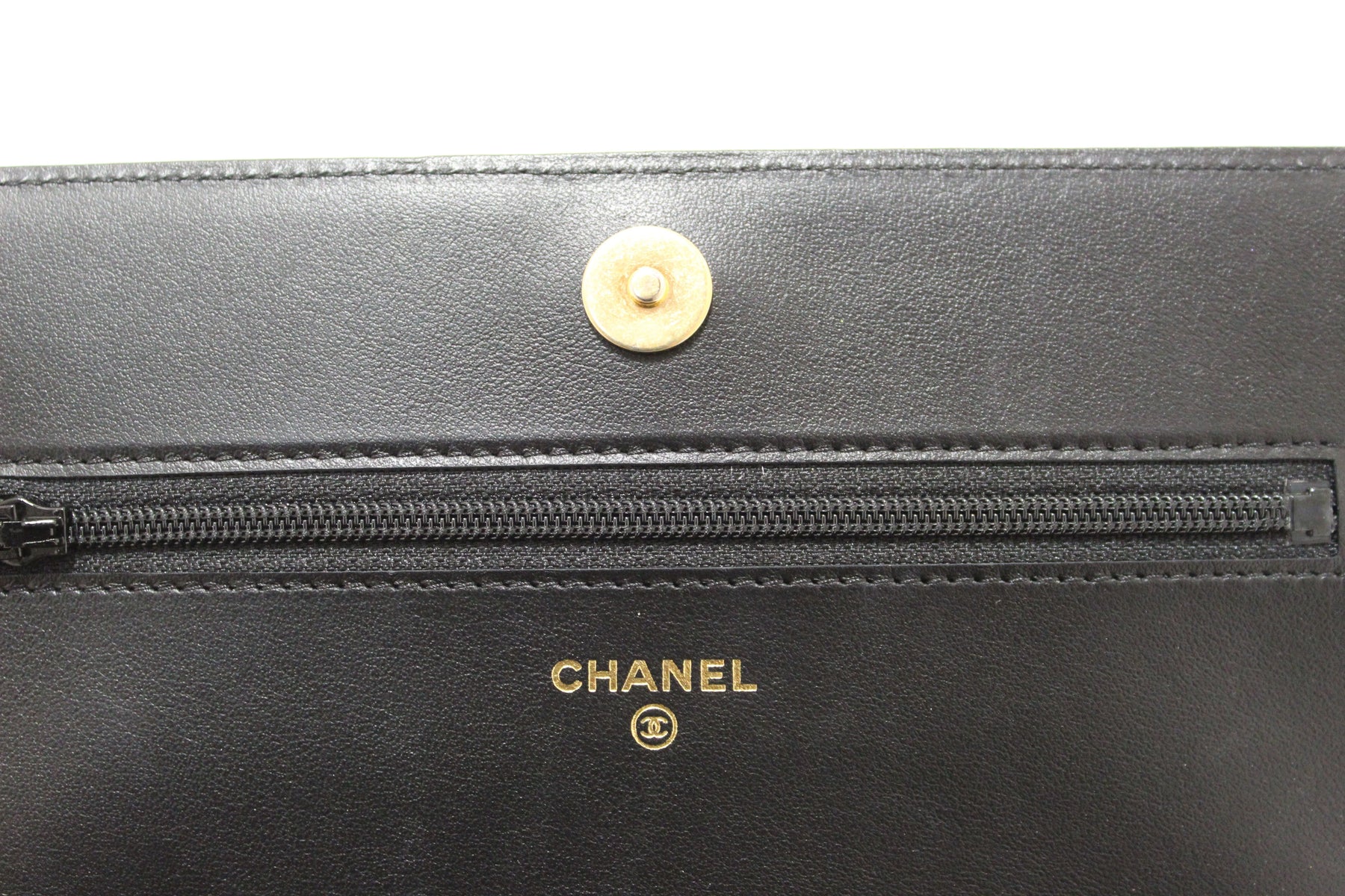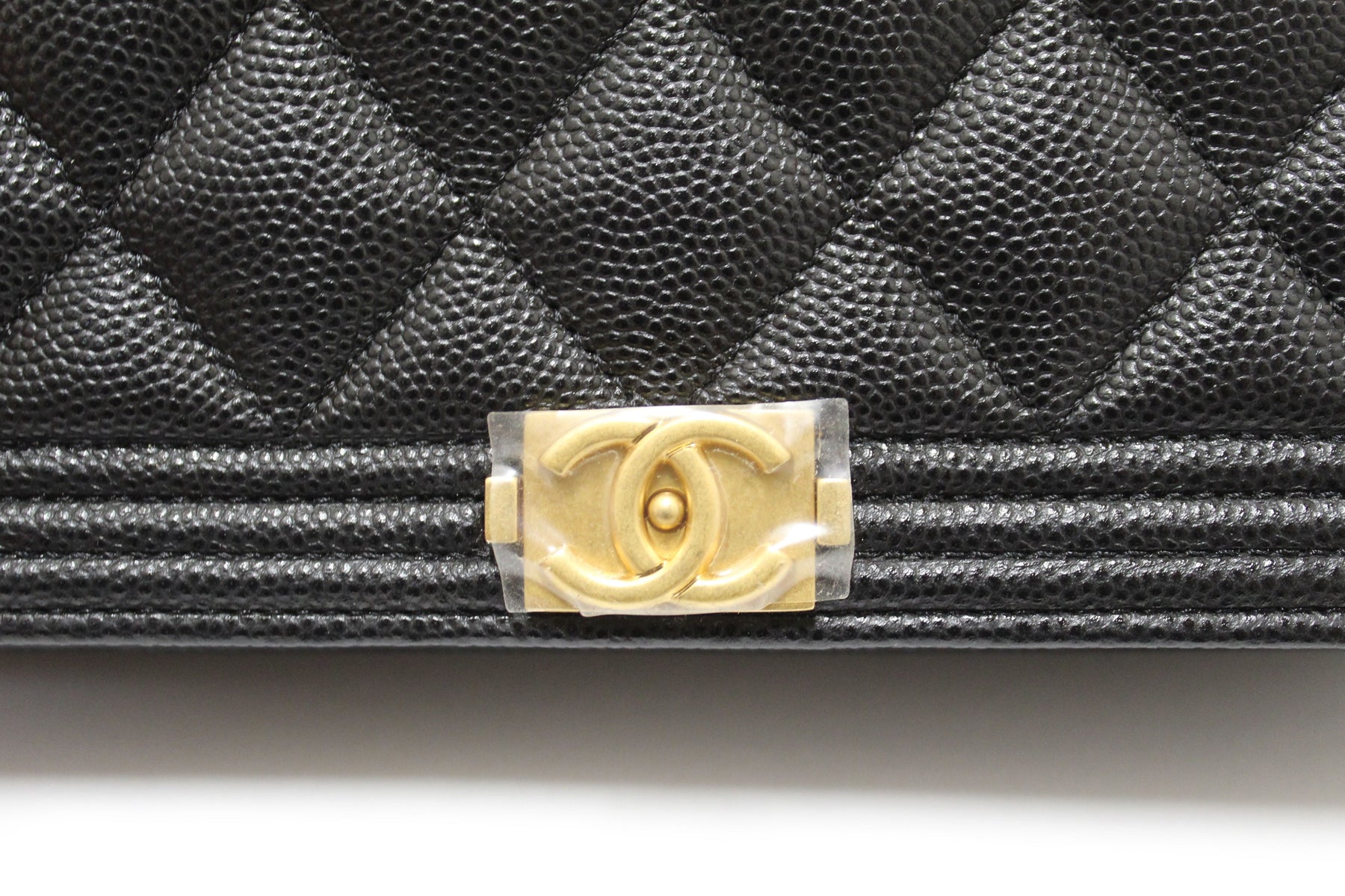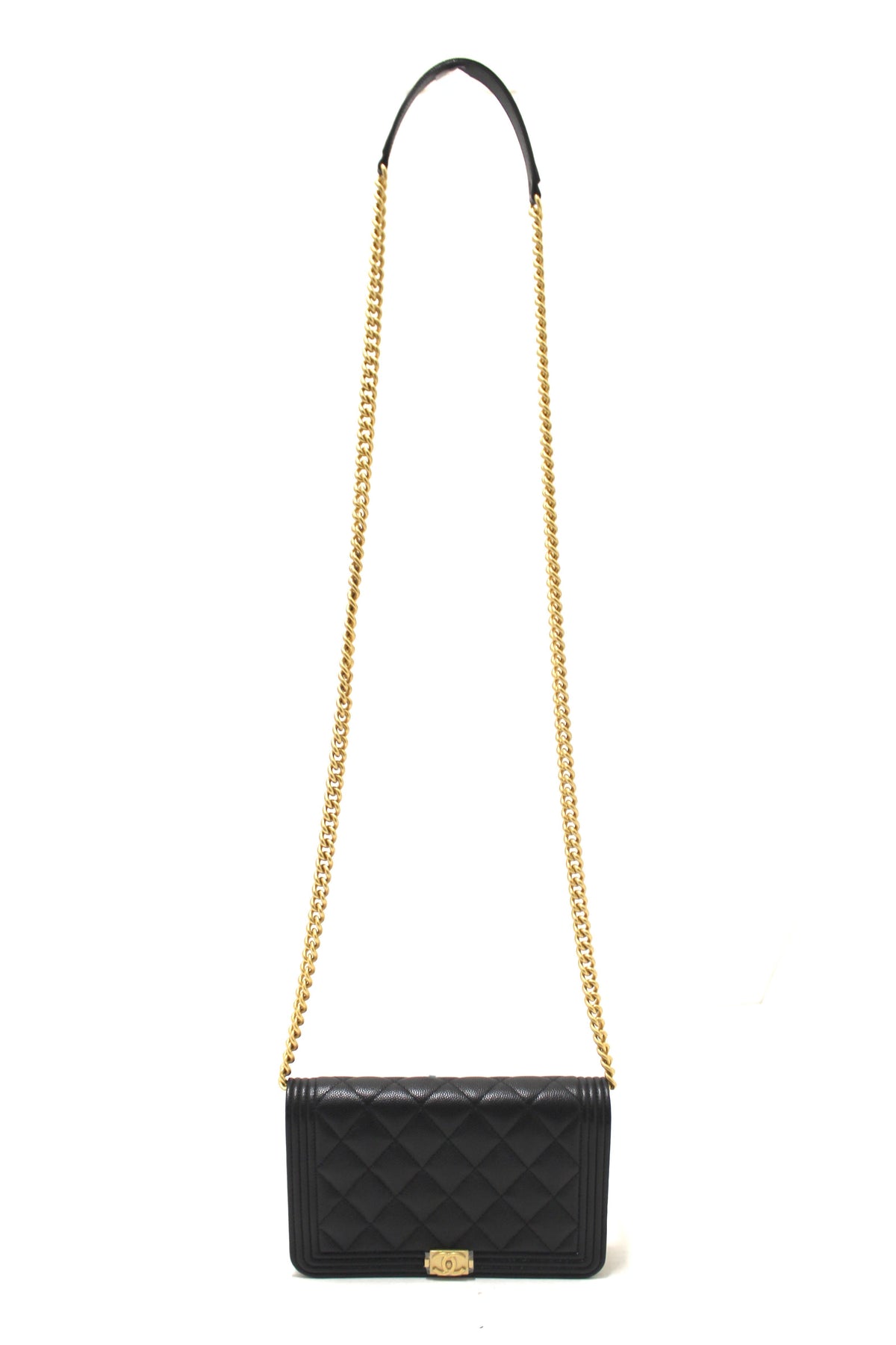 Chanel Black Caviar Quilted Leather Quilted Boy Wallet On Chain WOC