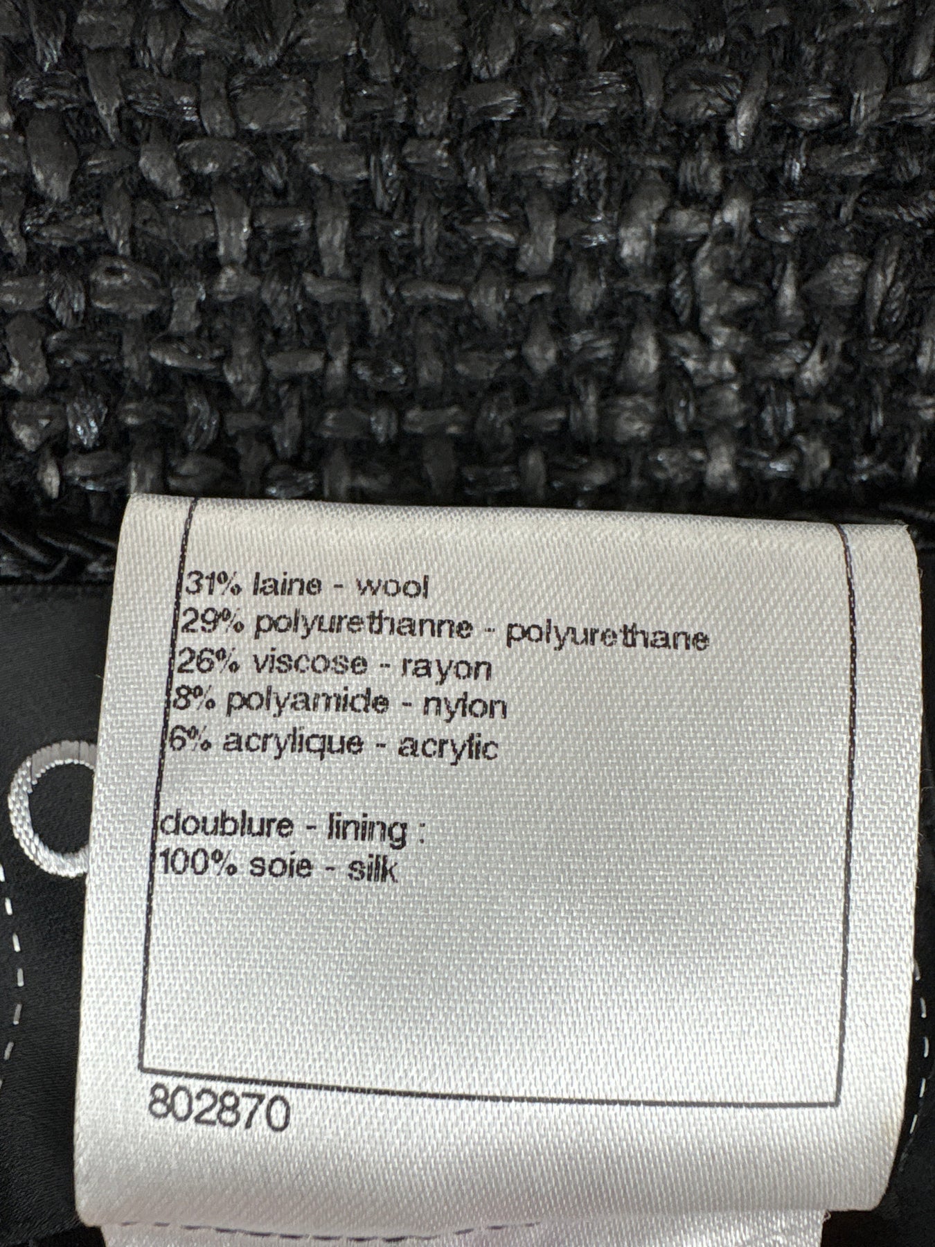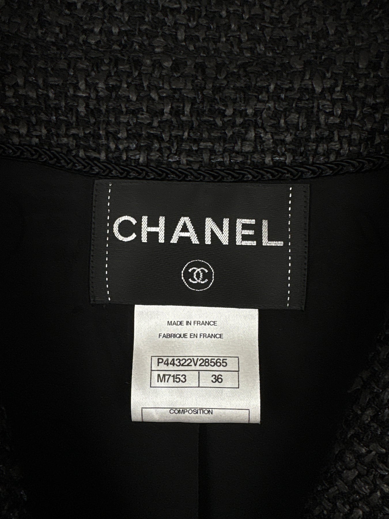 Top Quality Chanel Black Coated Tweed Curved Hem Jacket with Silver CC Button Detail FR 36 (UK 8)