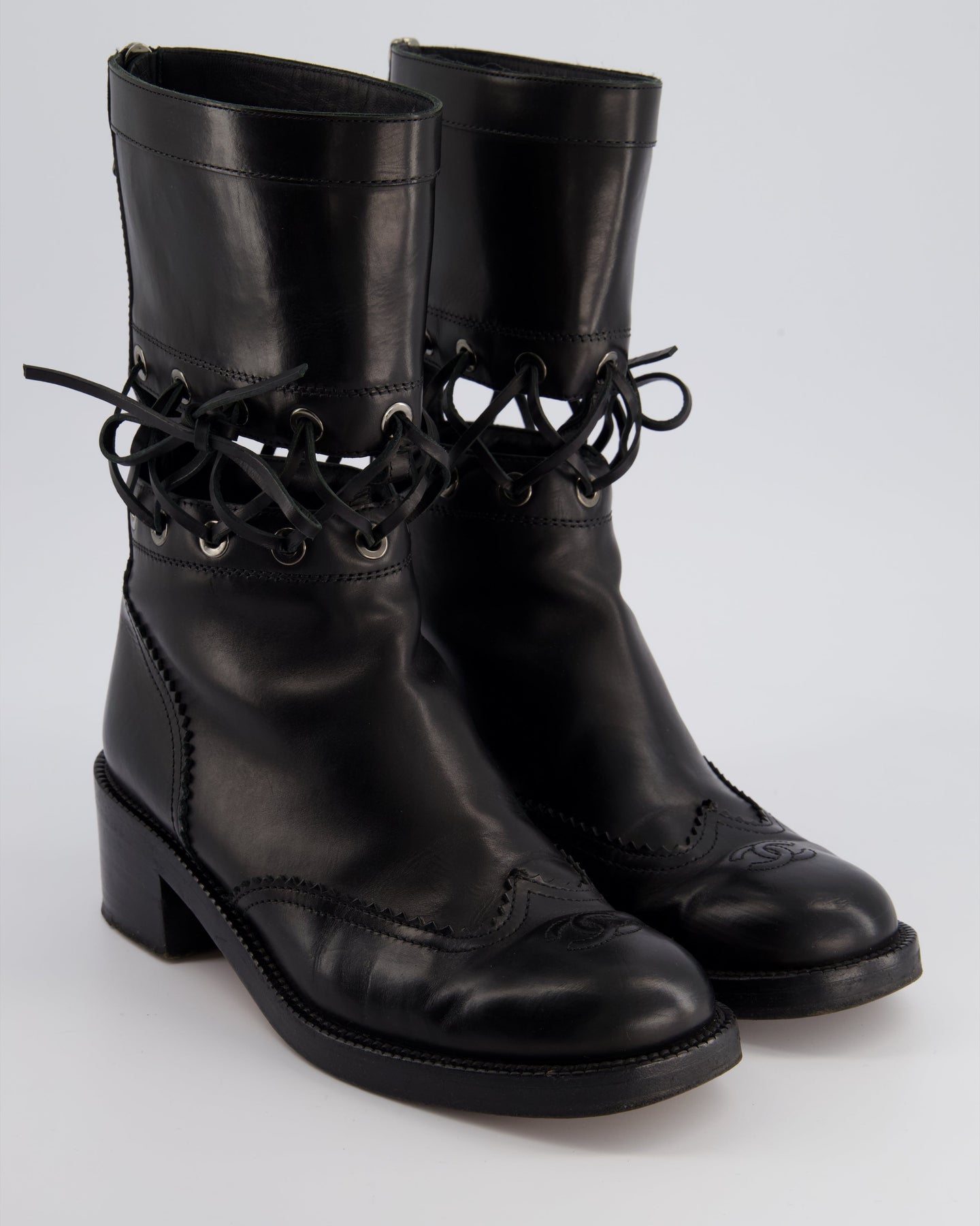 *RUNWAY* Chanel First Corset Lace Up Insert Detail CC Logo Boots Size EU 40.5