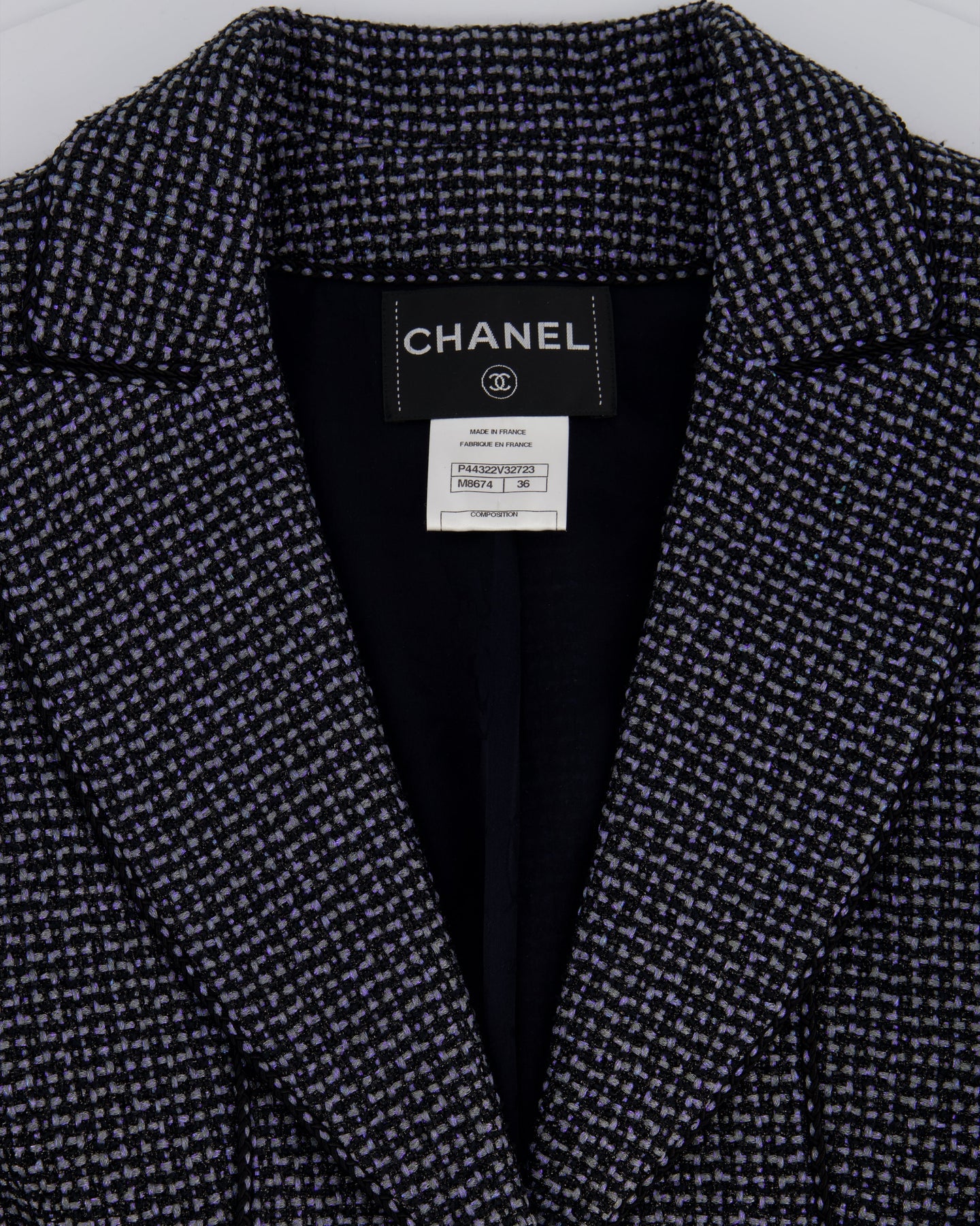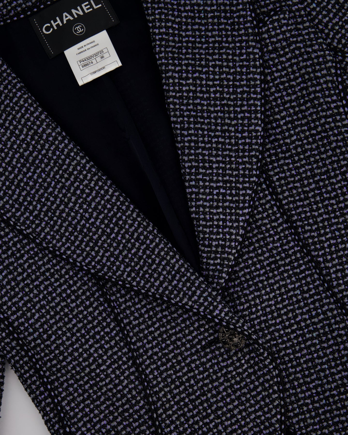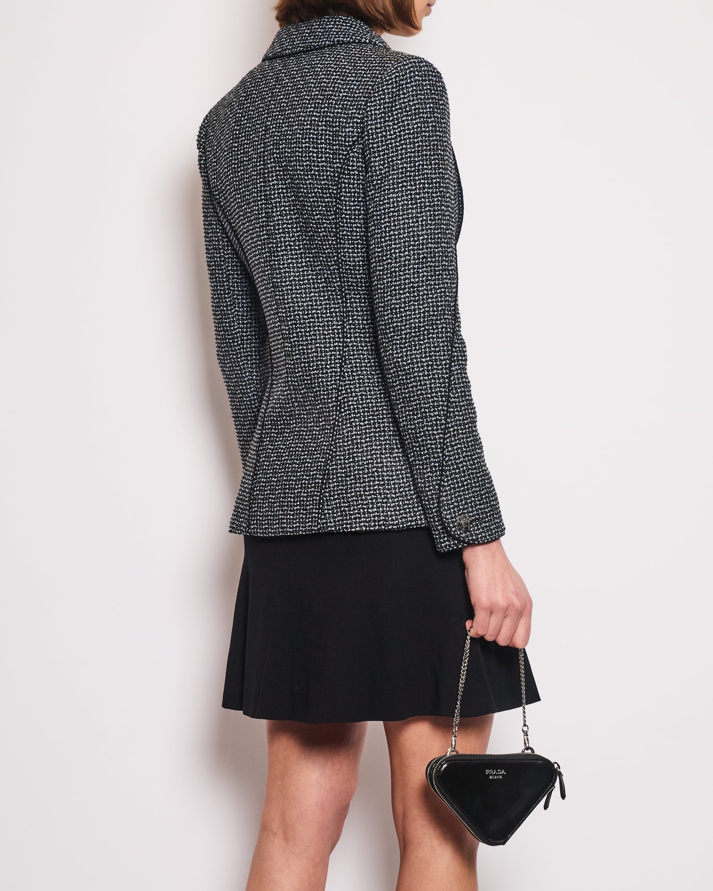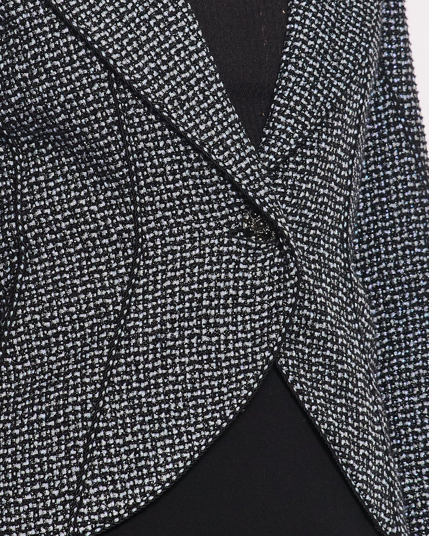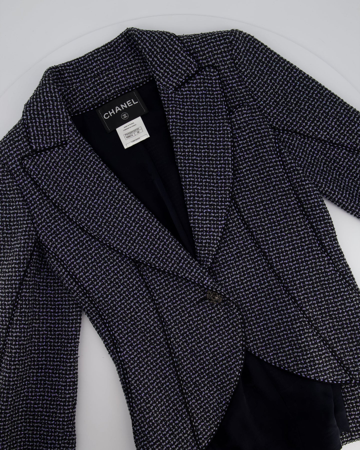 Chanel Black & Grey Metallic Tweed Curved Hem Jacket with Ruthenium CC Button Detail FR 36 (UK 8)