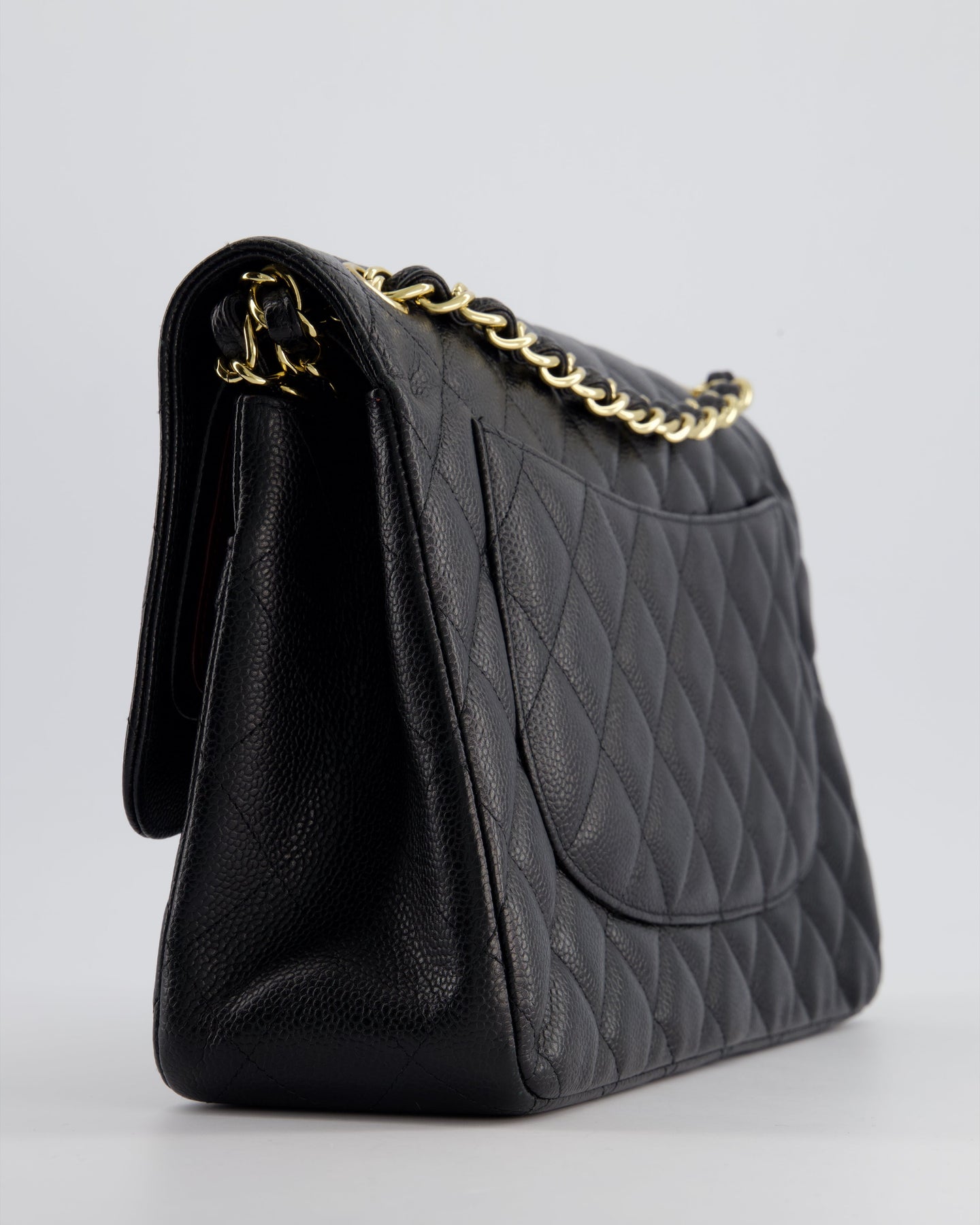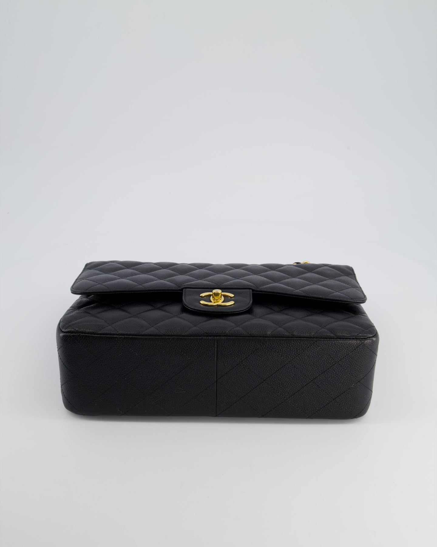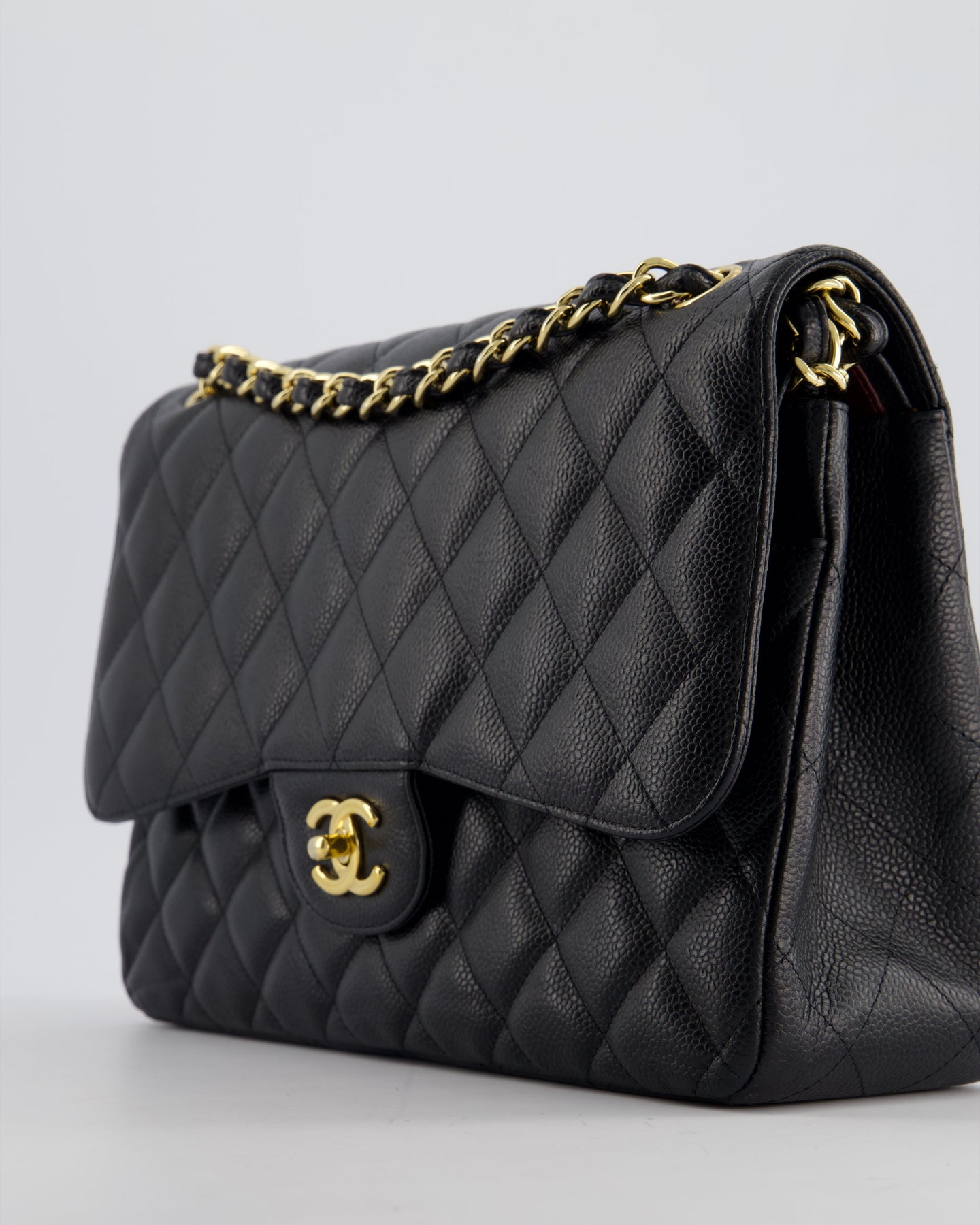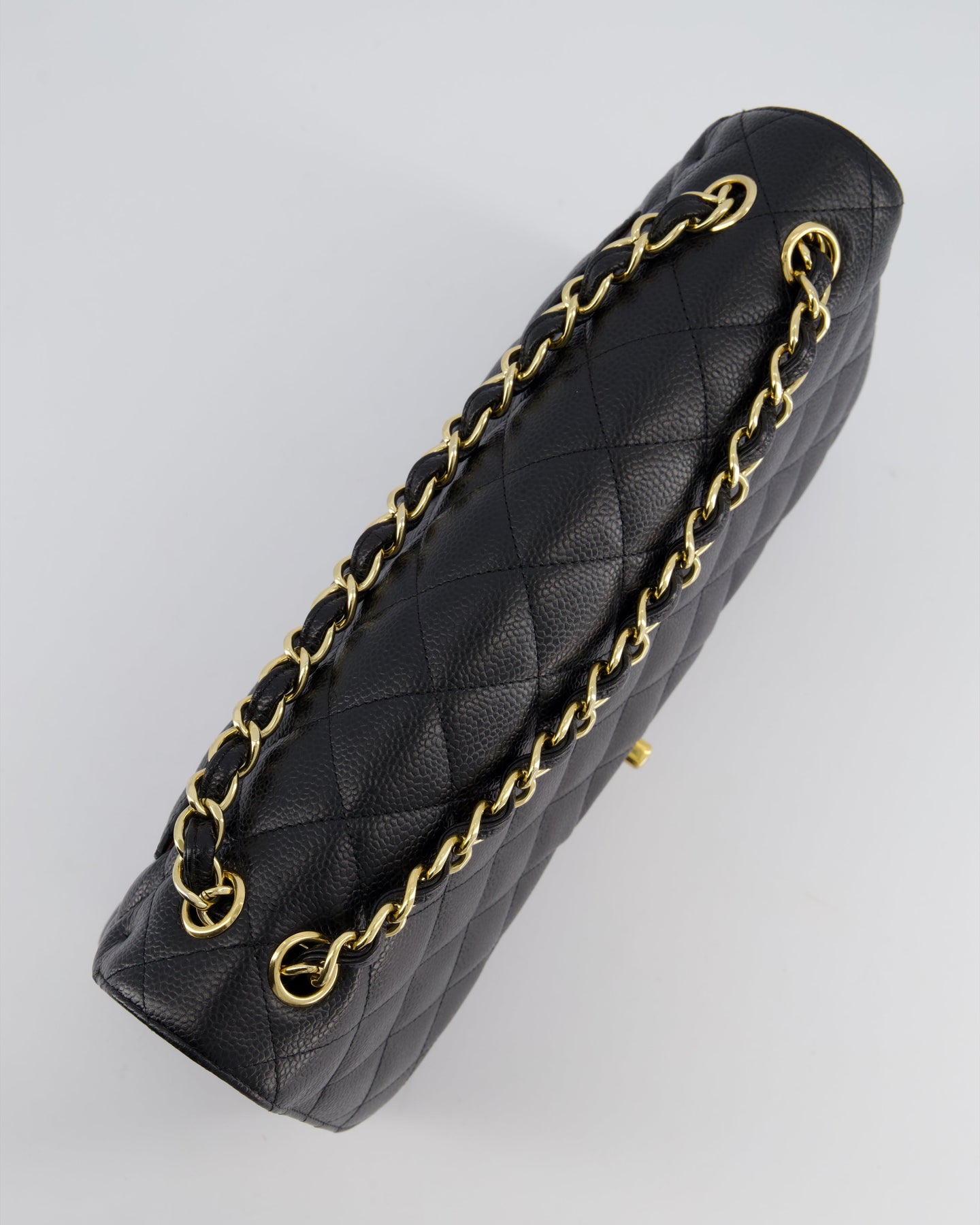 Chanel Black Jumbo Classic Double Flap Bag in Caviar Leather with Gold Hardware