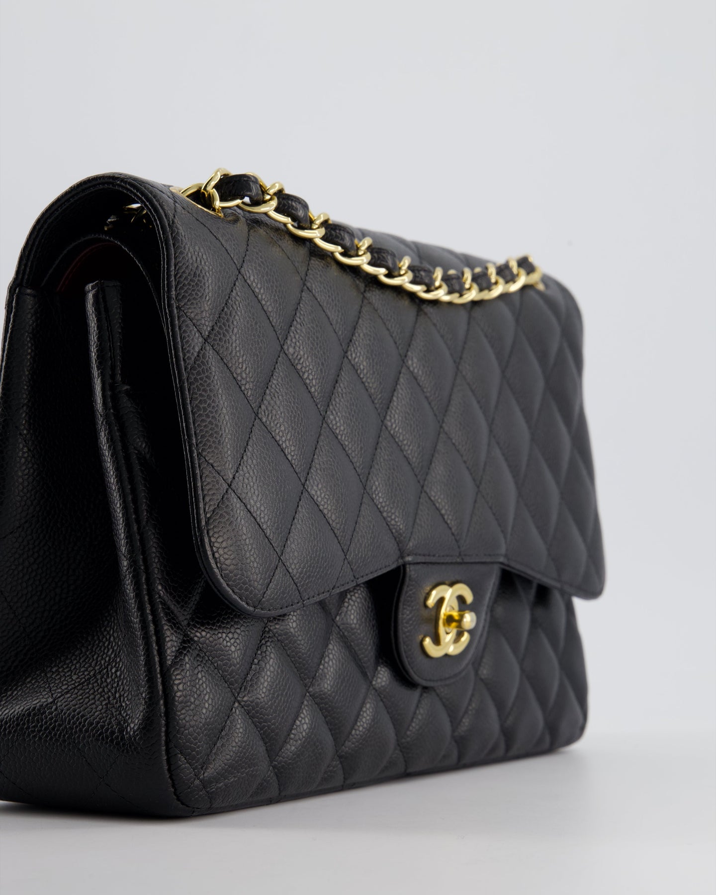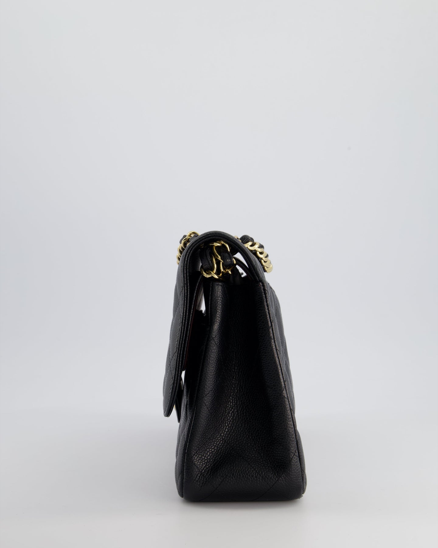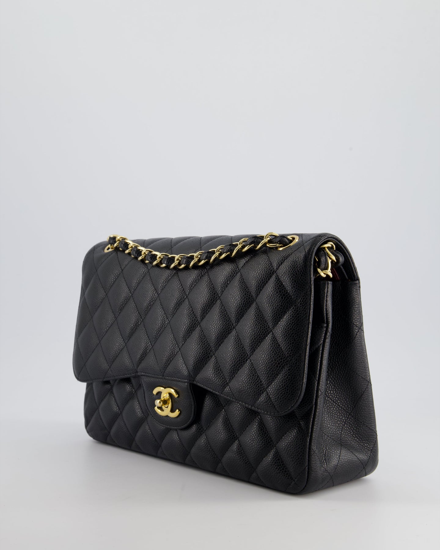 Chanel Black Jumbo Classic Double Flap Bag in Caviar Leather with Gold Hardware
