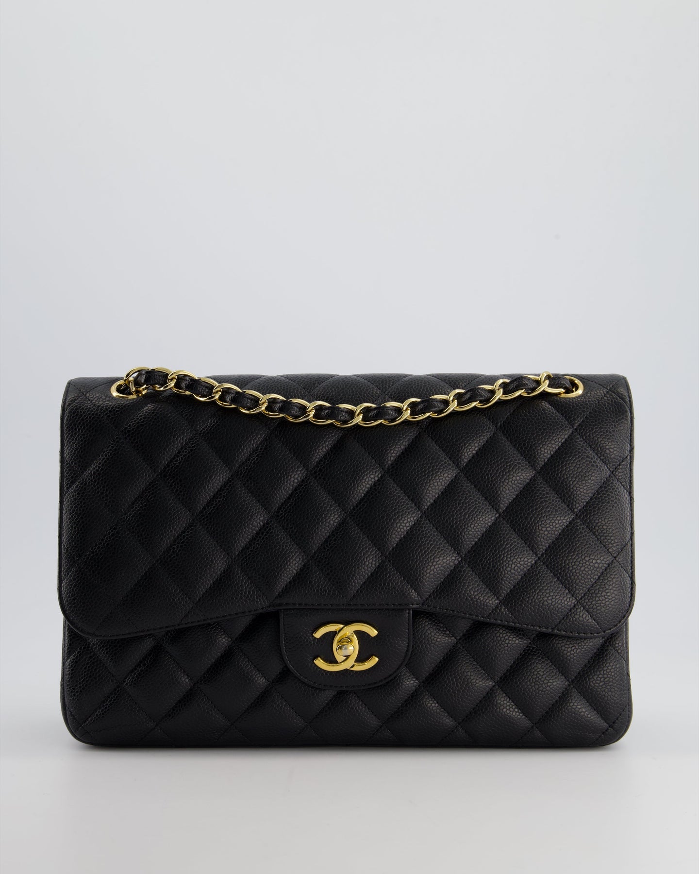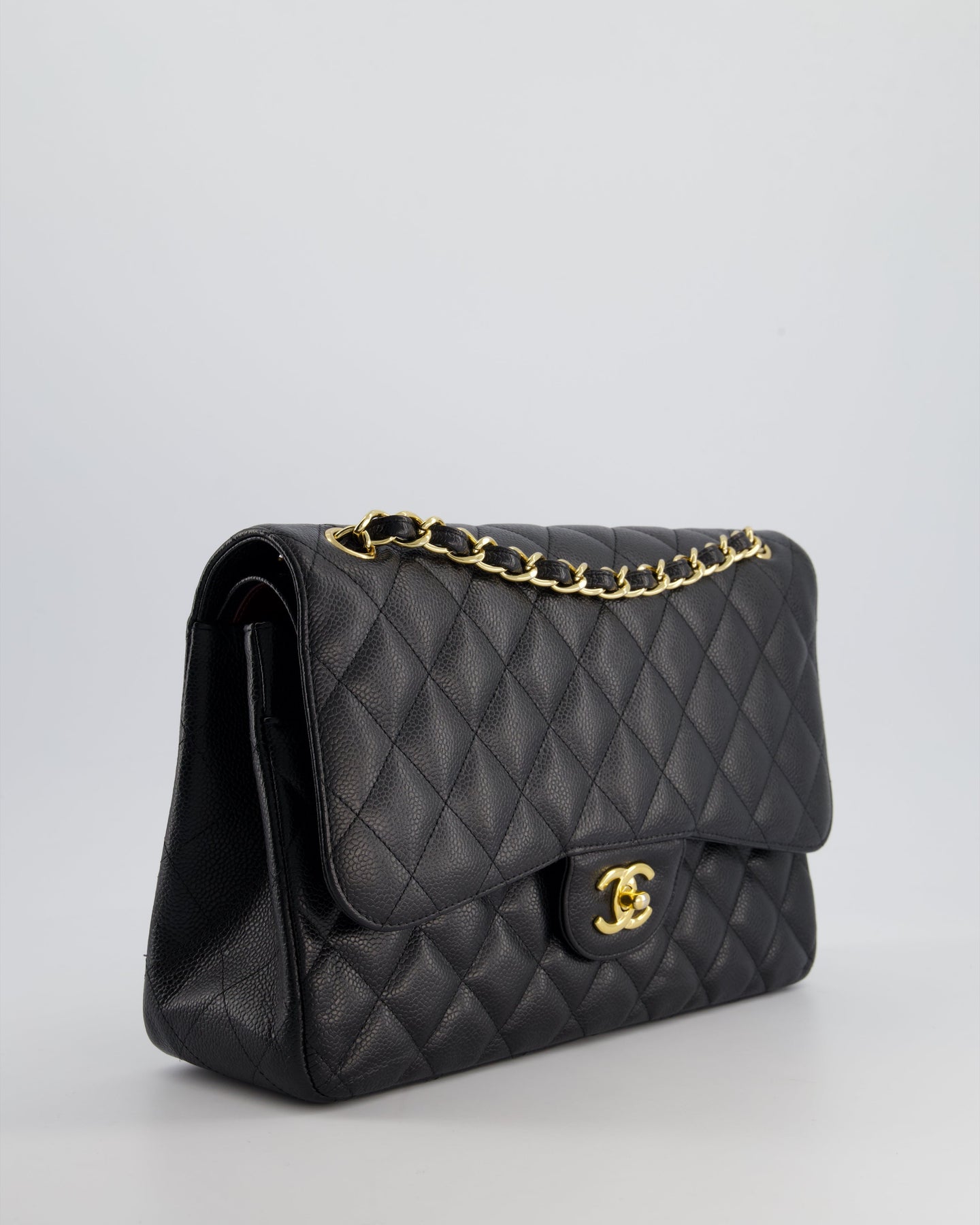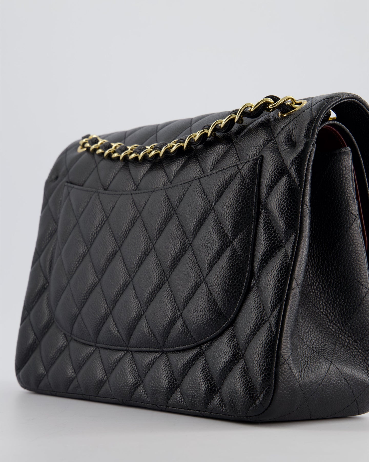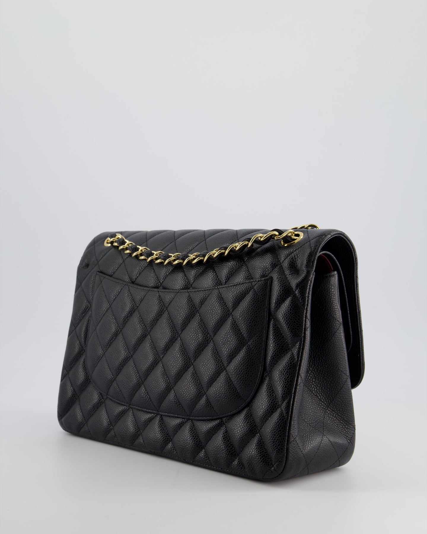 Chanel Black Jumbo Classic Double Flap Bag in Caviar Leather with Gold Hardware