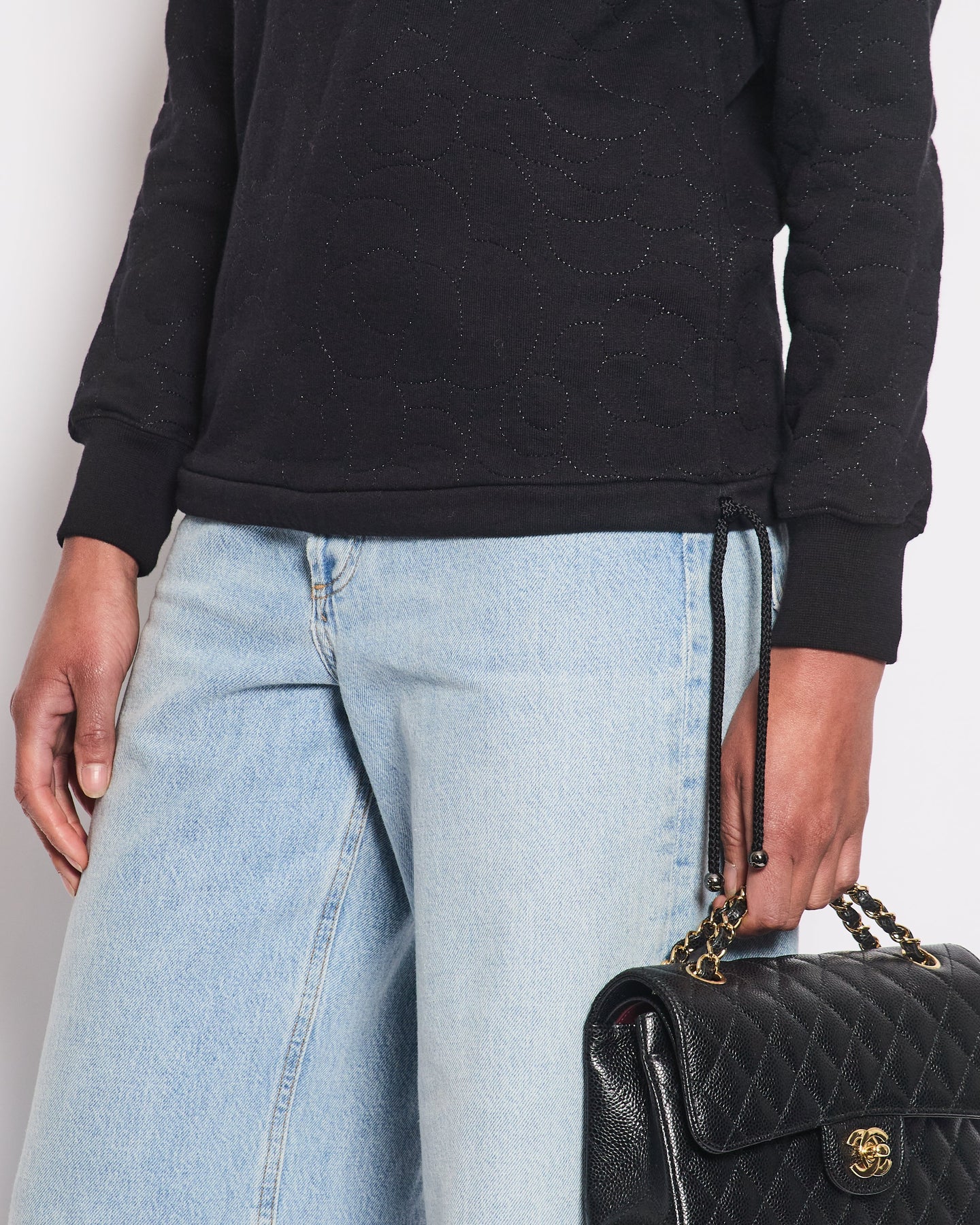 Chanel Black Jumper with Camelia Detail and Silver CC Buttons Size FR 34 (UK 6)
