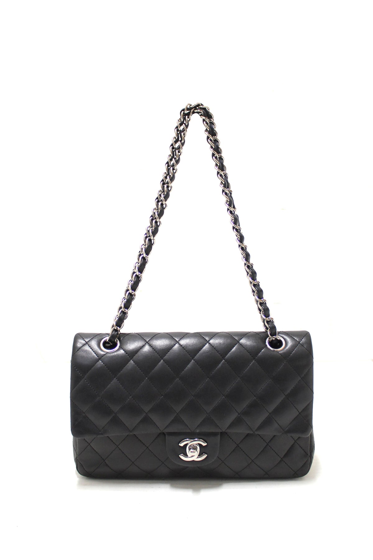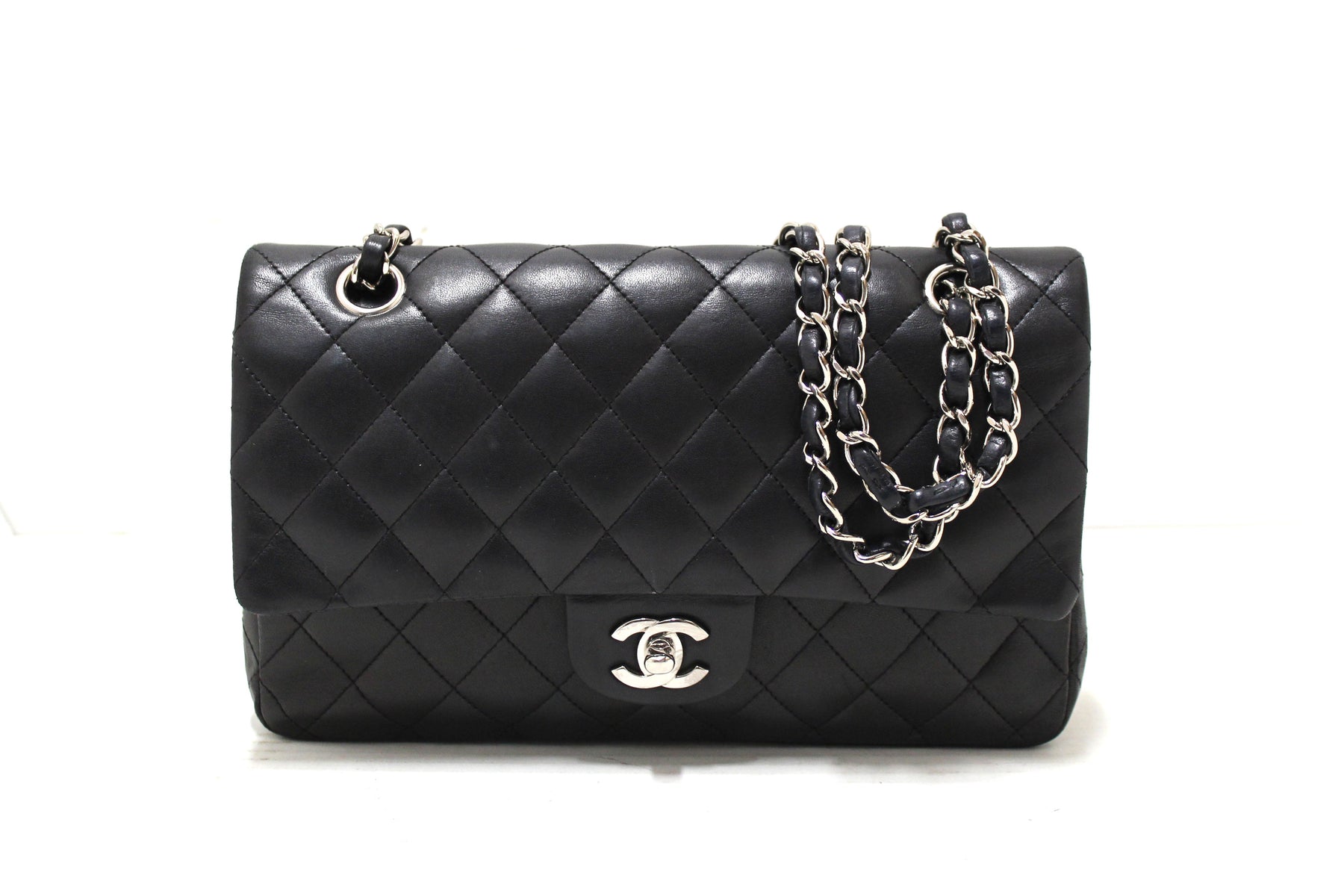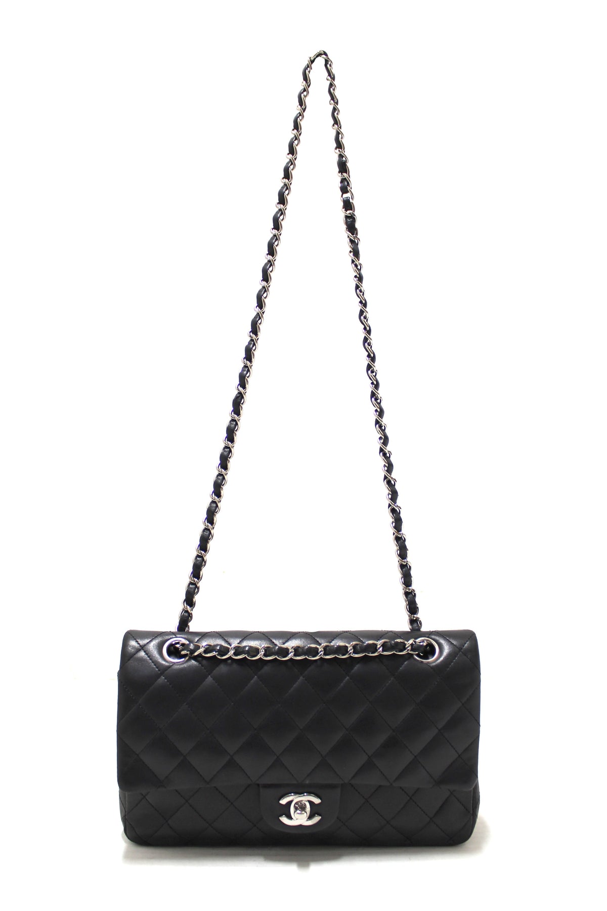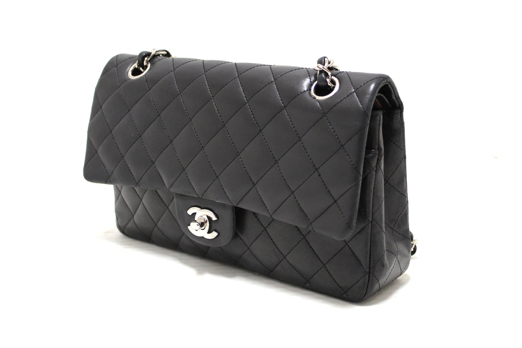 Chanel Black Quilted Lambskin Leather Classic Medium Double Flap Bag