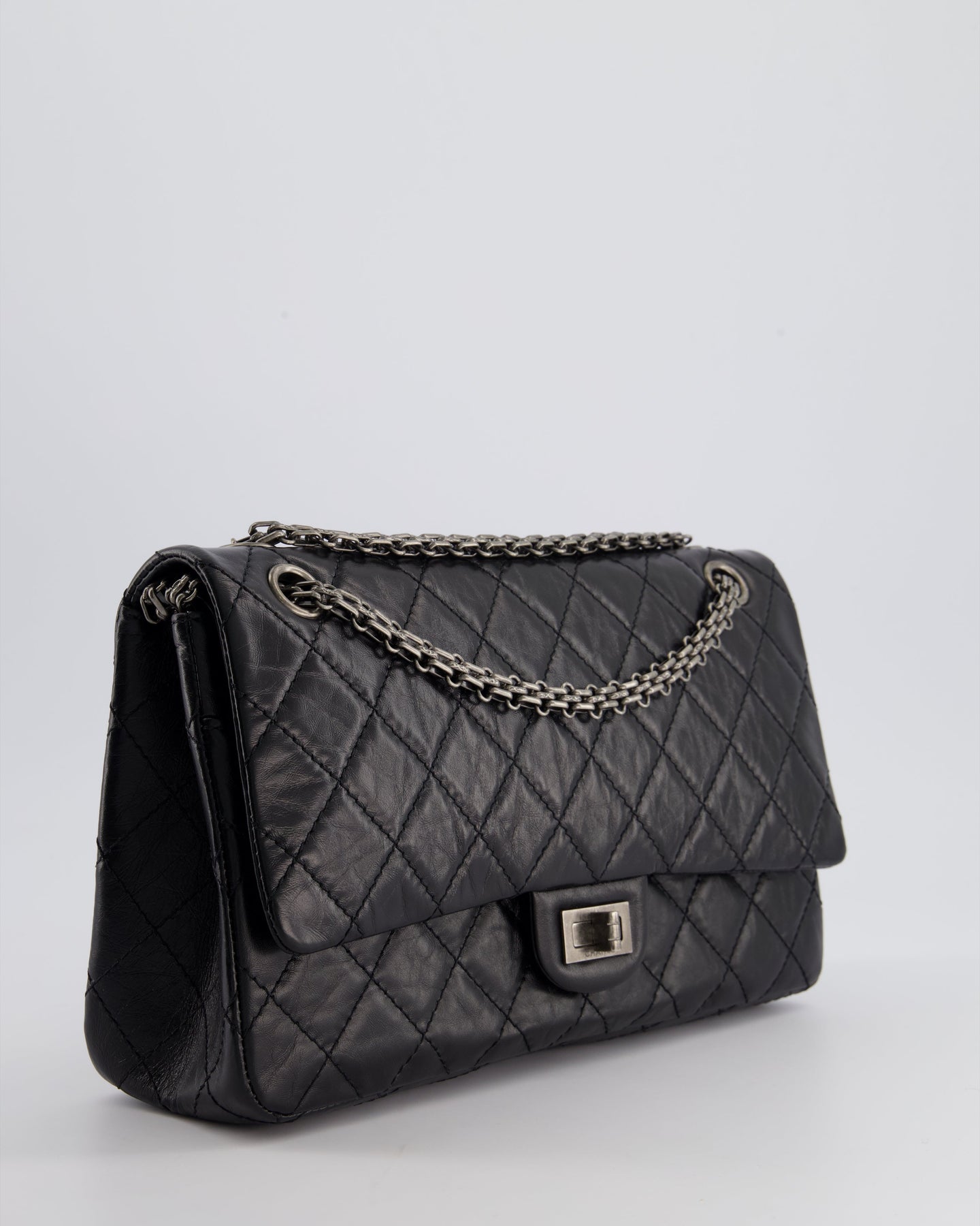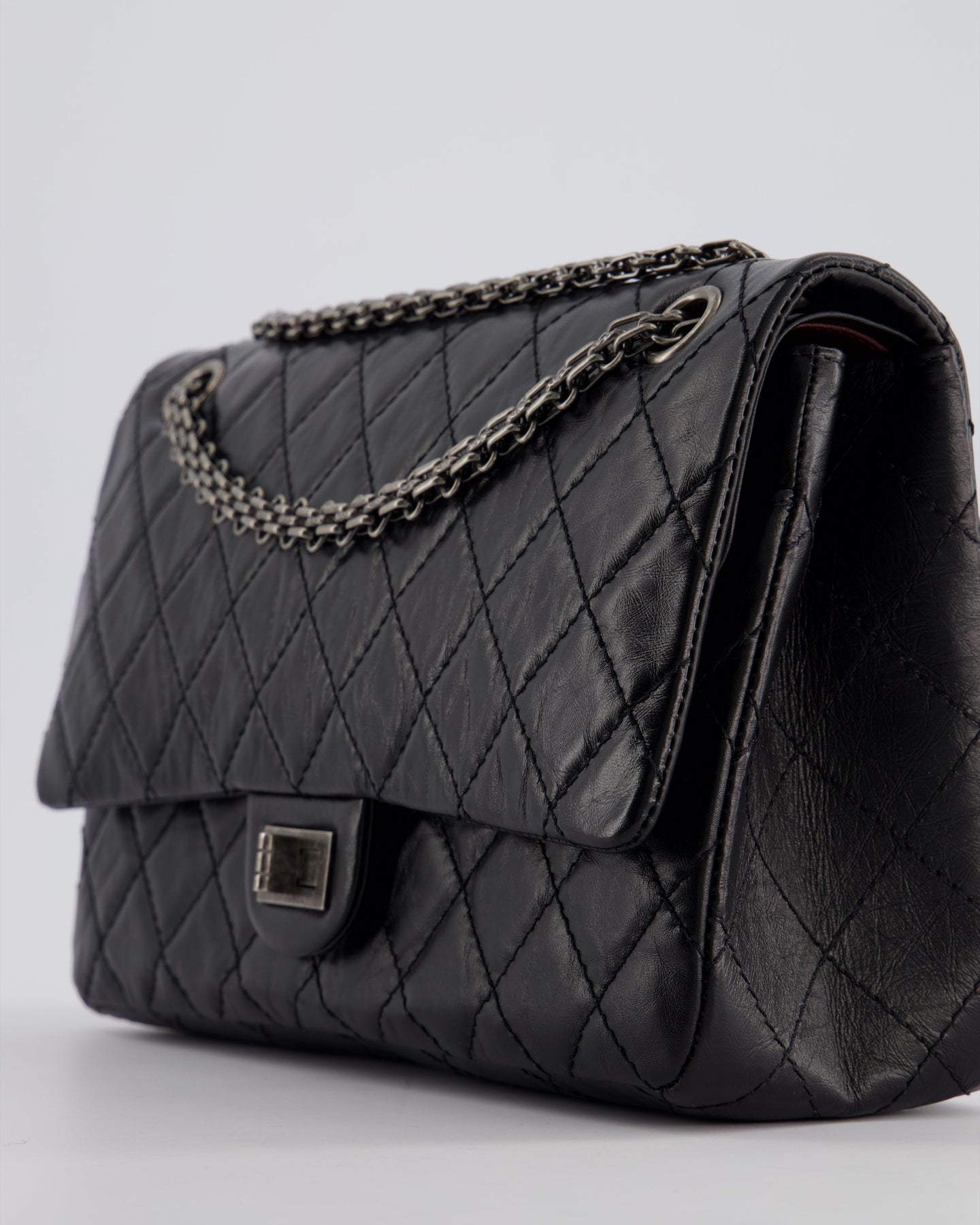Top Quality Chanel Black Medium Reissue 2.55 Double Flap Bag in Quilted Crumpled Lambskin with Ruthenium Hardware RRP £8,850