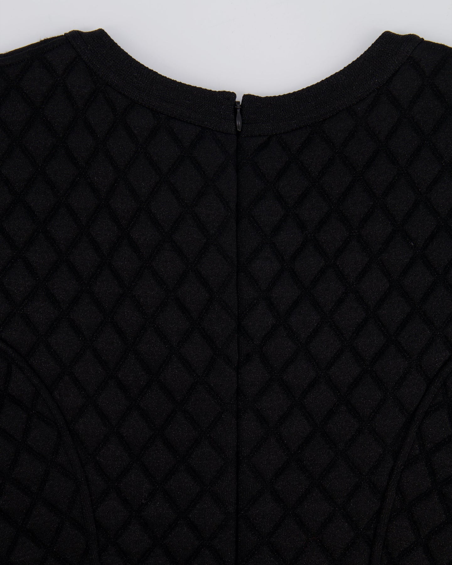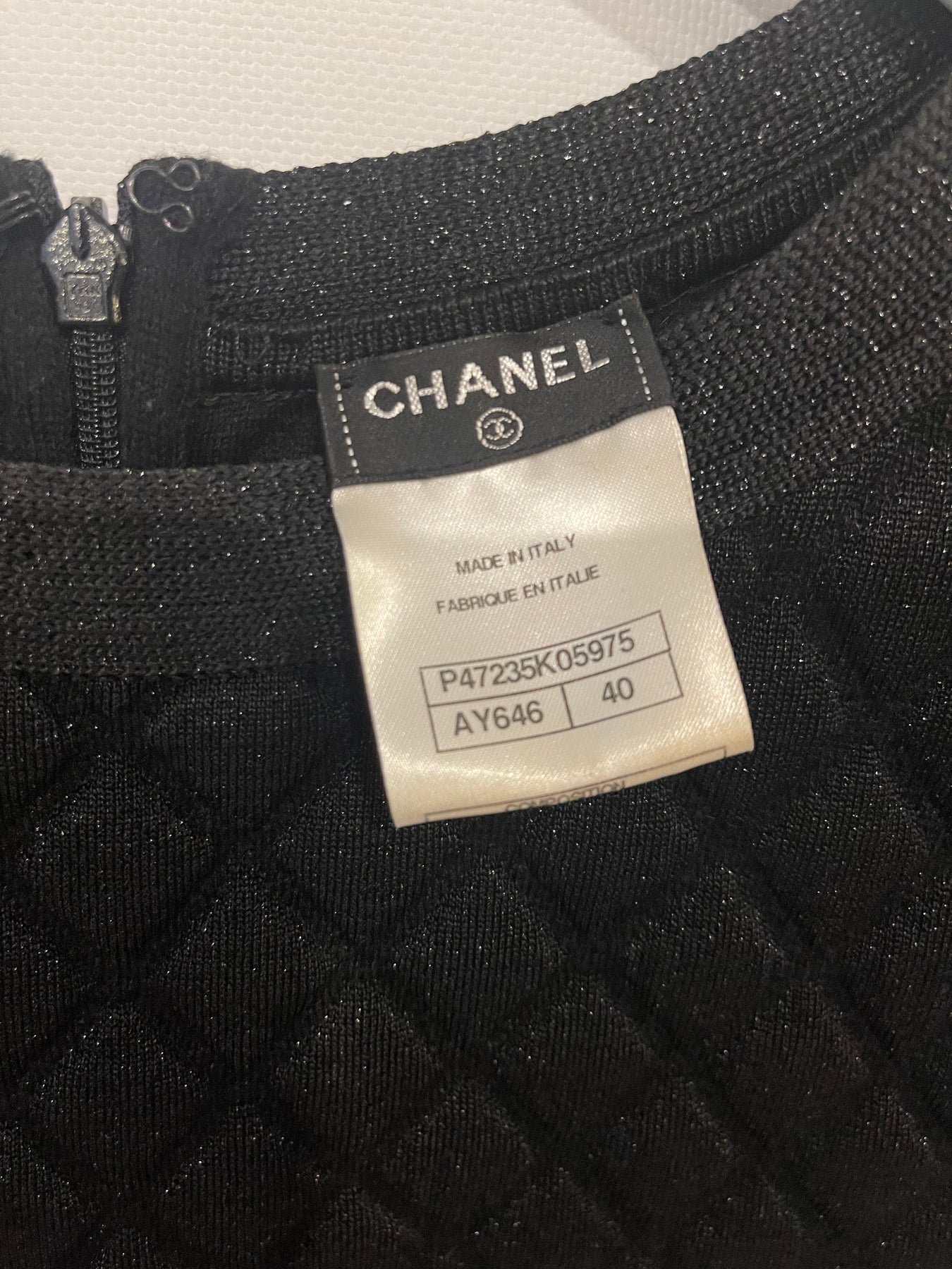 Chanel Black Padded Shimmery Short Sleeve Bodycon Mini Dress with CC Logo Detail Size FR 40 (UK 12)