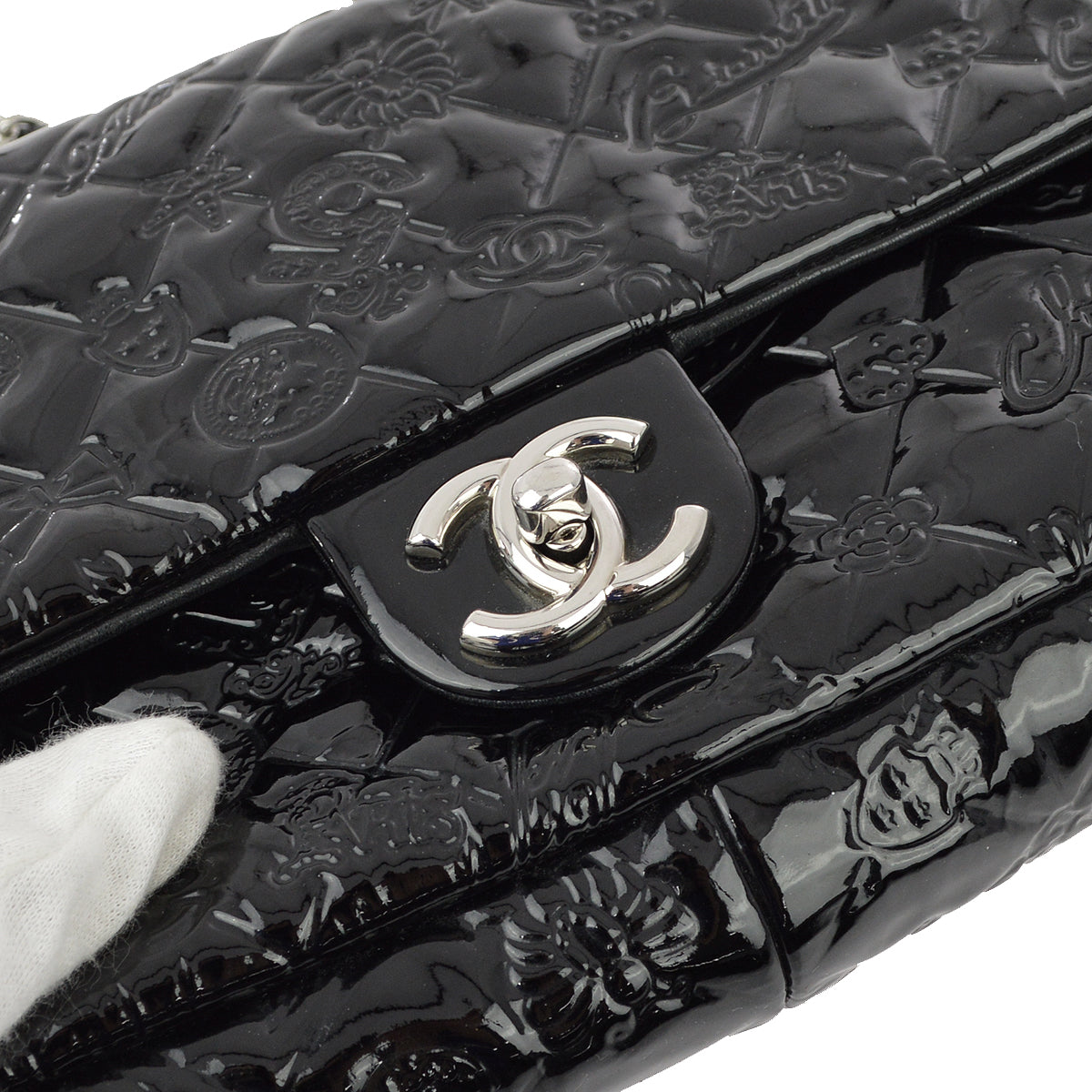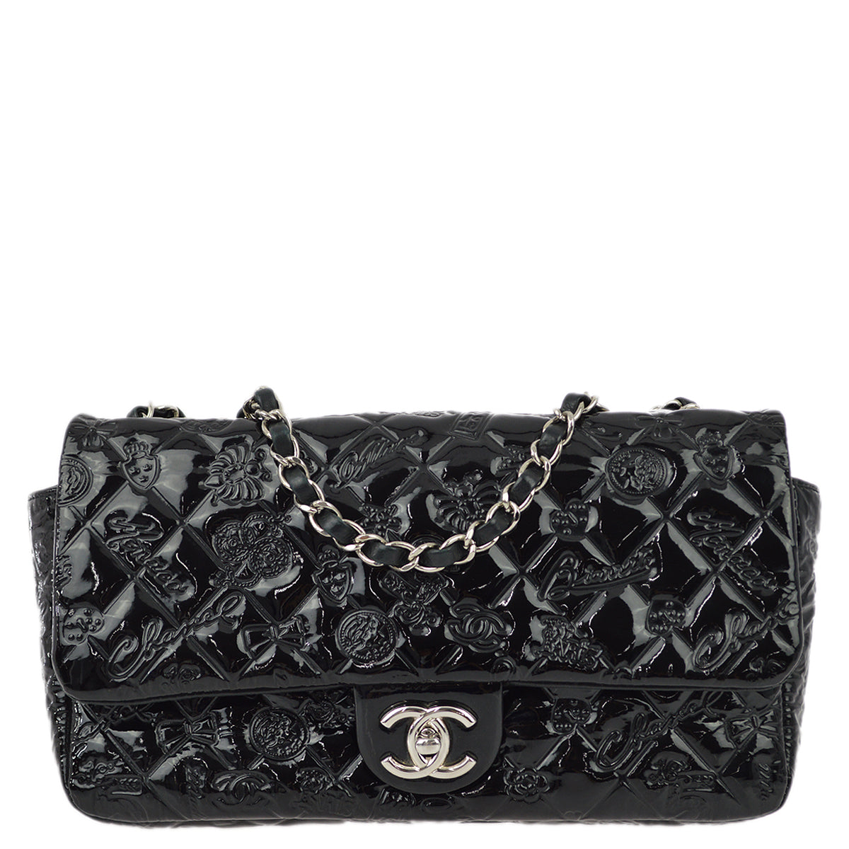 Top Quality Chanel * Black Patent Leather Icon Single Flap Shoulder Bag