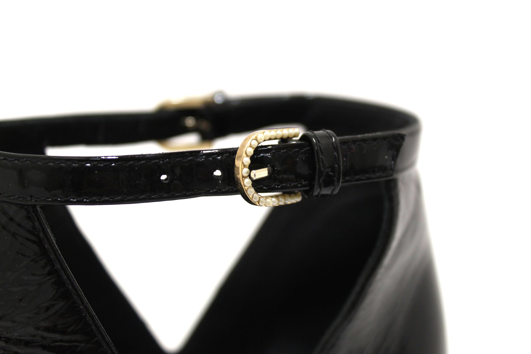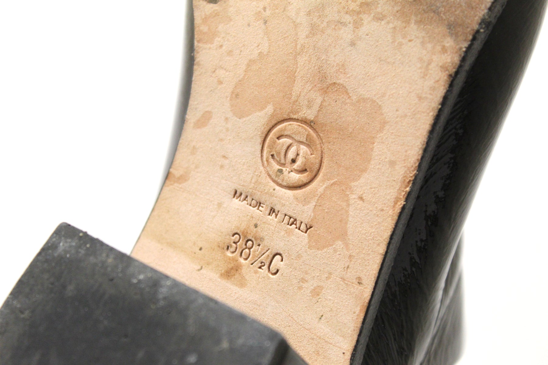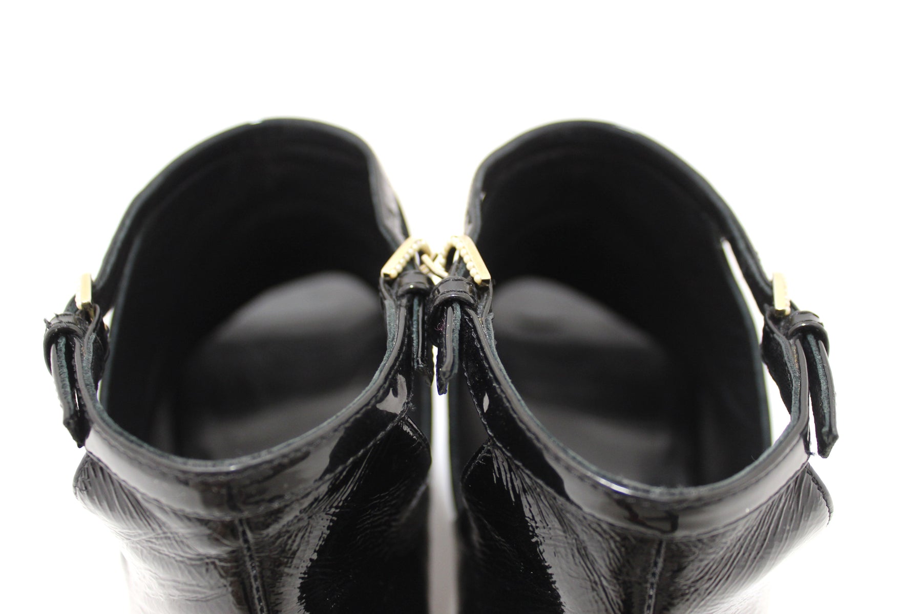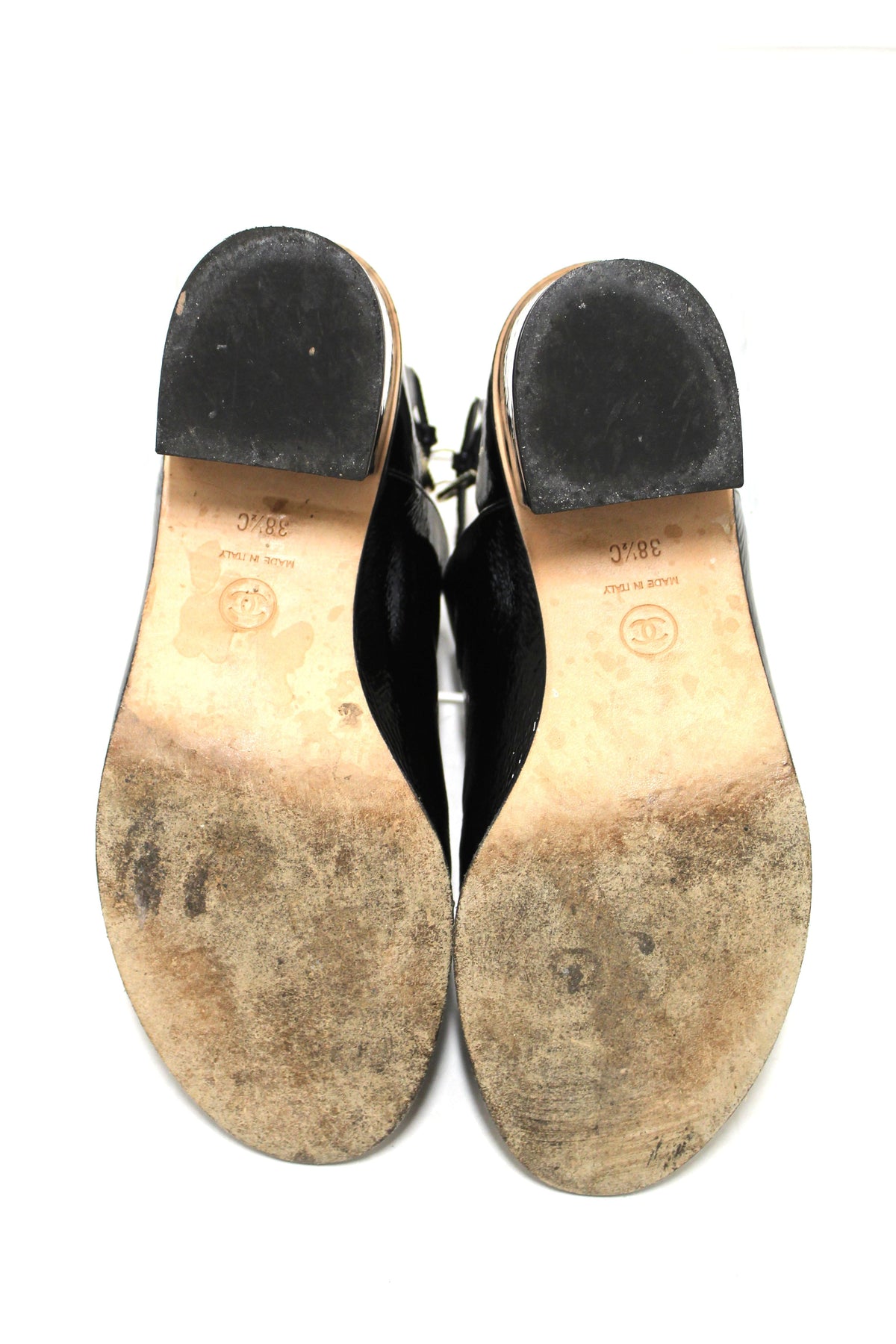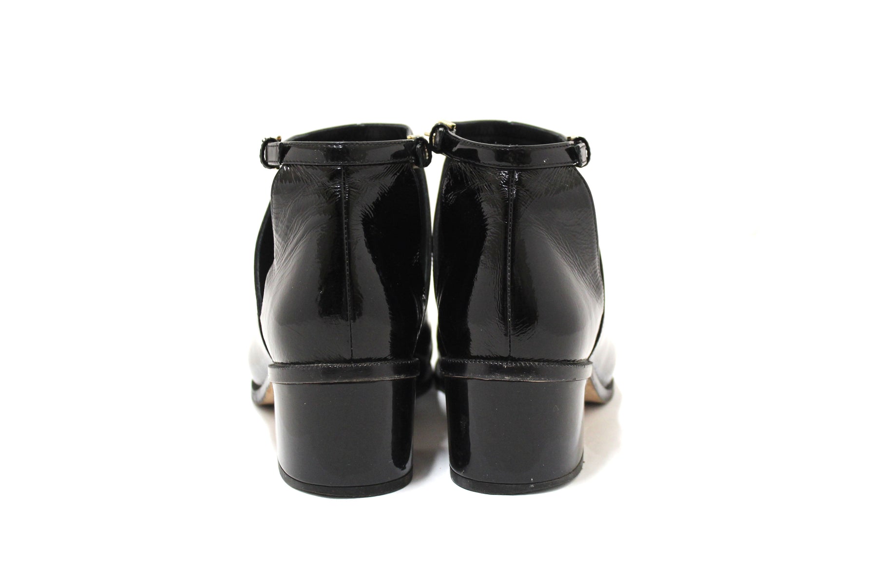 Chanel Black Patent Leather Peep Toe Short Ankle Boots 38.5