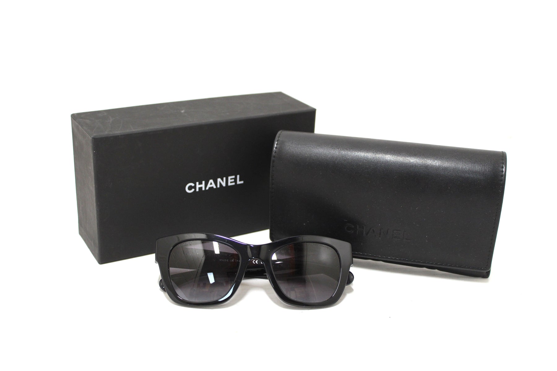 Chanel Black Acetate Polarized Charms Pearl Square Sunglasses 5479A