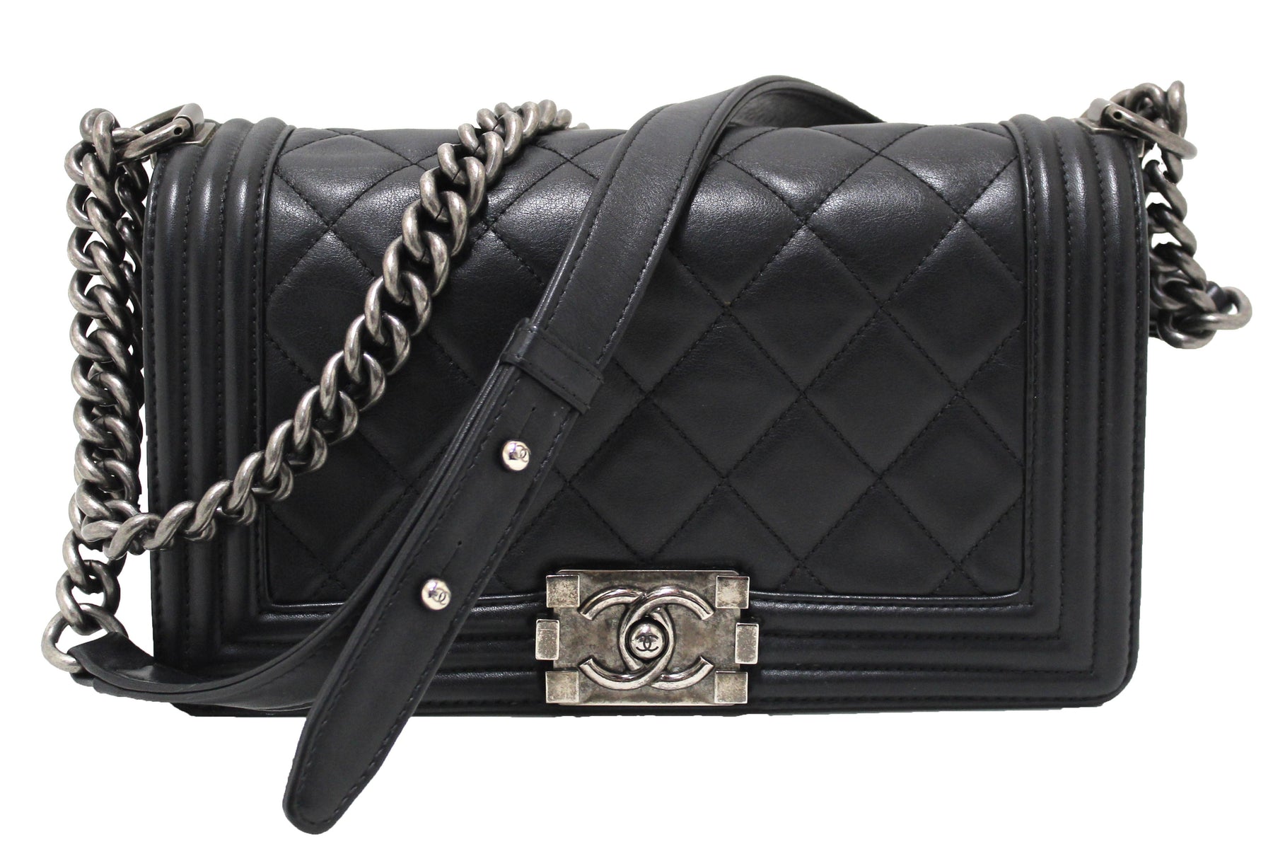 Chanel Black Quilted Calfskin Old Medium Boy Shoulder Bag