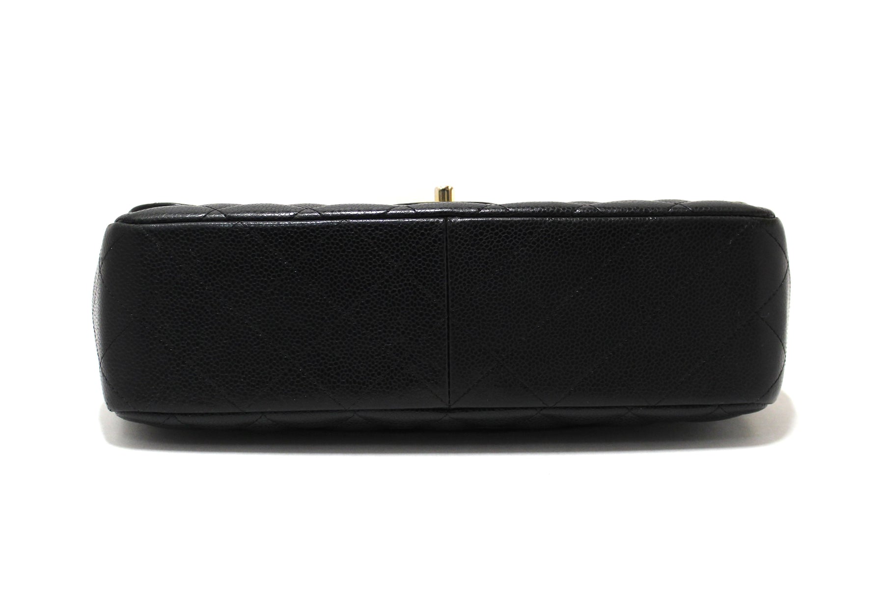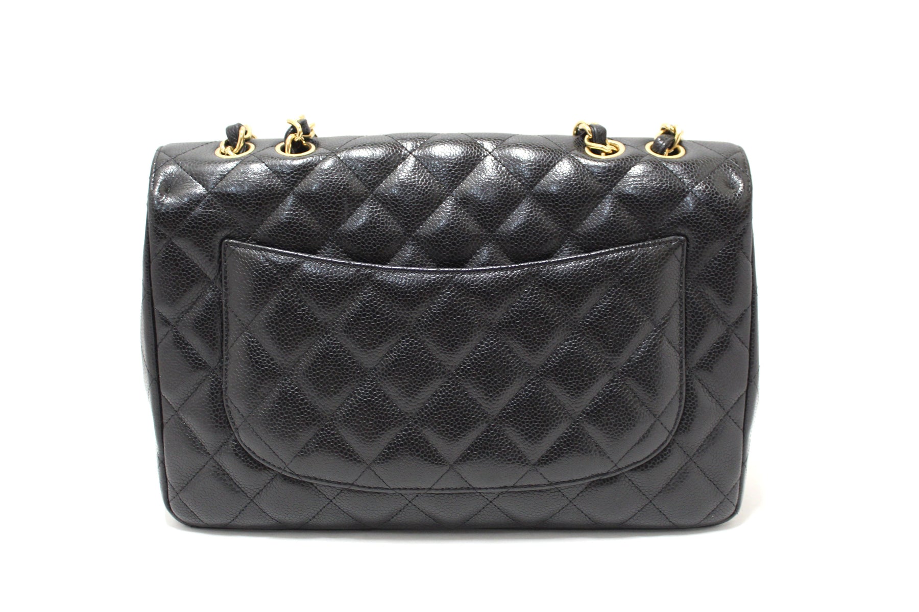 Chanel Black Quilted Caviar Leather Classic Jumbo Single Flap Bag